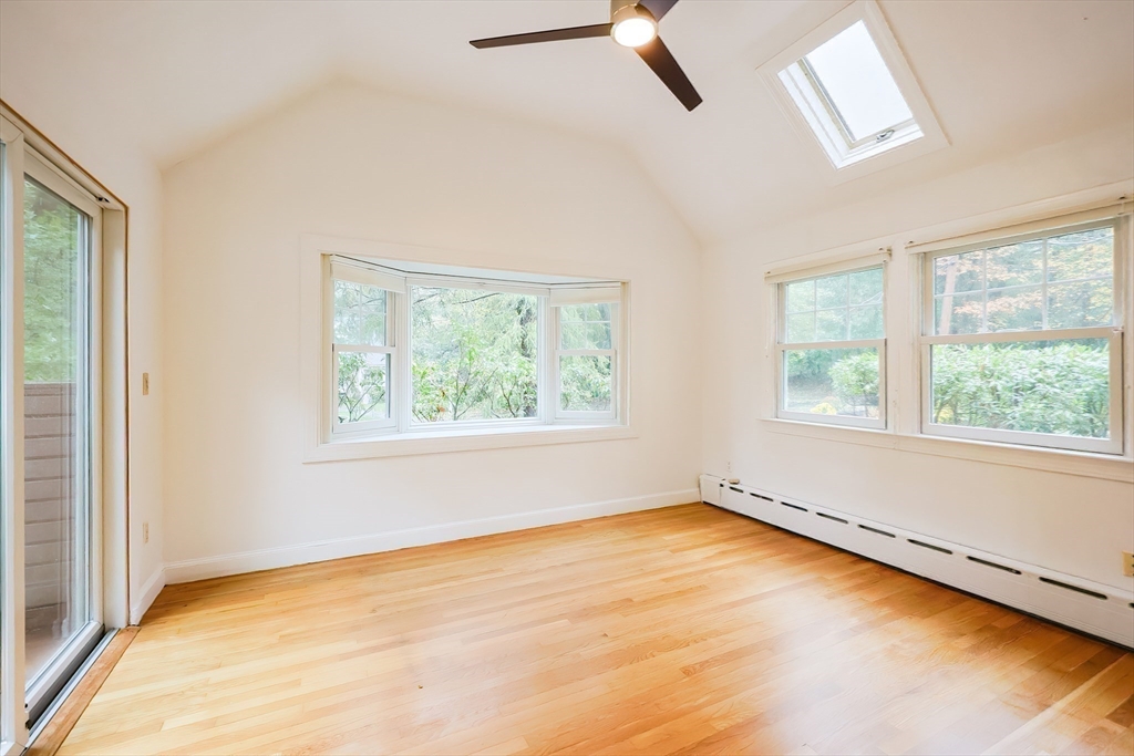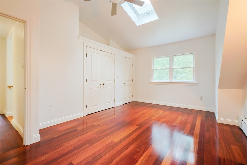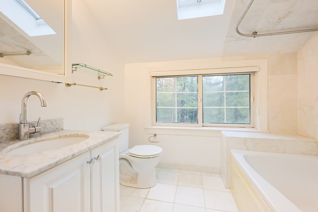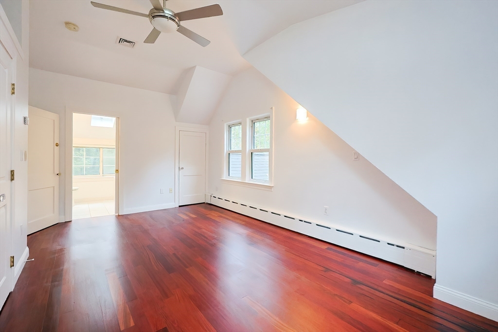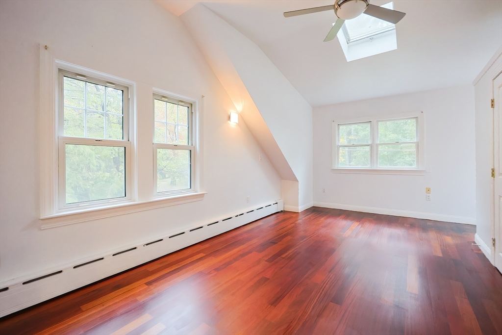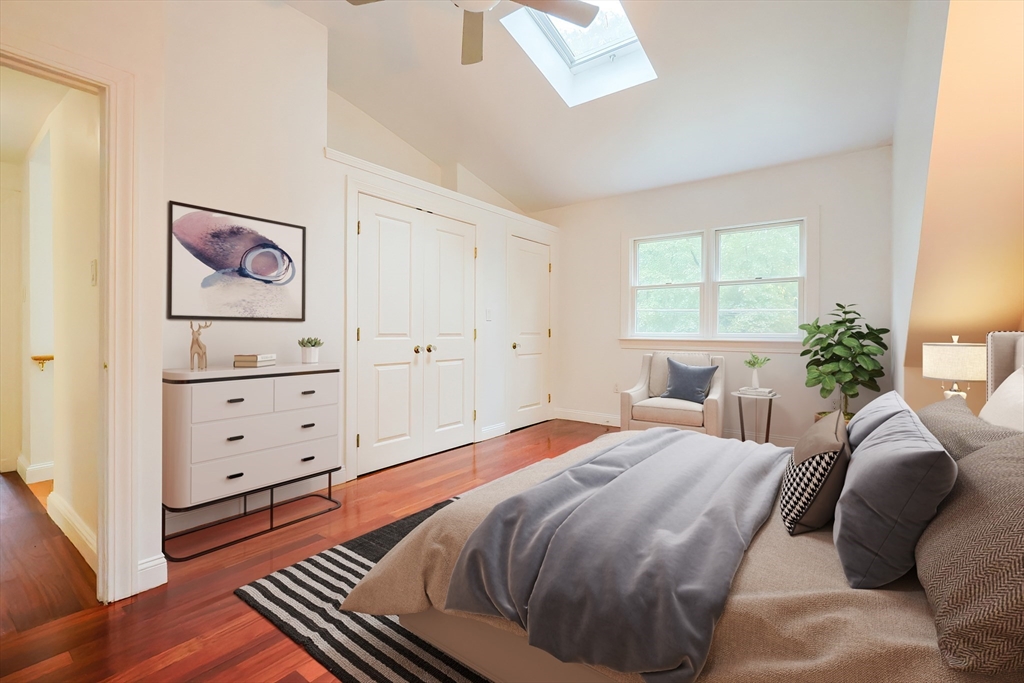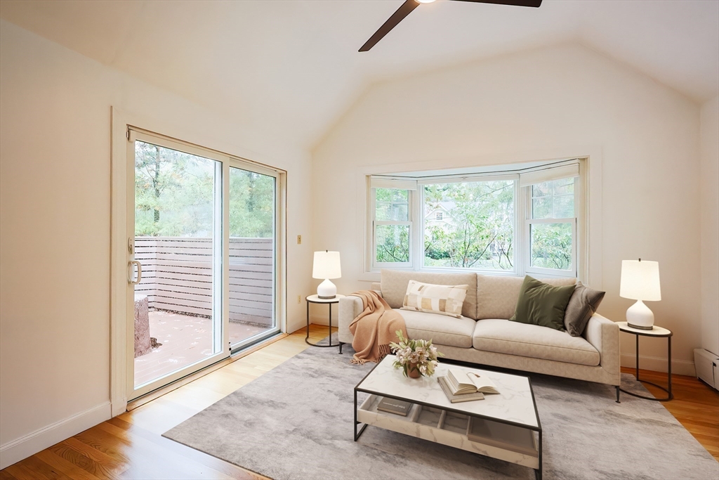 Beautifully maintained Colonial featuring 4 bedrooms, 4 full baths, and a 2-car garage, set in a leafy, sought-after neighborhood with exceptional convenience. Freshly painted interior and newly refinished hardwood floors extend throughout the home. The first floor offers a spacious living room with a wood stove, a dining room, and a large family room with direct access to the deck. The updated kitchen, with granite countertops and contemporary cabinetry, opens to a second deck, perfect for outdoor dining and entertaining. A first-floor bedroom and full bath provide flexibility for guests or multigenerational living. Upstairs, the primary suite includes a private full bath, accompanied by two additional bedrooms and a family bath. The finished lower level features a generous playroom, ample closet space, storage, and utilities. Ideally located near conservation land, the Rail Trail, and major routes, this home blends comfort, style, and convenience.