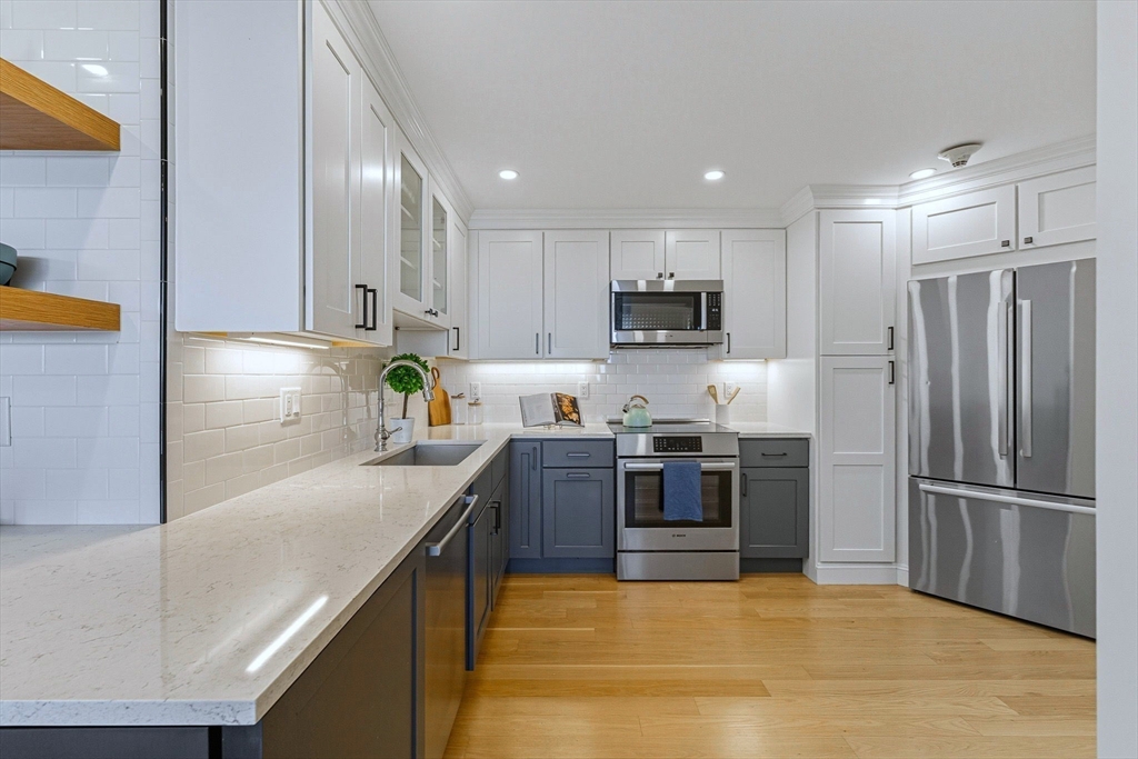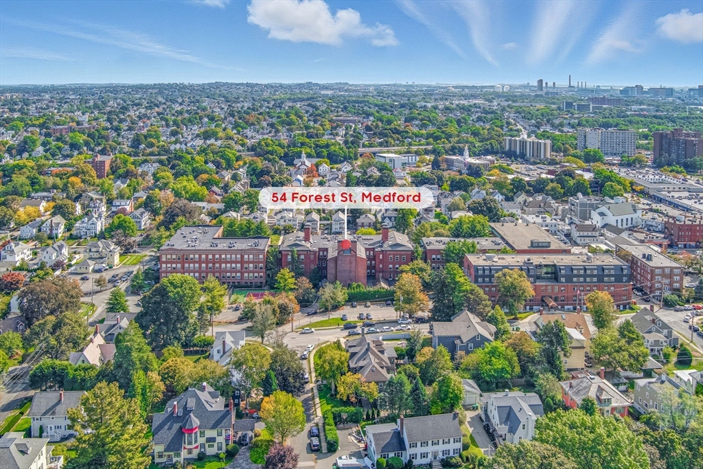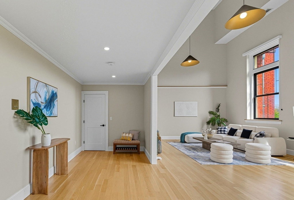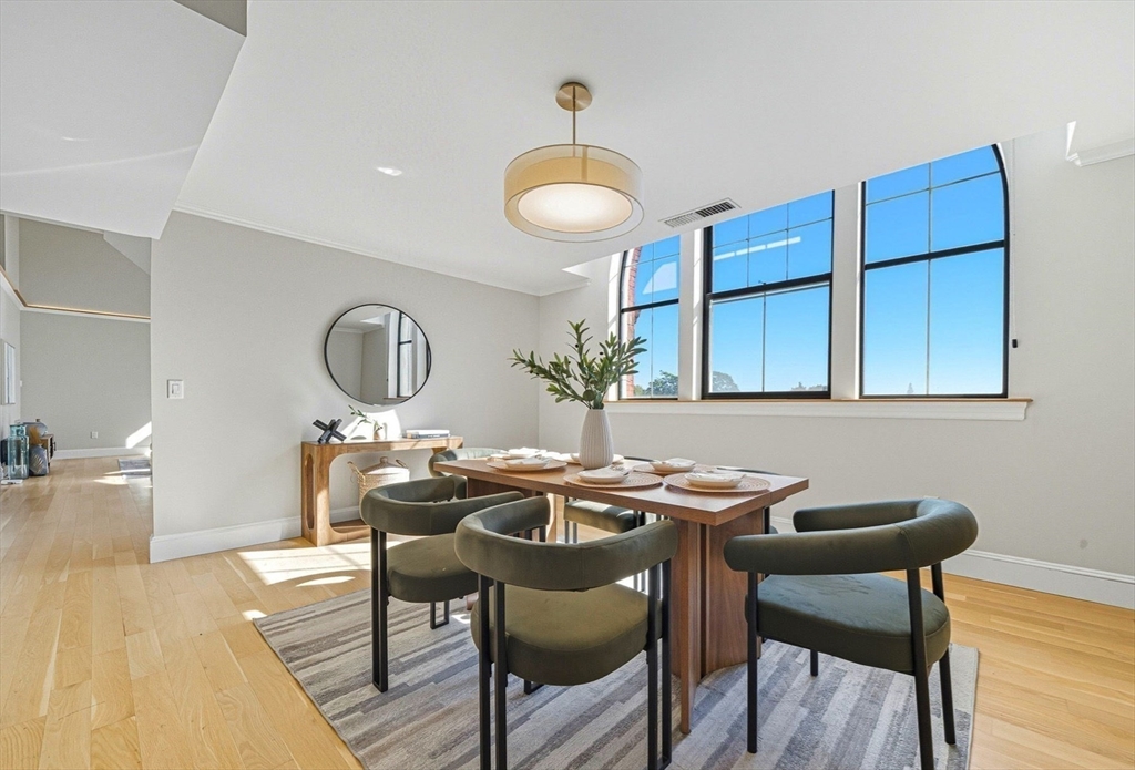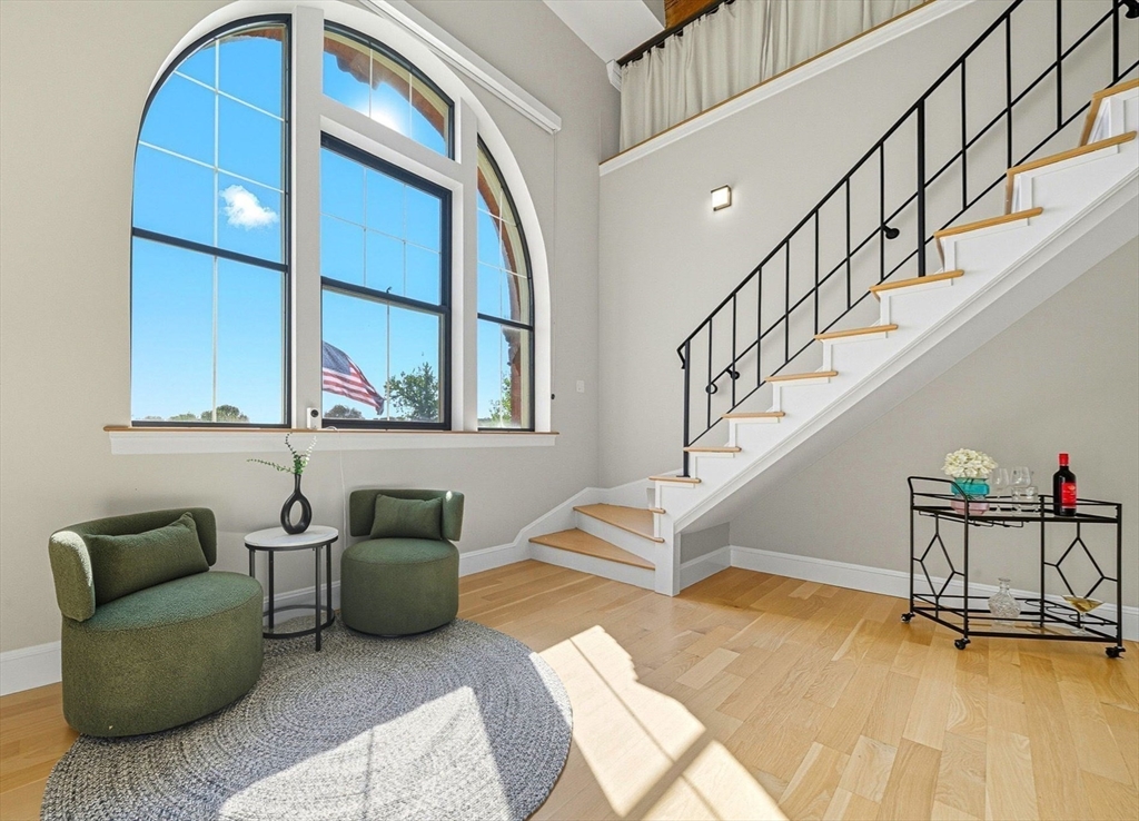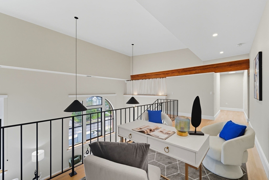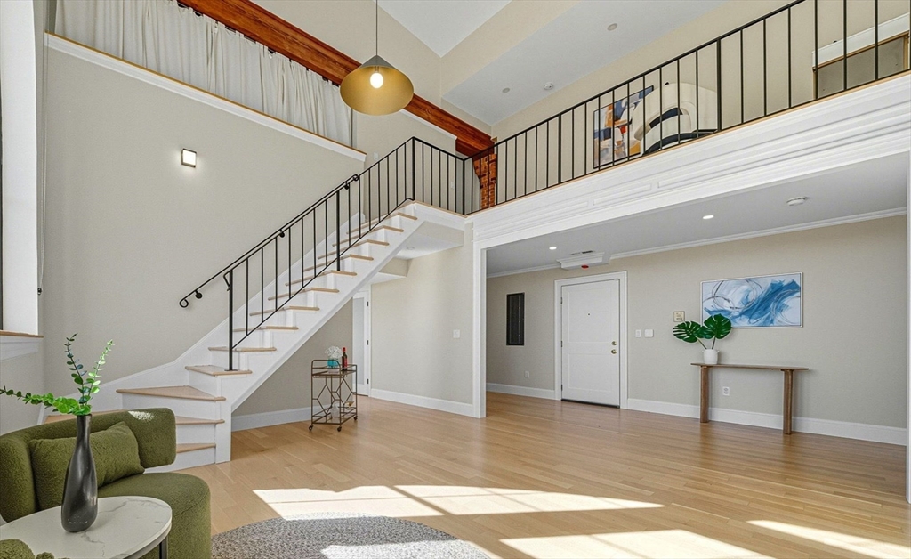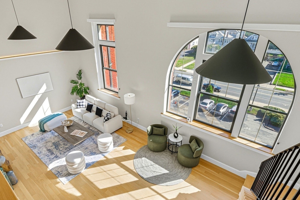 Stunning penthouse at Medford’s Historic Schoolhouse! This loft-style condo showcases dramatic 18’ ceilings, gleaming wood floors, skylights, and a striking arched French window that fills the living room with natural light. Tastefully remodeled in 2020, it blends historic character with modern design. Both bedrooms feature private en-suite baths, while the loft level offers a spacious flex area. Two parking spaces—one garage and one outdoor—plus extra storage are included. Residents enjoy resort-style amenities including an indoor heated pool, sauna, and private tennis court. Just steps from Medford Square, you’ll have easy access to the Chevalier Theater, restaurants, the state-of-the-art Medford library, and multiple bus lines. Interstate 93 is right around the corner, making this a commuter’s dream! Nature lovers will appreciate nearby Mystic River Park and Middlesex Fells Reservation, with shopping at Whole Foods, Wegmans, BJ’s,Stop & Shop, Costco, and Assembly Row all close by.