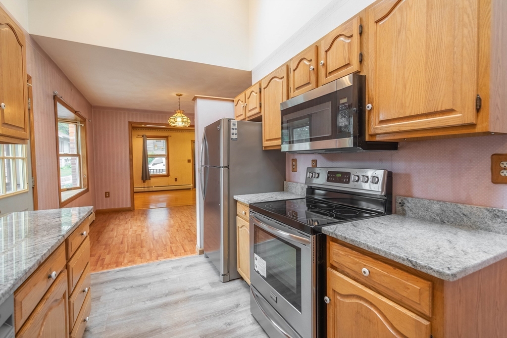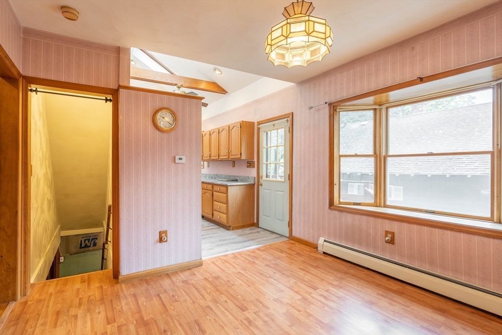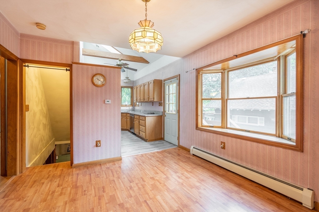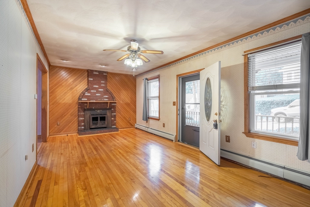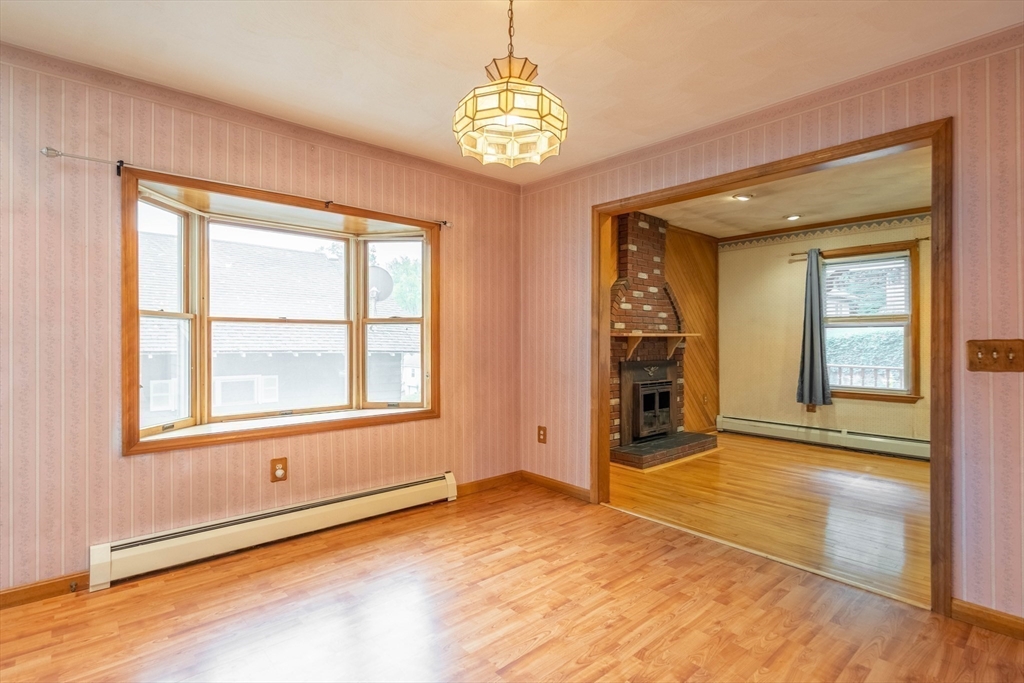 Nestled on a quiet street yet just minutes from shopping, dining, and major routes, this delightful bungalow offers the perfect balance of comfort and convenience. Step inside to a warm, inviting layout featuring two bedrooms—one on the main level with a walk-in closet and one upstairs with generous storage—plus a cozy living room with a fireplace, dining room, spacious bath, and a bright cabinet-packed kitchen filled with natural light and stainless steel appliances. The partially finished basement provides flexible space for a third bedroom, home office, gym, or creative studio. Enjoy your morning coffee or evening gatherings on the front porch or the private deck overlooking the backyard. With quick access to I-290 and the Mass Pike, commuting is effortless. Set in a highly sought-after neighborhood, this charming home is move-in ready and waiting for its next chapter! Did I mention the 8X16 shed? Seller reserves the right to accept any offer at any time. Stop looking and get moving