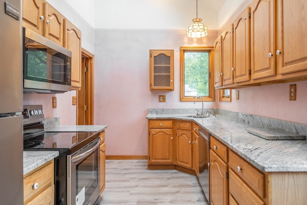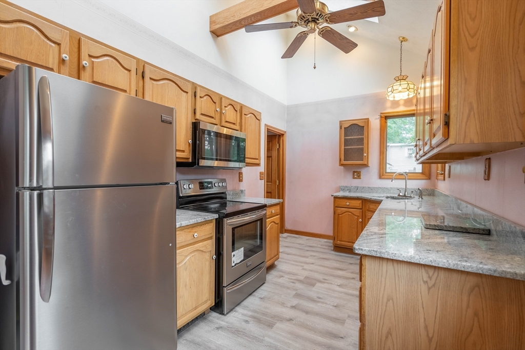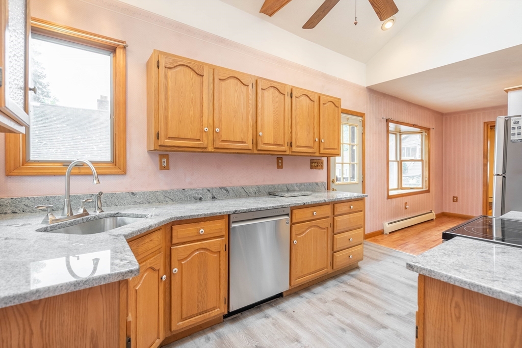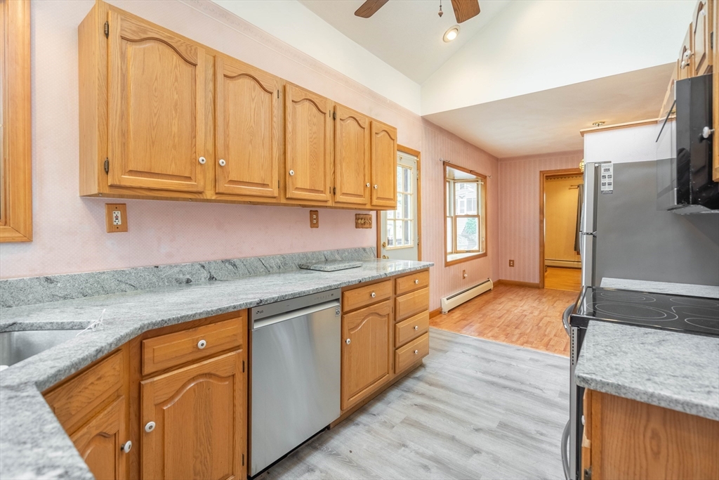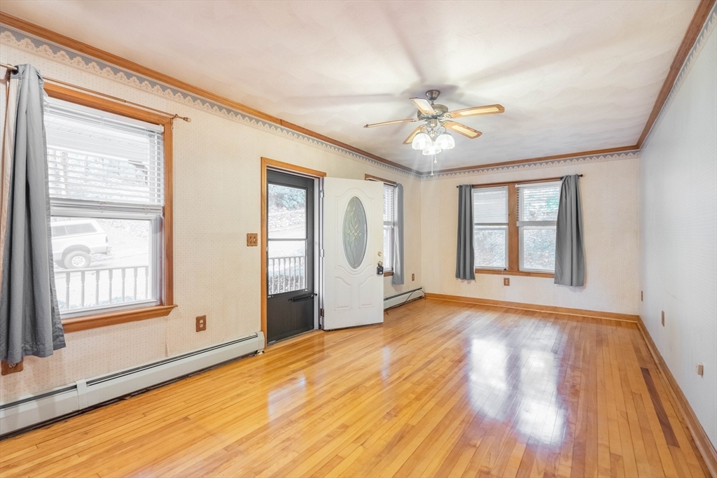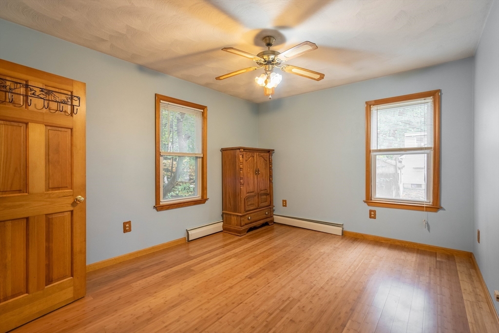 Nestled on a quiet street yet just minutes from shopping, dining, and major routes, this delightful bungalow offers the perfect balance of comfort and convenience. Step inside to a warm, inviting layout featuring two bedrooms—one on the main level with a walk-in closet and one upstairs with generous storage—plus a cozy living room with a fireplace, dining room, spacious bath, and a bright cabinet-packed kitchen filled with natural light and stainless steel appliances. The partially finished basement provides flexible space for a third bedroom, home office, gym, or creative studio. Enjoy your morning coffee or evening gatherings on the front porch or the private deck overlooking the backyard. With quick access to I-290 and the Mass Pike, commuting is effortless. Set in a highly sought-after neighborhood, this charming home is move-in ready and waiting for its next chapter! Did I mention the 8X16 shed? Seller reserves the right to accept any offer at any time. Stop looking and get moving