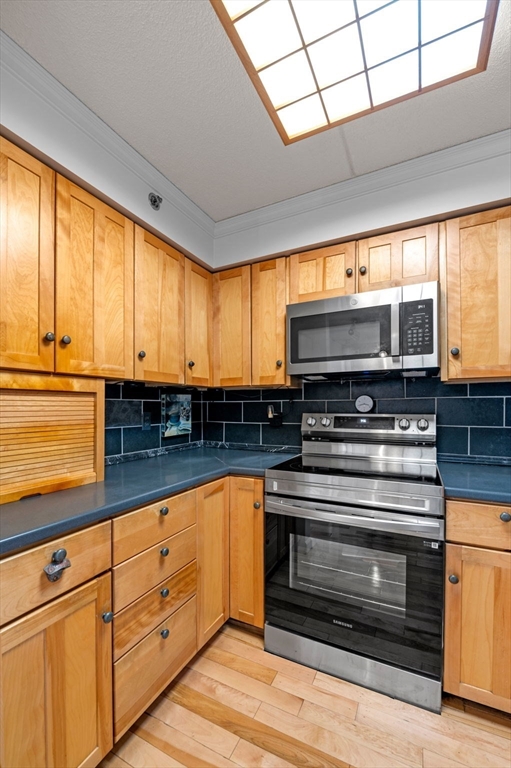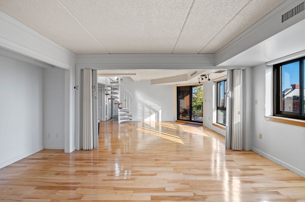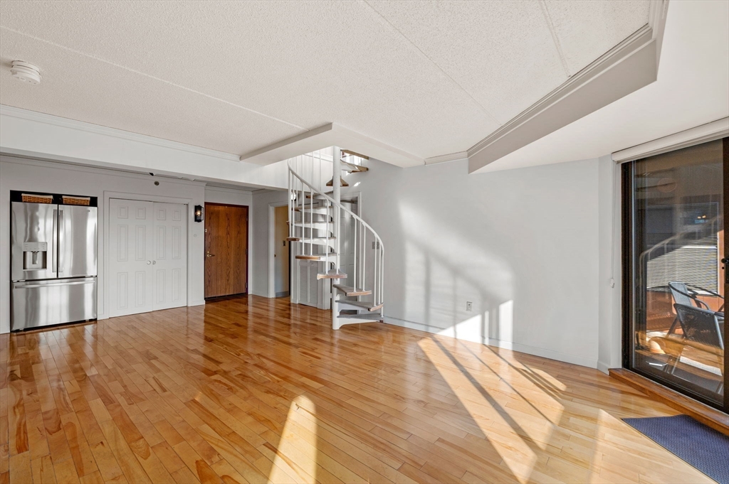 Impressive Penthouse Condo with private roof top deck plus 3 bedrooms and 3 baths. Updated kitchen equipped with new fridge and stove. In-unit washer and dryer for convenience. The living room has wood floors and leads to a balcony for additional outdoor space. Two of the bedrooms are on the first floor and the 3rd bedroom/private office space is located on the upper level with walk-in closet & cathedral ceiling leading to the private slider to enter the roof top deck with views of Beverly Harbor and beyond. Hvac and hot water tank were recently replaced. The professionally managed Gateway Condo complex features an outdoor swimming pool and pool house, gym, and community room. This unit has deeded parking spaces which includes garage space. This home is ideal for traveling to Boston as the commuter rail is only steps away. Beverly voted one of top places to live by the sea with upscale restaurants, shops, breweries, Lynch park along with the Cabot Theater for live music.