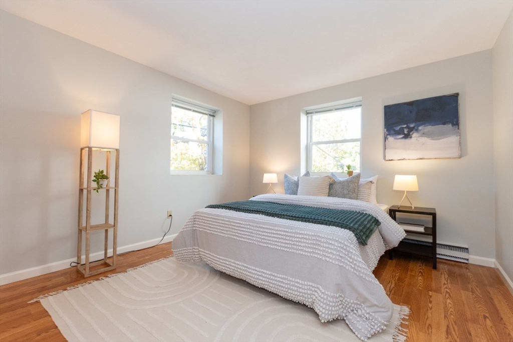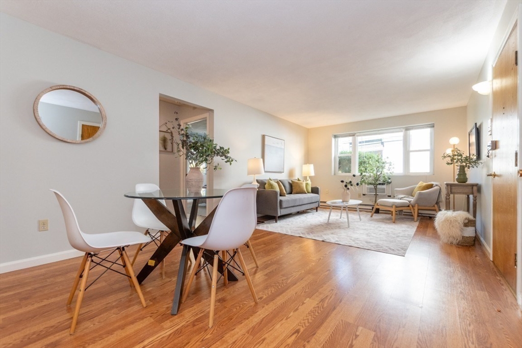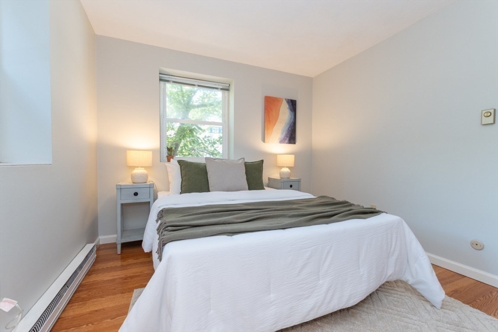 Enjoy convenient Mid Cambridge living in this sun-filled two-bedroom, one-bath condominium, perfectly located just minutes from Harvard Square, Harvard University, and near MIT. Nestled on a charming, tree-lined street, this home features a practical design for living comfort and entertaining. This turnkey unit includes an open living, dining, and kitchen with a breakfast bar. There are 2 bedrooms with large closets, and the bathroom is modernized with a tub and shower.  The unit is freshly painted, and everything feels clean and welcoming. Laundry is available in the building, private storage, and one parking space are also included.  This is a perfect starter home, rental, or pied-a-terre!