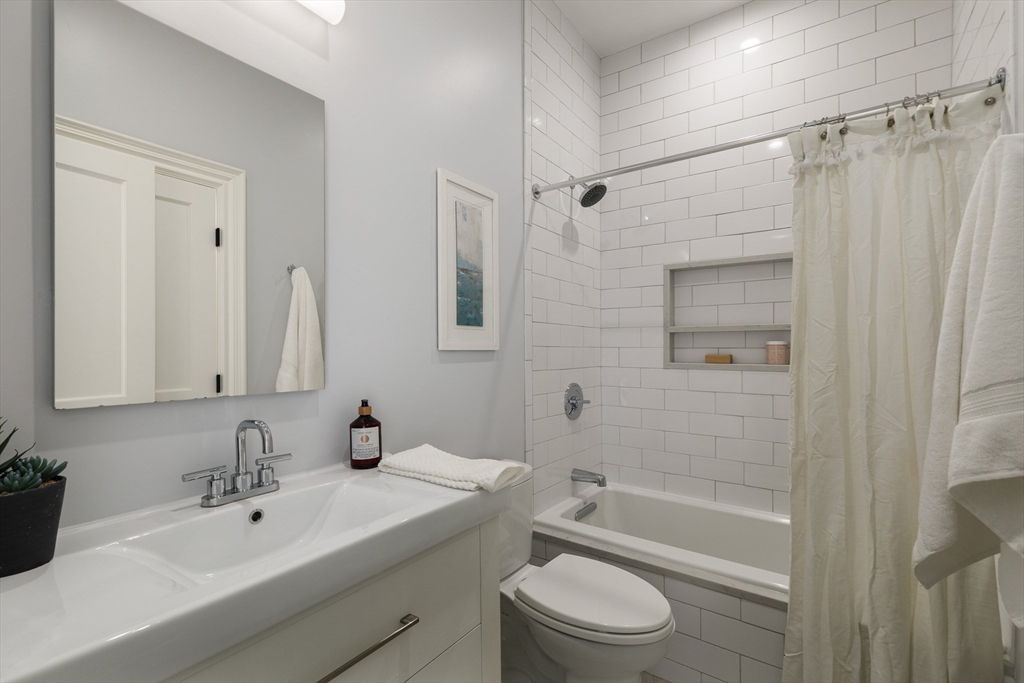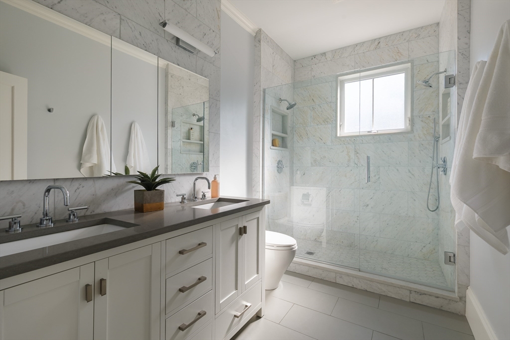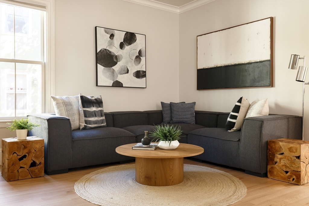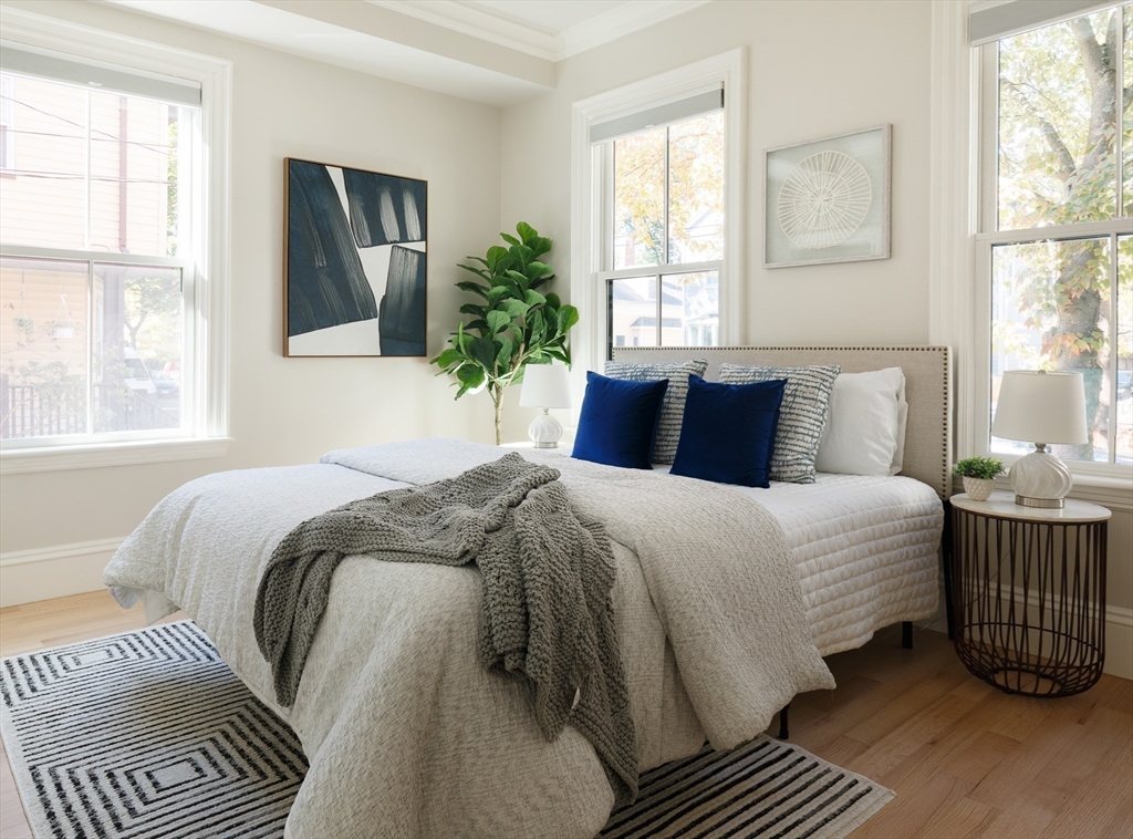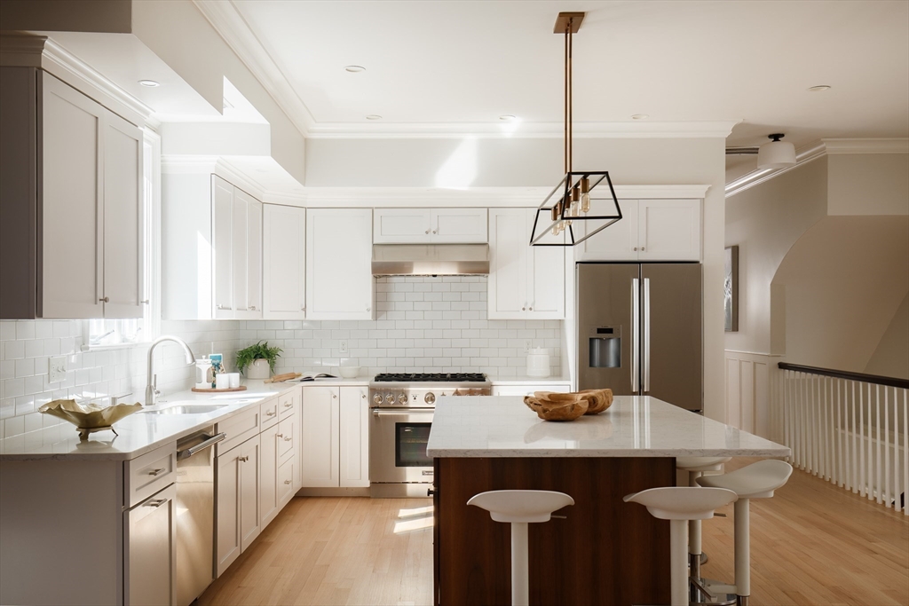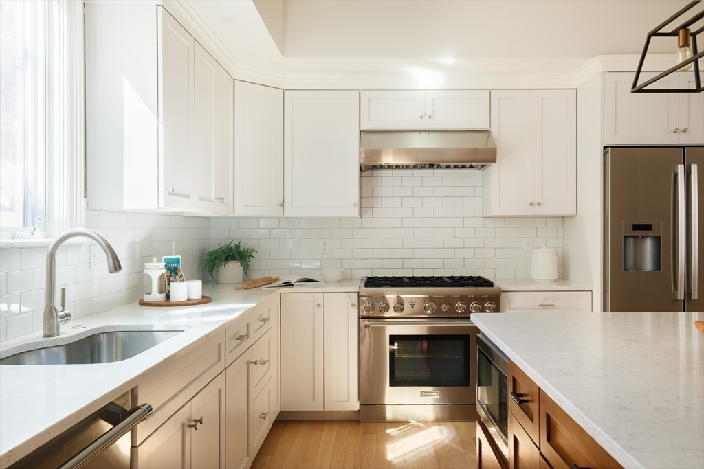 There’s something quietly striking about this award winning home—set on a tree-lined street, it blends modern comfort with a thoughtful layout across two levels. Recently renovated, it offers an open-concept main level, a private patio, and one-car parking with an EV charger on a heated driveway. A chef’s kitchen with two-tone cabinetry, a waterfall island with seating for 5, and stainless appliances anchor the living and dining areas, which extend seamlessly outdoors to a private patio finished with pavers and framed by shrubbery and trees. The serene primary suite is situated at the rear of the home and features a walk-in closet and spa-like bath with a double vanity and dual shower heads. A second bedroom overlooking Norfolk street connects to a full bath, while the lower-level ensuite bedroom offers flexibility for guests or a quiet workspace. Complete with hardwood floors, in-unit laundry, and proximity to Inman and Central Squares, it’s a polished blend of convenience and retreat