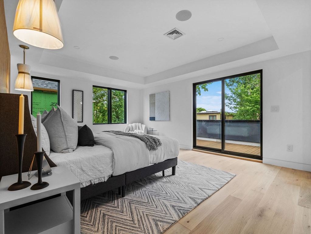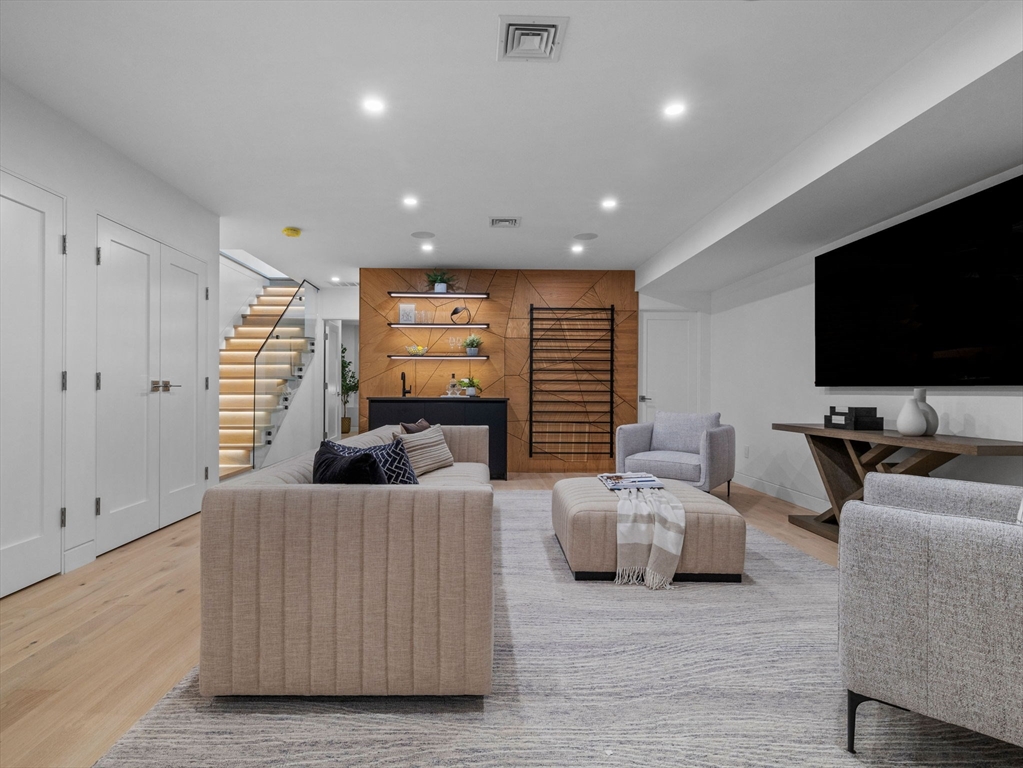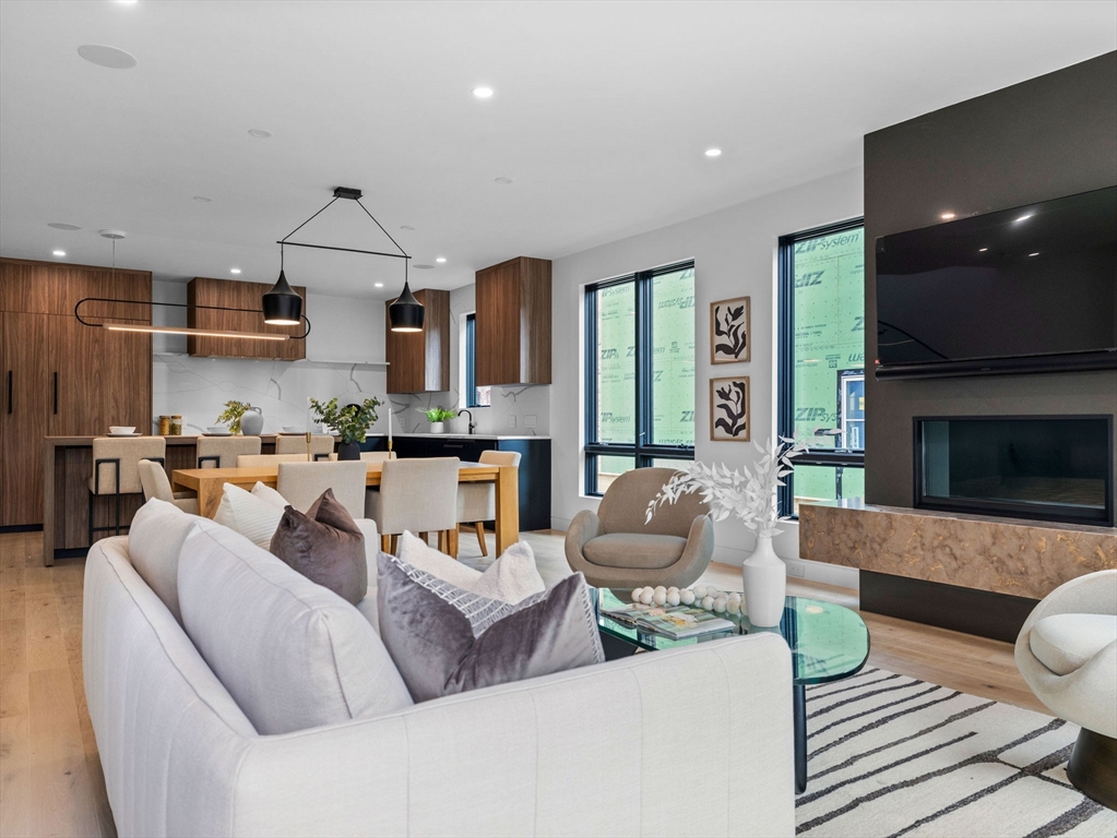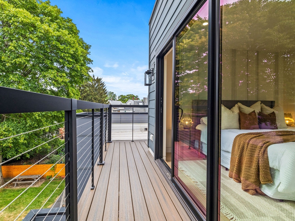 Discover refined living in this exceptional LEED certified single family residence; your alternative to condo living! This all electric smart home showcases a thoughtfully crafted open floor plan, featuring four spacious bedrooms and four and half bathrooms; including three luxurious ensuite retreats that offer privacy and comfort. The finished lower level provides a flexible space well-suited for family gatherings, media entertainment, and a dedicated home office. The main living area transitions seamlessly to a sunlit deck, overlooking a professionally landscaped yard that enhances the home’s indoor and outdoor flow. Smart home integration includes automated lighting, climate control, tv's and built-in audio systems, all accessible via tablet or mobile app. Situated in the heart of North Cambridge, with close proximity to the Minuteman Bikeway and vibrant Davis Square, this residence offers a rare combination of environmental responsibility, modern convenience, and timeless elegance