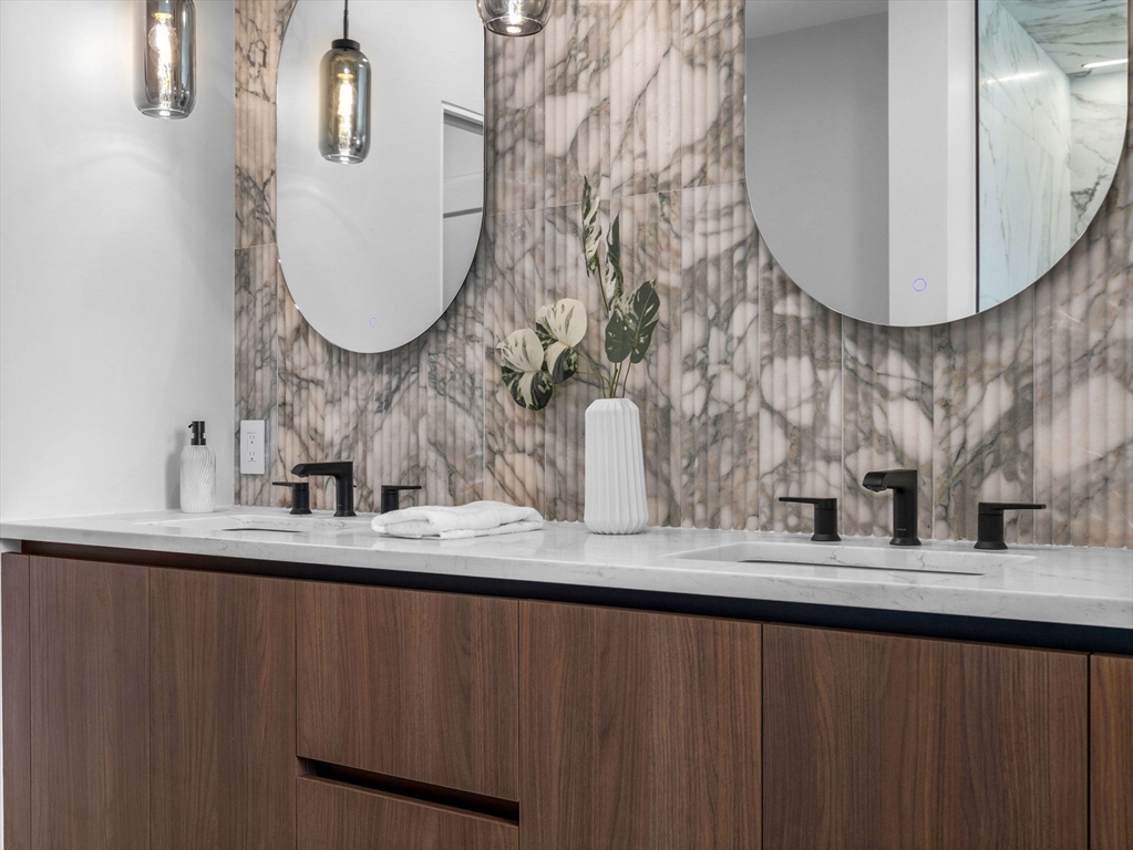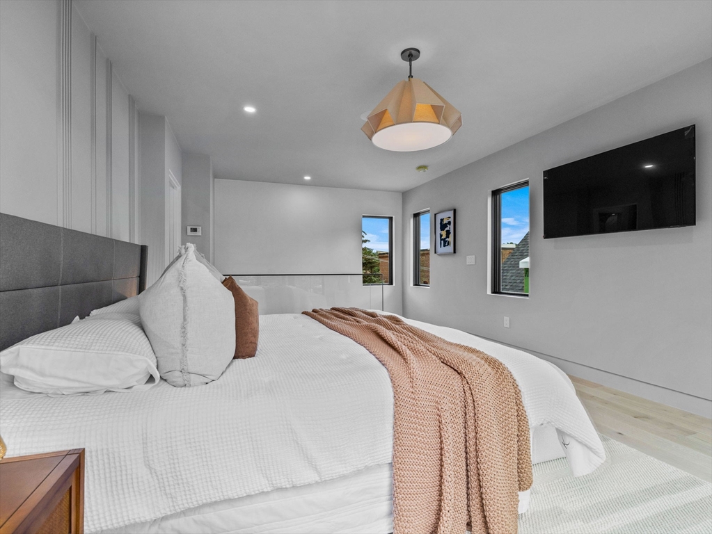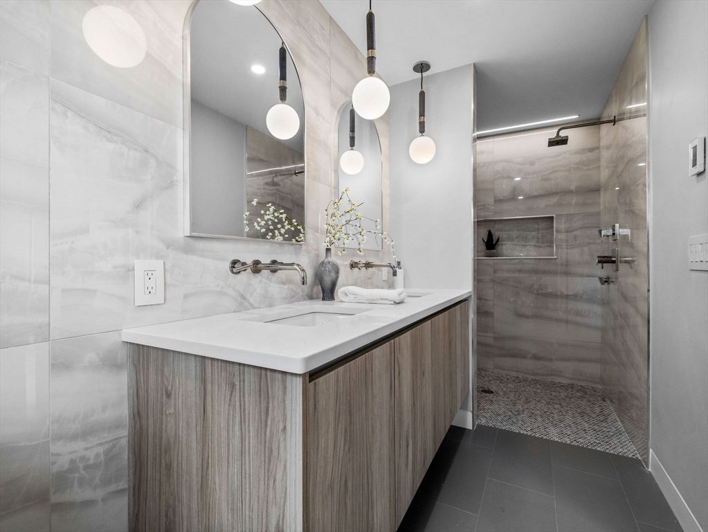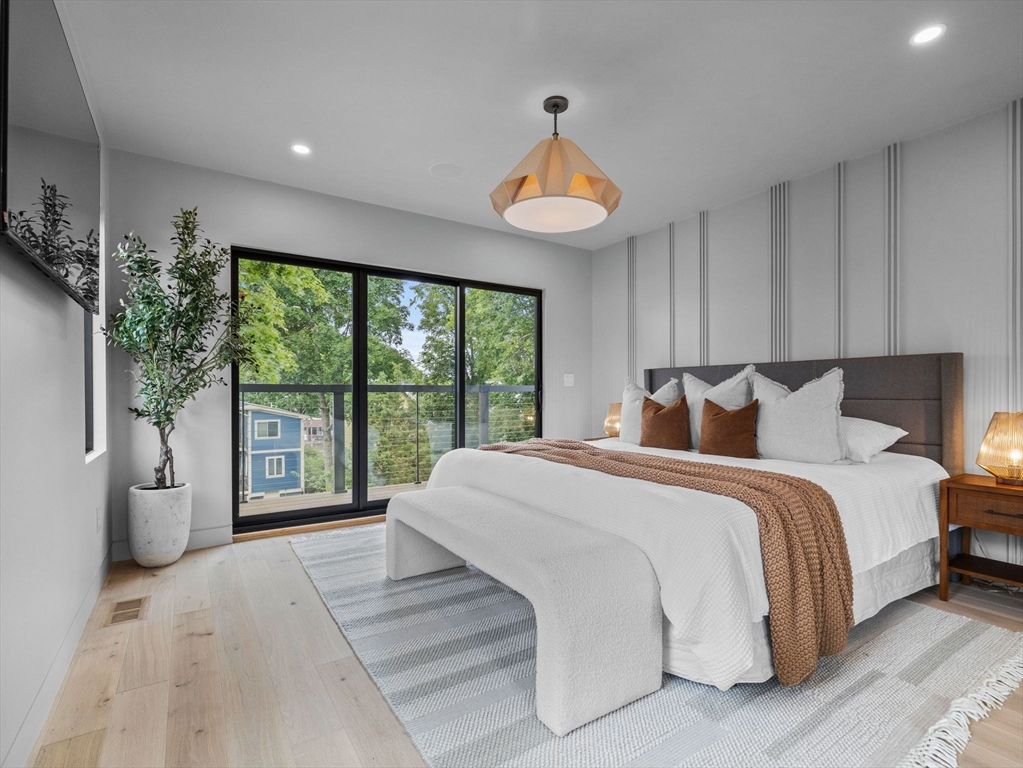 Discover refined living in this exceptional LEED certified single family residence; your alternative to condo living! This all electric smart home showcases a thoughtfully crafted open floor plan, featuring four spacious bedrooms and four and half bathrooms; including three luxurious ensuite retreats that offer privacy and comfort. The finished lower level provides a flexible space well-suited for family gatherings, media entertainment, and a dedicated home office. The main living area transitions seamlessly to a sunlit deck, overlooking a professionally landscaped yard that enhances the home’s indoor and outdoor flow. Smart home integration includes automated lighting, climate control, tv's and built-in audio systems, all accessible via tablet or mobile app. Situated in the heart of North Cambridge, with close proximity to the Minuteman Bikeway and vibrant Davis Square, this residence offers a rare combination of environmental responsibility, modern convenience, and timeless elegance
