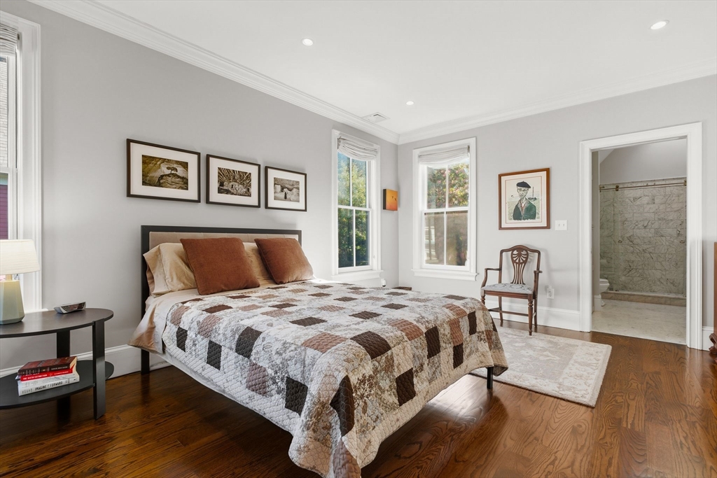 A jewel of Central JP, this thoughtfully renovated & exquisitely maintained 1880s Queen Anne Revival awaits you. Cross the wrap-around porch and enter the stylish open entertaining space with warm oak floors, crown molding, gas fireplace, and bay window. Cook and converse in the chef’s kitchen with bar seating in honed granite countertops, custom cabinetry, and high-end stainless-steel appliances. Step out the glass door onto the back porch and into the fenced & landscaped yard of mature plantings offering an urban paradise. The 2nd floor has been transformed into a luxury primary suite complete with spa-bath in Carrara marble & glass, expansive dressing room, custom built-ins, vaulted ceilings, and private 2nd floor deck. Additional features include turreted 3rd floor, ideal for office or bedroom space, skylights, recessed lighting, and AC. Located in the heart of Central JP, moments to Centre St, Green St T, Jamaica Pond, & all that JP has to offer. Open Houses 10/18 & 10/19 12-1pm.