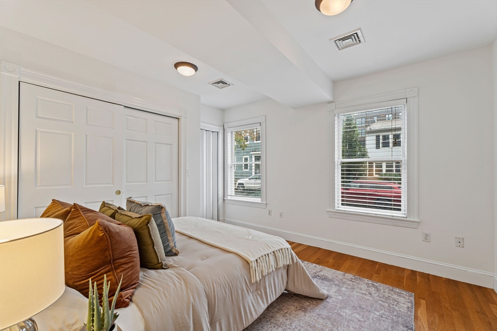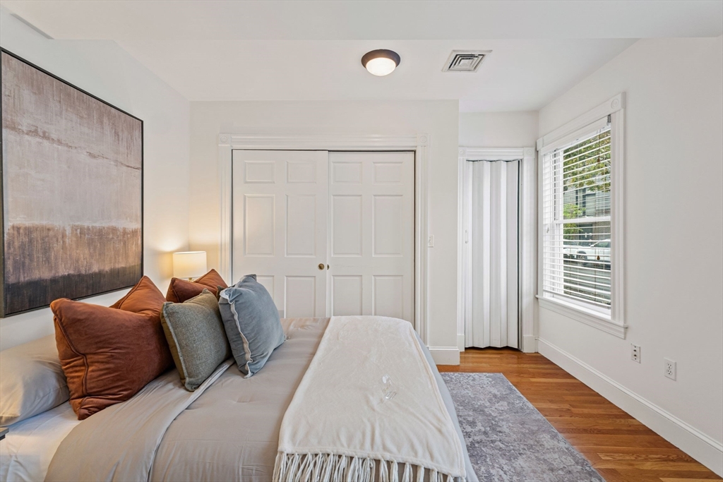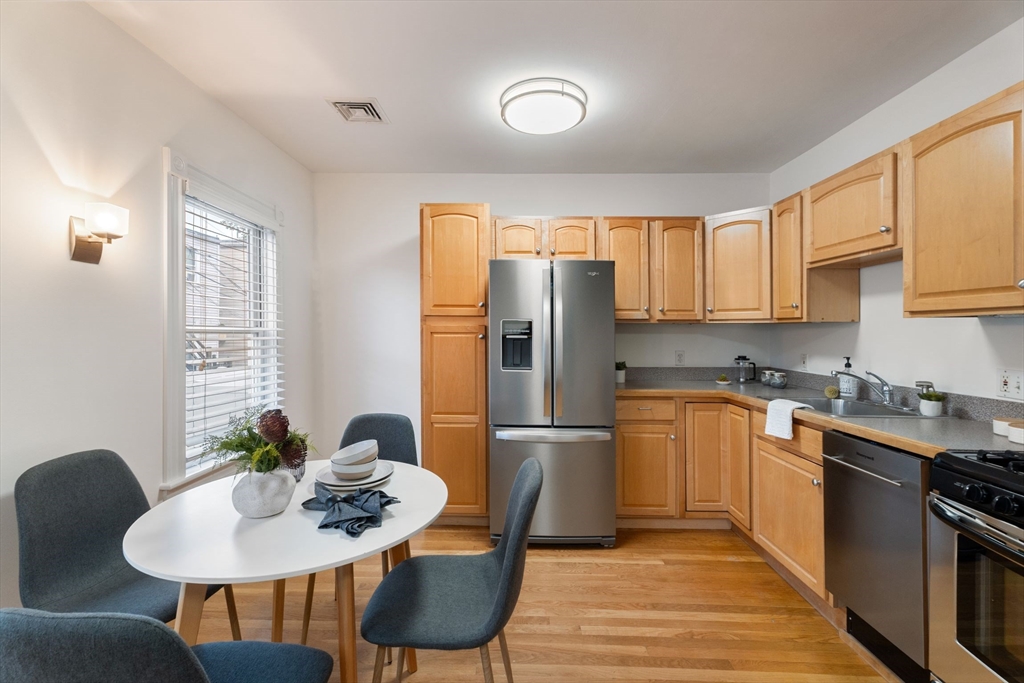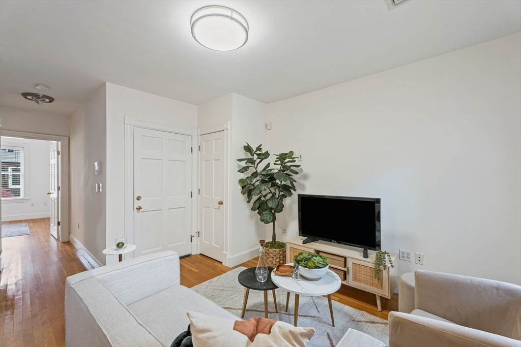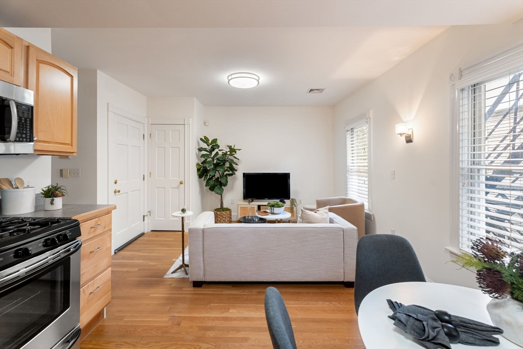 Welcome to this stylish 1 bedroom condo in the heart of South Boston offering 565 sq ft of thoughtfully designed living space. Hardwood floors run throughout the open floor plan, creating a warm, inviting flow from the cozy living area to the modern kitchen with new stainless steel appliances.The bedroom comfortably fits a queen bed, leaving additional space for a home office area, and features a double closet plus the separate shoe closet you didn't know you needed! Additional highlights include private storage unit, manageable condo fee, central air, and access to a low maintenance common backyard. Centrally located just one block from West Broadway, you are seconds from Lincoln, Loco, Capo, Foodies, the T and all of what this incredible neighborhood has to offer. Stop renting and enjoy this move-in ready gem on one of Southie's most desirable streets!