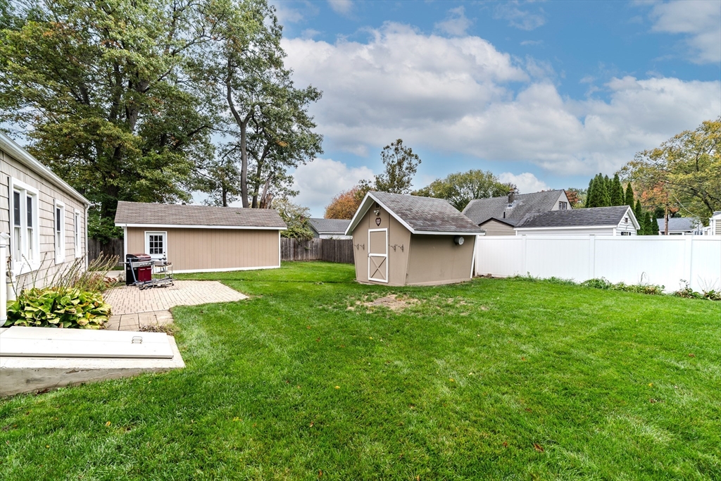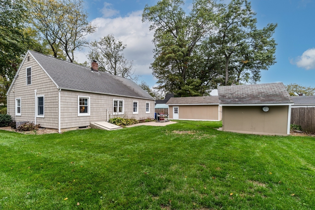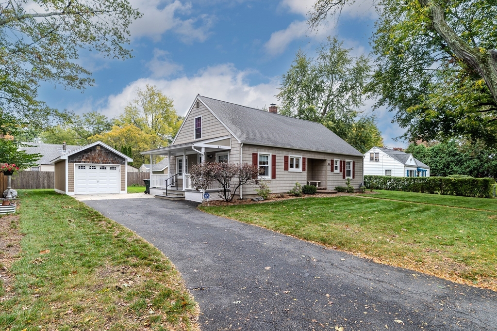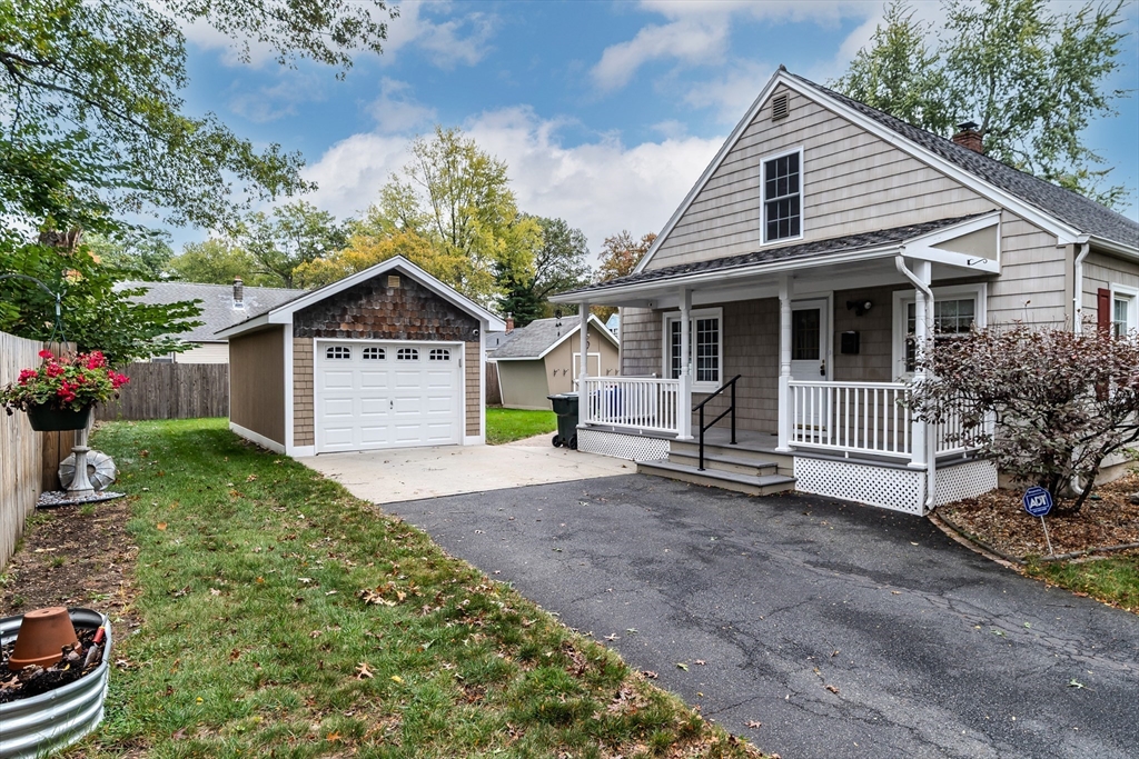 Step inside this well-maintained vinyl-sided expandable Cape featuring hardwood floors throughout. Large living room updated eat-in kitchen with granite countertops, and stainless-steel appliances. 3 ample-sized bedrooms with abundant closet space. Renovated bath with walk-in shower, tile floors, and a granite-topped vanity, all located on the same level. Additional features include central A/C and a newer high-efficiency gas heating and hot water system. Finished basement offering extra living space, a covered side porch off of the kitchen. A flat level yard fully irrigated, a detached one-car garage, and a large shed. This one is a must-see! First showings at open house Sunday October 19, 2025 12:30 to 2:00 PM