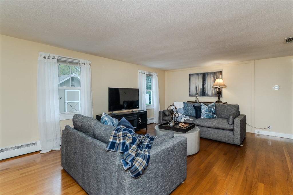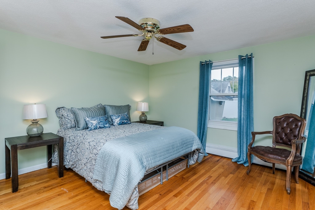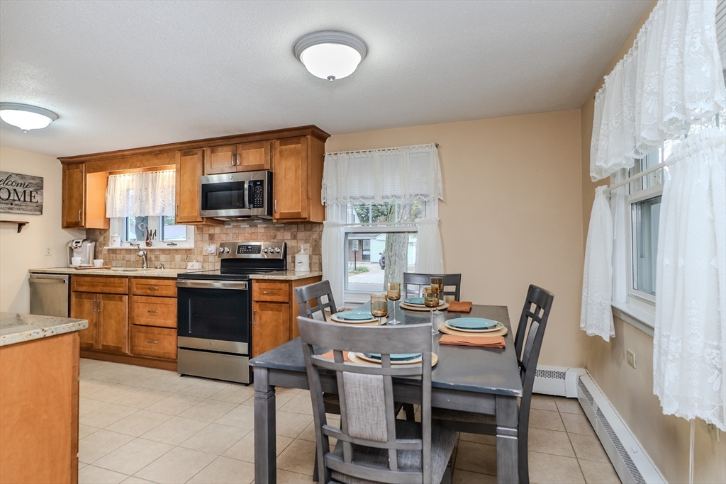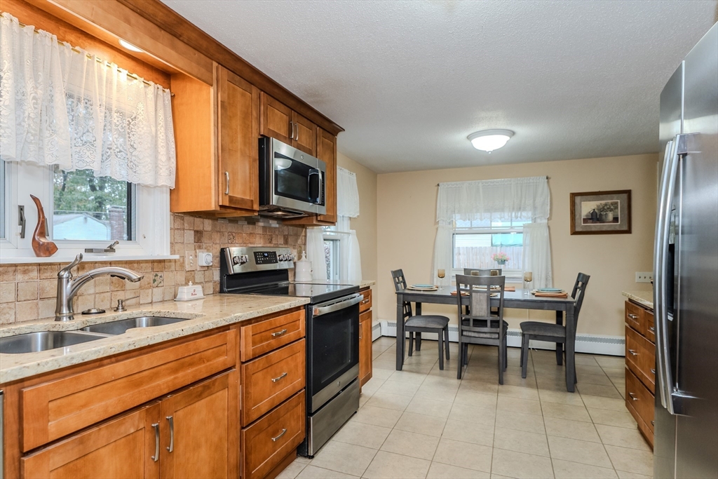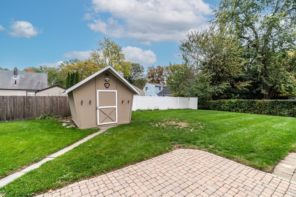 Step inside this well-maintained vinyl-sided expandable Cape featuring hardwood floors throughout. Large living room updated eat-in kitchen with granite countertops, and stainless-steel appliances. 3 ample-sized bedrooms with abundant closet space. Renovated bath with walk-in shower, tile floors, and a granite-topped vanity, all located on the same level. Additional features include central A/C and a newer high-efficiency gas heating and hot water system. Finished basement offering extra living space, a covered side porch off of the kitchen. A flat level yard fully irrigated, a detached one-car garage, and a large shed. This one is a must-see! First showings at open house Sunday October 19, 2025 12:30 to 2:00 PM