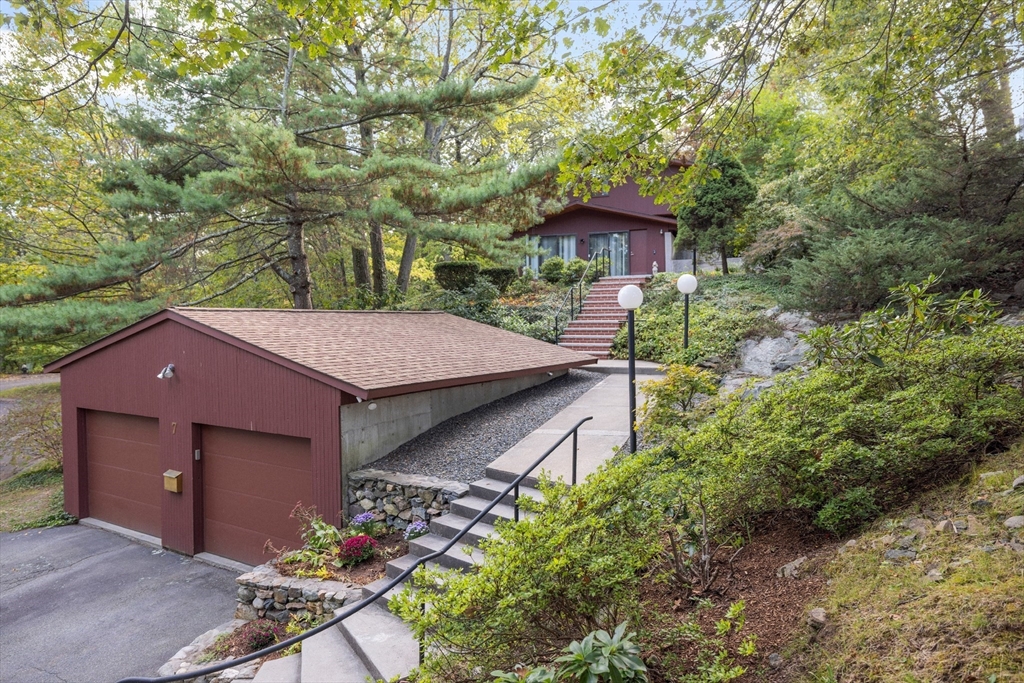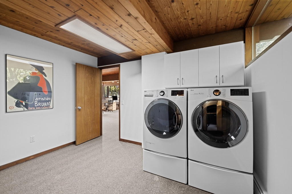 Classic example of one of Deck’s most elegant designs, lovingly maintained to original architectural specifications. Tucked into a wooded cul-de-sac just moments from town, this four-bedroom home rises above the trees with a wall of windows that flood the space with light. Updated kitchen shines with open shelving, an oversized island, a sleek stainless steel vent, and a wall of glass overlooking the forest. Plenty of pantry space and room for casual dining. The great room features an oversized hearth, parquet floors, and sliders to a private office. The dining room opens to a large deck, the perfect spot for morning coffee. The primary suite is on this level with several closets and a private bath. Downstairs, three additional bedrooms, one en suite, plus a large area set up as a student workspace with a wood stove. A spacious media/playroom with sliders open across the front, with a powder room. Outside, you’ll find a dog-washing station and a two-car garage.