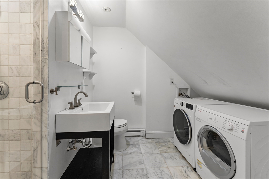 Perched atop the hill in West Medford, this townhouse-style condo offers sweeping skyline views and the perfect balance of space and convenience. Ideal for commuters and those working from home, the home features seven rooms, including 3 bedrooms and 2 full baths. The main level welcomes you with a bright, spacious living room that opens to a sunny enclosed porch—perfect as a sunroom or office area—and a charming dining room with a built-in china cabinet. The updated kitchen sits adjacent to the dining room, while a first-floor bedroom and a newly renovated full bath complete this level, all with beautiful hardwood floors. Upstairs, a primary suite awaits, complete with a luxurious marble bath featuring marble flooring & a walk-in shower. A second bedroom with dual closets completes the upper level. Enjoy an easy stroll to West Medford Village, where you’ll find shopping, dining, parks, transportation, and the post office—all just steps away. Also known as 115 Warren.