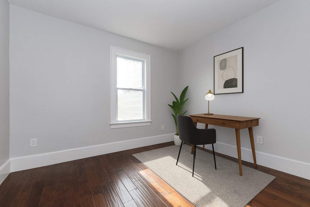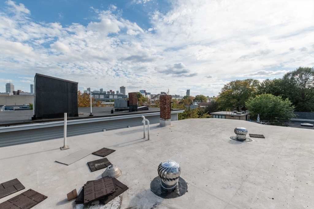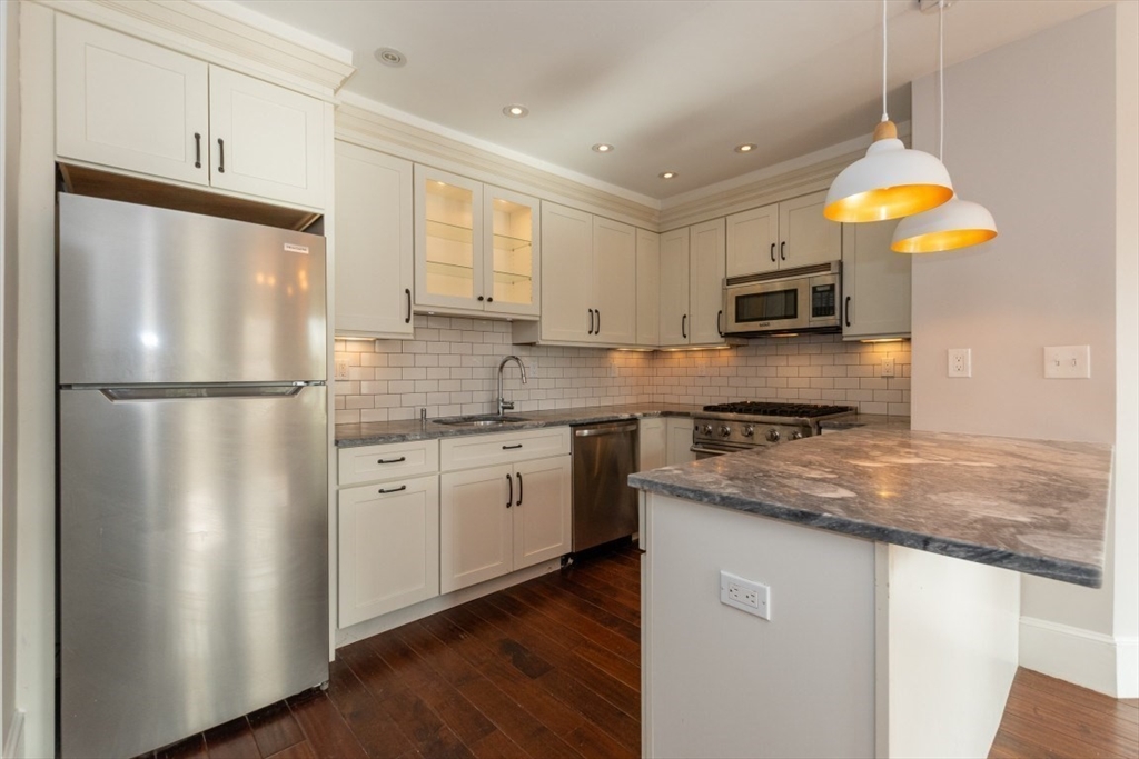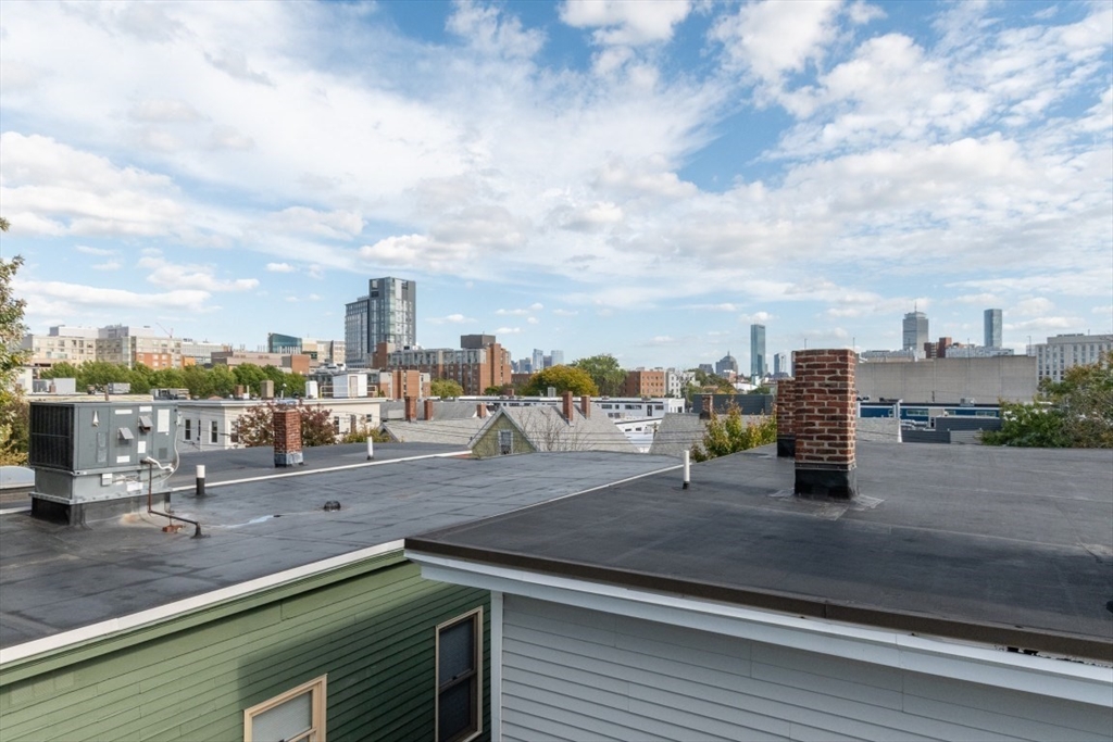 Discover modern Cambridgeport living in this sun-splashed penthouse condo set on a picturesque tree-lined street! Ideally located between Harvard, MIT, BU, and Central Square, just steps from the Charles River, cafés, and local shops. This stylish 2-bed plus office home blends classic charm with contemporary design. Enjoy gleaming hardwood-like durable tile floors, a sleek, new, full bath, and energy-efficient central-air for year-round comfort. The open-concept kitchen features an extended peninsula, stainless steel appliances, and crisp cabinetry—perfect for entertaining or everyday living. This unit also features direct access to the roof. Buyer to do own due diligence on any potential plans for roof deck. Bathed in natural light and thoughtfully designed for flow and function, this top-floor retreat captures the essence of Cambridge style and convenience. A rare gem in one of the city’s most walkable, vibrant neighborhoods. Don’t miss it!