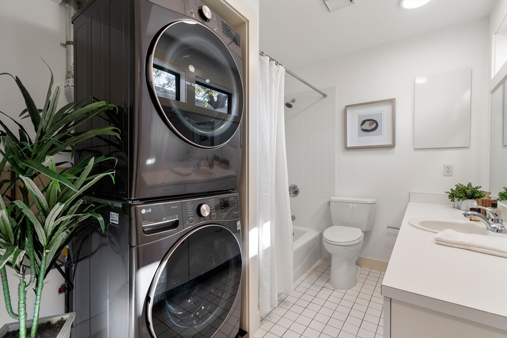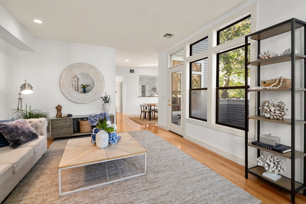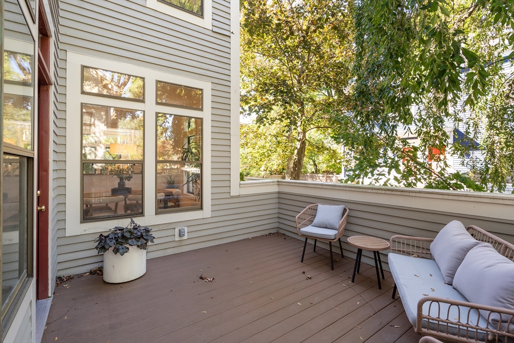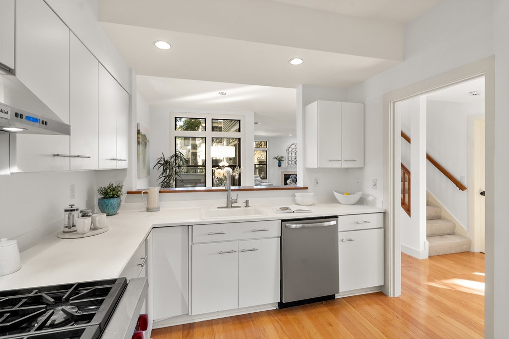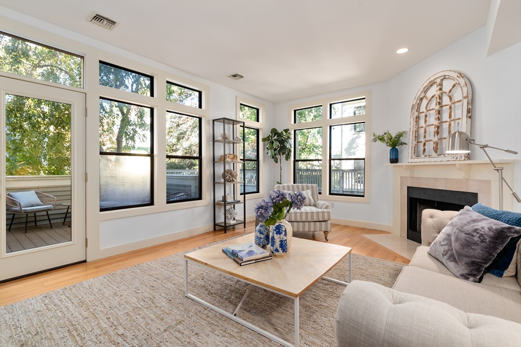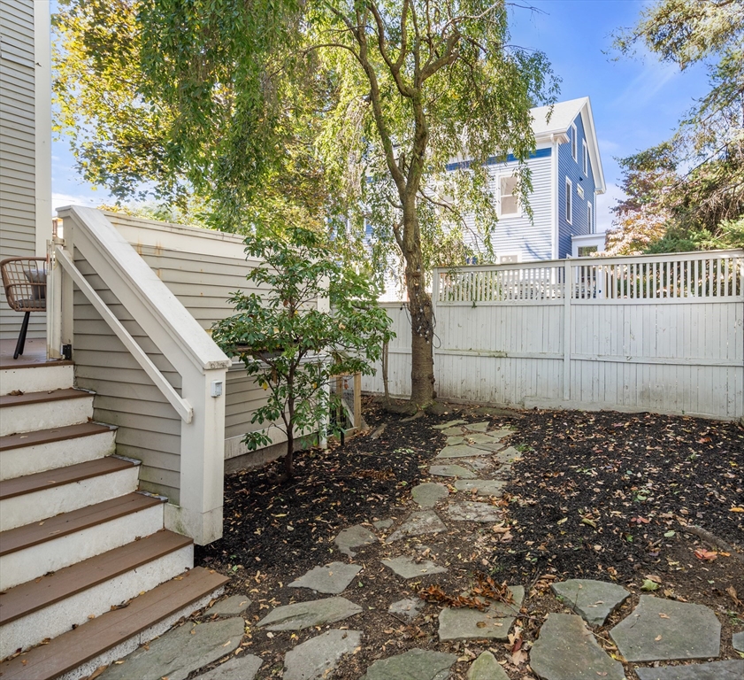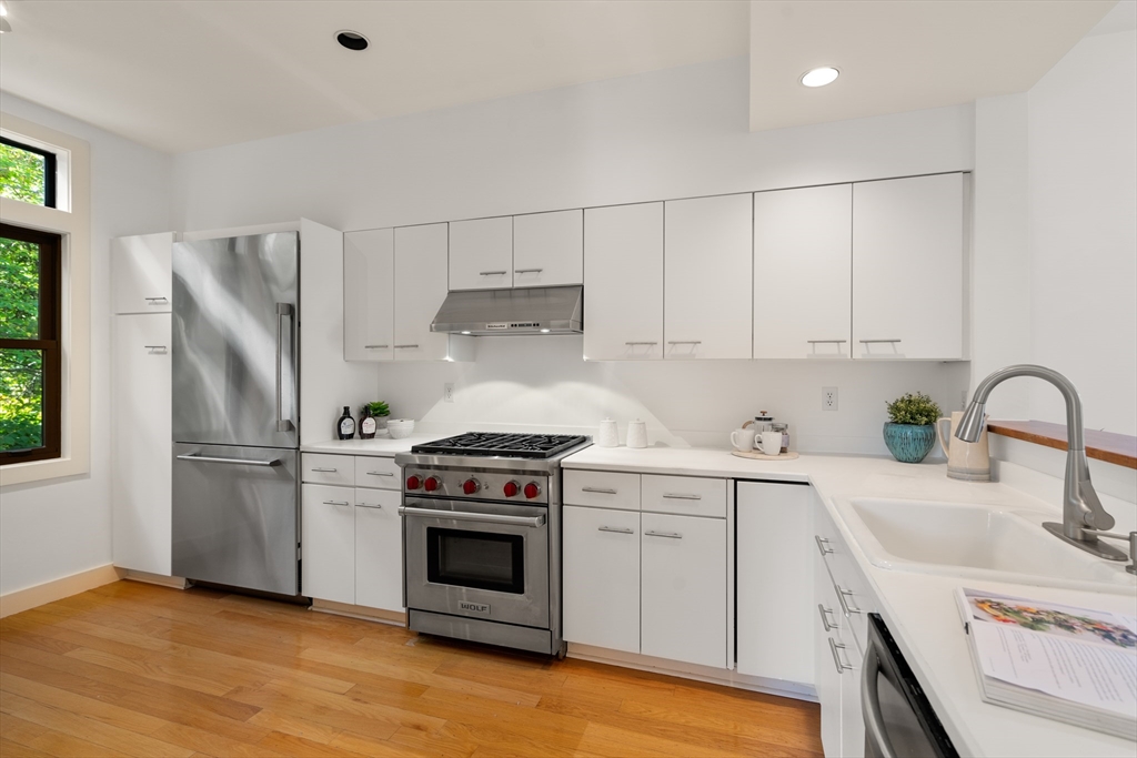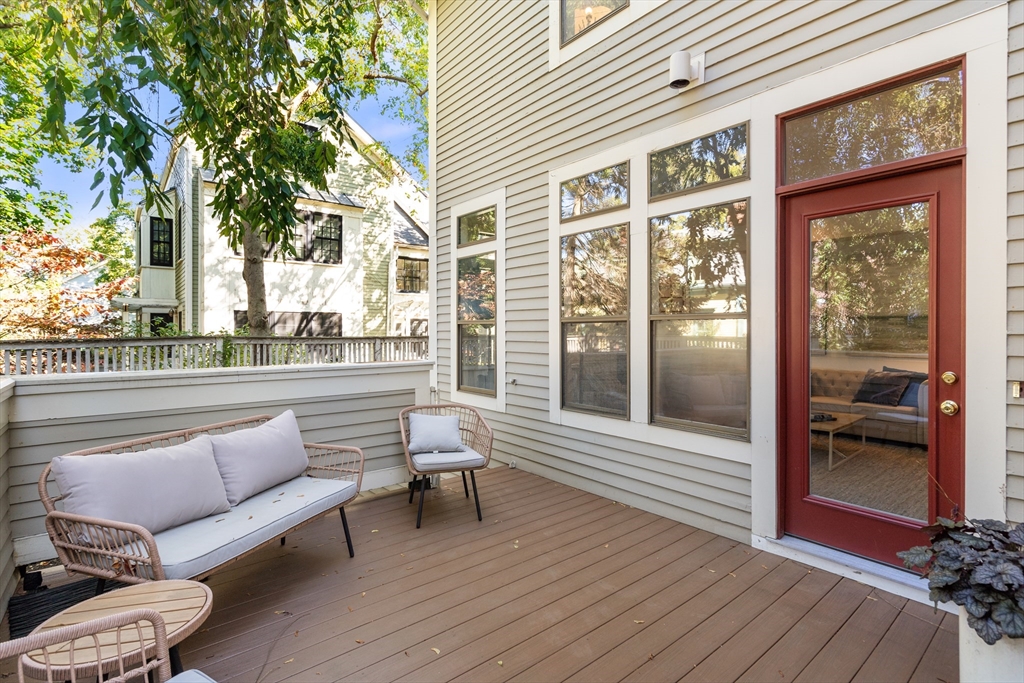 A bright and airy townhouse tucked away in beloved Kirkland Village. Through the foyer, the living room has a fireplace and access to the private deck and yard shaded by mature trees. The dining room opens to the contemporary kitchen with stainless steel appliances and gas cooking. There is also an office and half bathroom on this floor. Upstairs, the large primary bedroom has a double-height ceiling, two walk-in closets, and an en-suite bath. There are two more bedrooms, a hall bathroom, and laundry on this floor. The top level houses the fourth bedroom, and a custom office/guest room with a vaulted ceiling, skylight, custom built-ins, and a nearby walk-in closet. The lower level offers direct entry to the roomy attached garage. Living here offers easy access to Joan Lorentz Park, Cambridge Rindge & Latin, Cambridge Public Library, tennis courts, swimming pools, and cafes. Located within half a mile radius of Harvard Yard, Inman Square, and hospitals. Just minutes to Kendall Square.