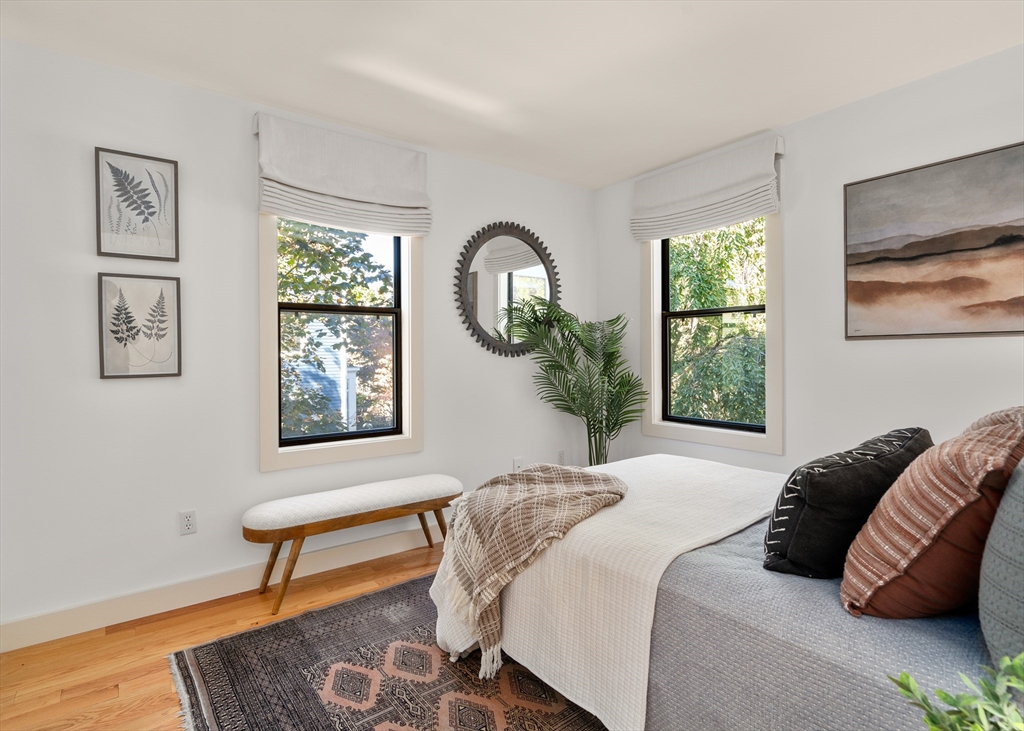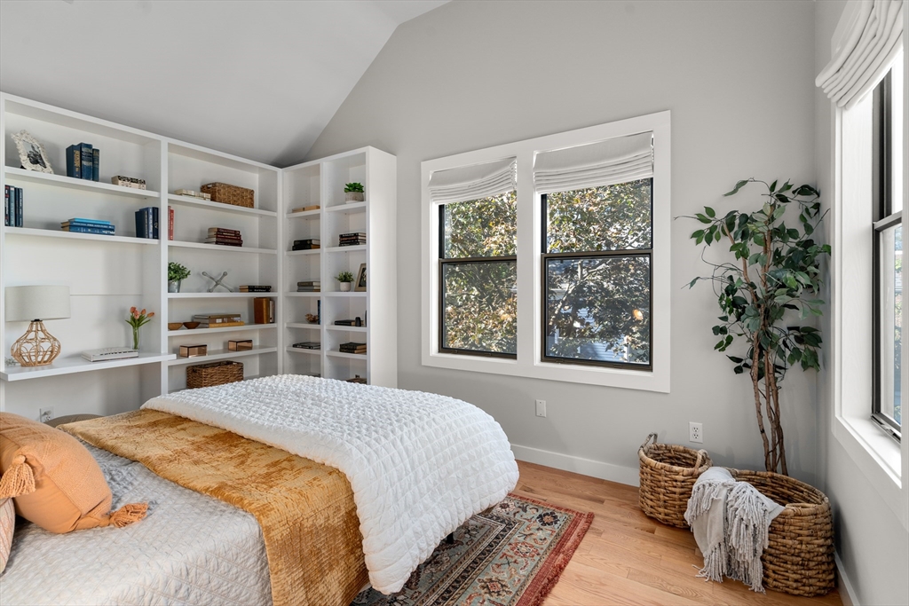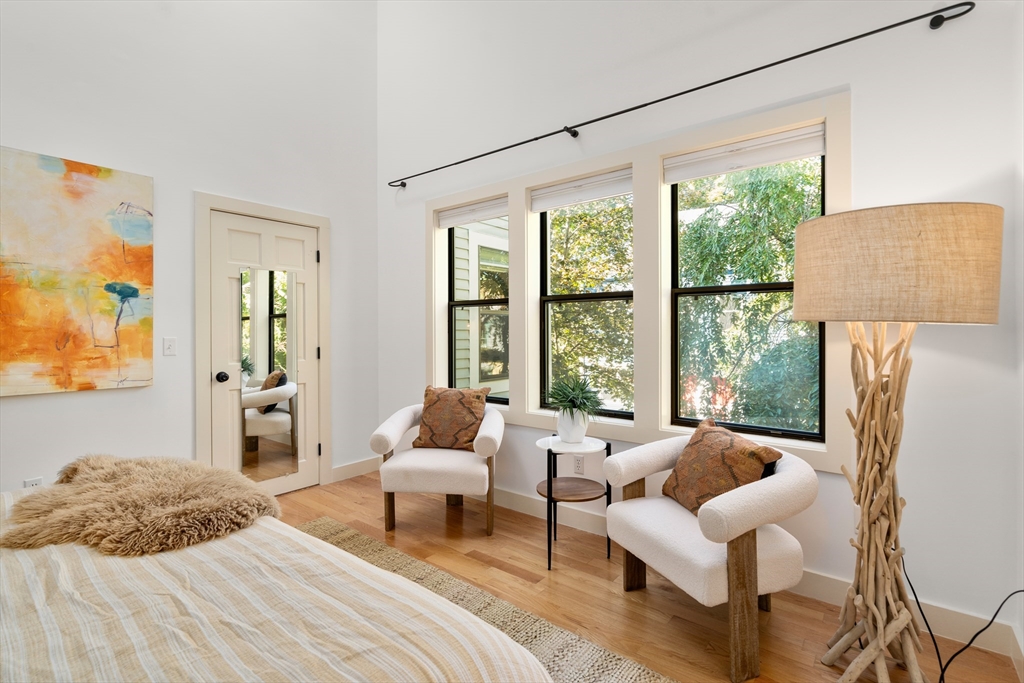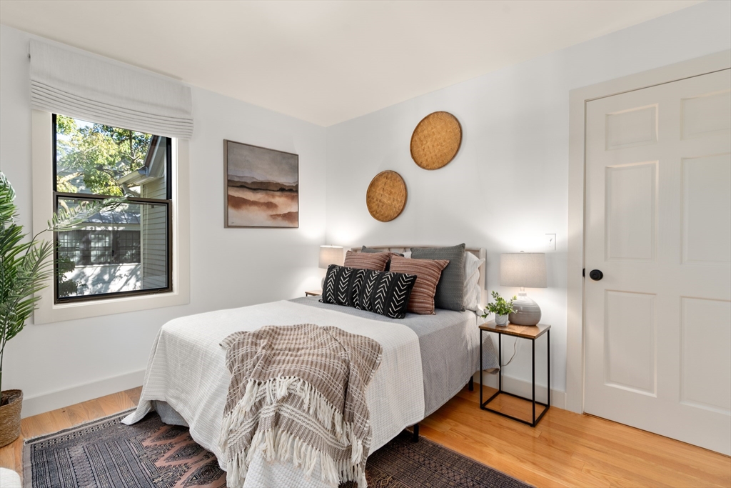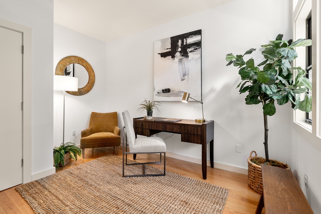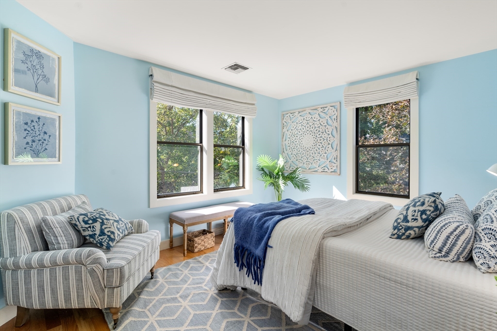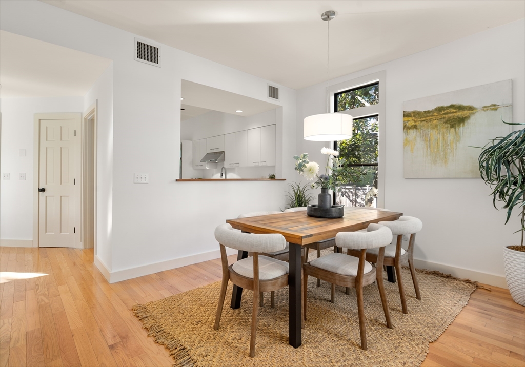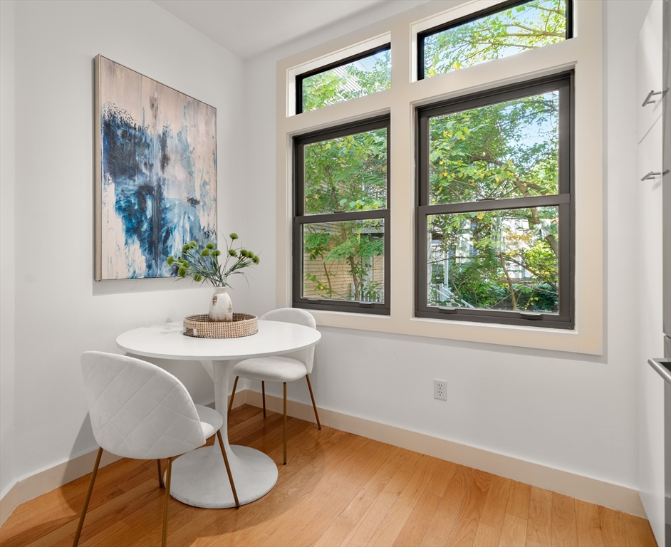 A bright and airy townhouse tucked away in beloved Kirkland Village. Through the foyer, the living room has a fireplace and access to the private deck and yard shaded by mature trees. The dining room opens to the contemporary kitchen with stainless steel appliances and gas cooking. There is also an office and half bathroom on this floor. Upstairs, the large primary bedroom has a double-height ceiling, two walk-in closets, and an en-suite bath. There are two more bedrooms, a hall bathroom, and laundry on this floor. The top level houses the fourth bedroom, and a custom office/guest room with a vaulted ceiling, skylight, custom built-ins, and a nearby walk-in closet. The lower level offers direct entry to the roomy attached garage. Living here offers easy access to Joan Lorentz Park, Cambridge Rindge & Latin, Cambridge Public Library, tennis courts, swimming pools, and cafes. Located within half a mile radius of Harvard Yard, Inman Square, and hospitals. Just minutes to Kendall Square.