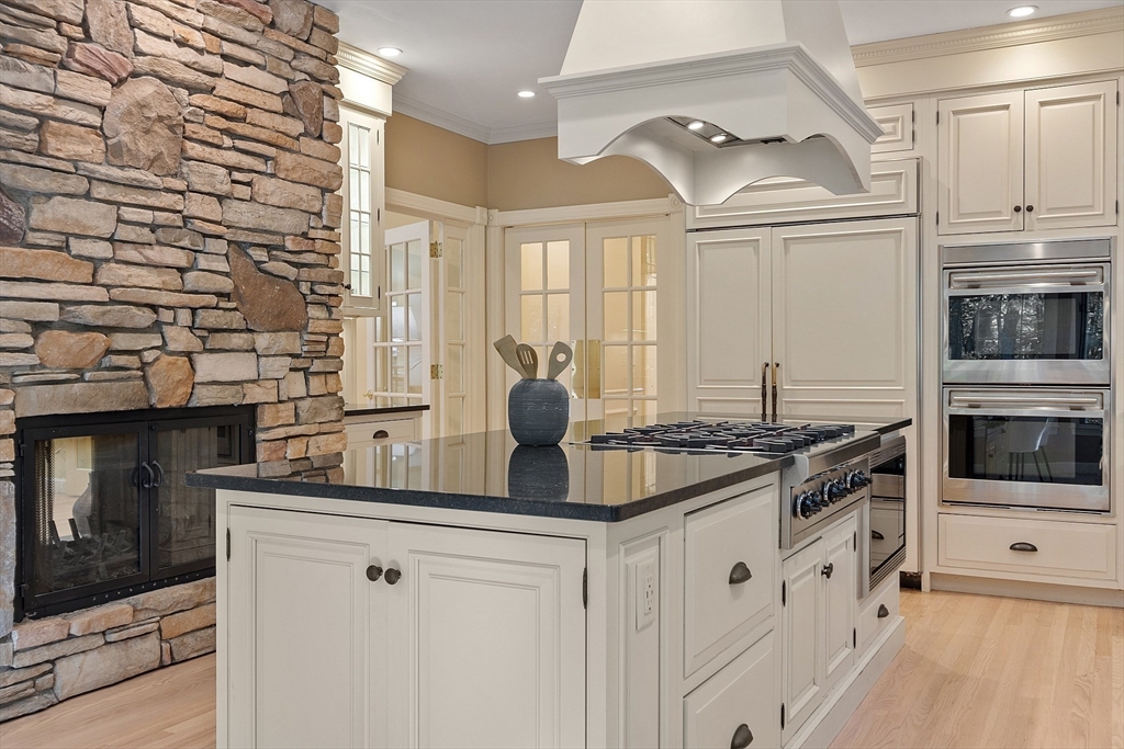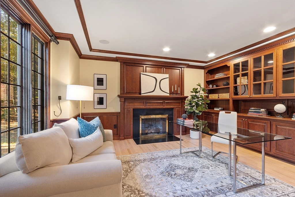 Privately set on 2 acres this impressive home blends classic charm with modern updates. Graceful millwork, high ceilings and refinished HW floors add timeless sophistication. Recent updates include a new roof, exterior paint and updated baths. The well-appointed Chef’s kitchen w/eating nook shares a handsome, inviting double-sided stone gas fireplace with the bright, airy family room. Formal living and dining rooms feature a soft color palette for comfort and conversation. Office/study w/built-ins offers a versatile space. Upstairs, 4BRs includes a reimagined primary suite w/luxurious marble bath, jetted tub, double vanity and double shower, plus 2 family baths and laundry. The expansive, bright walk-out lower level includes exercise room, game room, office and full bath making it ideal for guests, hobbies or as a home retreat. Near DeCordova Museum and commuter routes, enjoy privacy, flexible living and enduring style here. Move-in ready, don't miss your chance to call this one HOME!