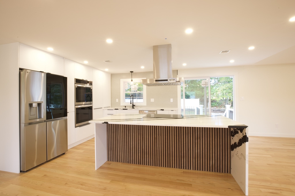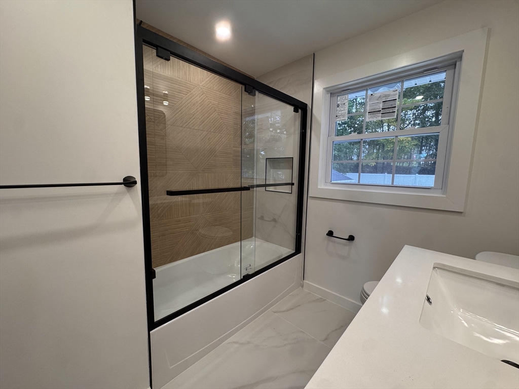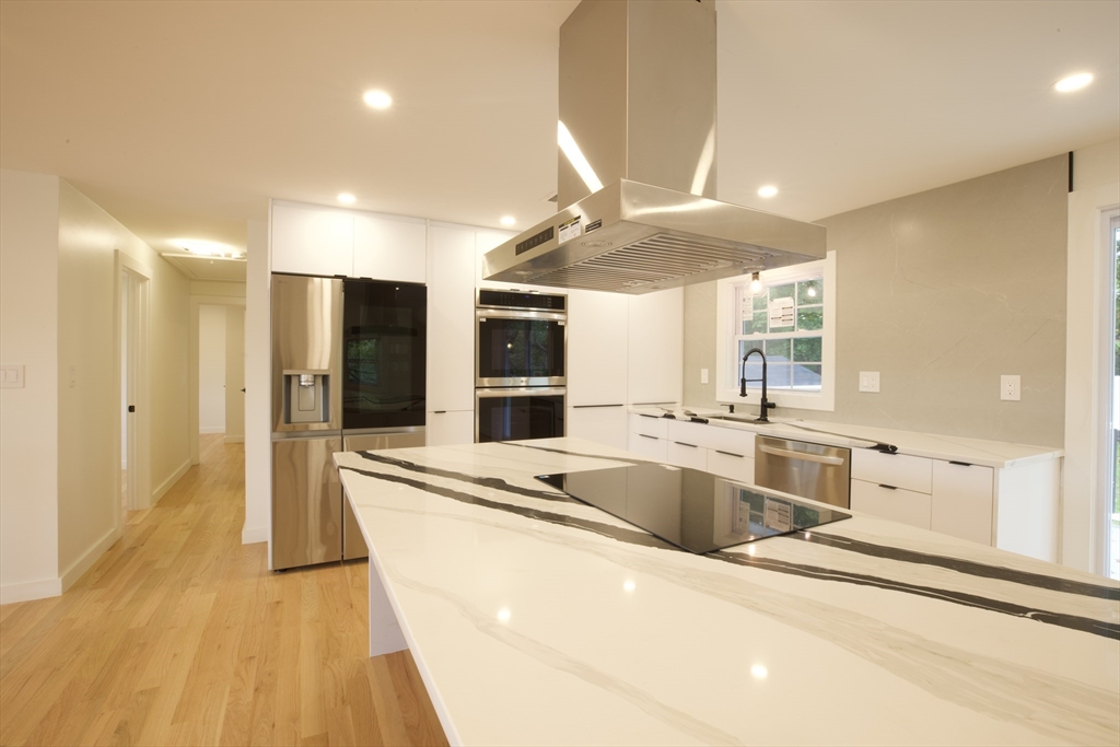Highly desirable location. Only 3 minutes from RT 95. Minutes away from downtown Woburn, new stores and restaurants. Property features 4 bedrooms, 2 bathrooms with open floor plan. The first floor blends the kitchen, dining and living room creating the perfect setting for family living and entertaining. Big garage with 2 side entrances and plenty of room for storage. New renovated backyard shed that can be used both as a storage and working station. Backyard is nicely leveled and enclosed with recently installed vinal fences. Laundry area with utility sink. Kitchen features stainless steel appliances, granite counters and island cooktop with hood. Do not miss out on a great opportunity to get your dream house....