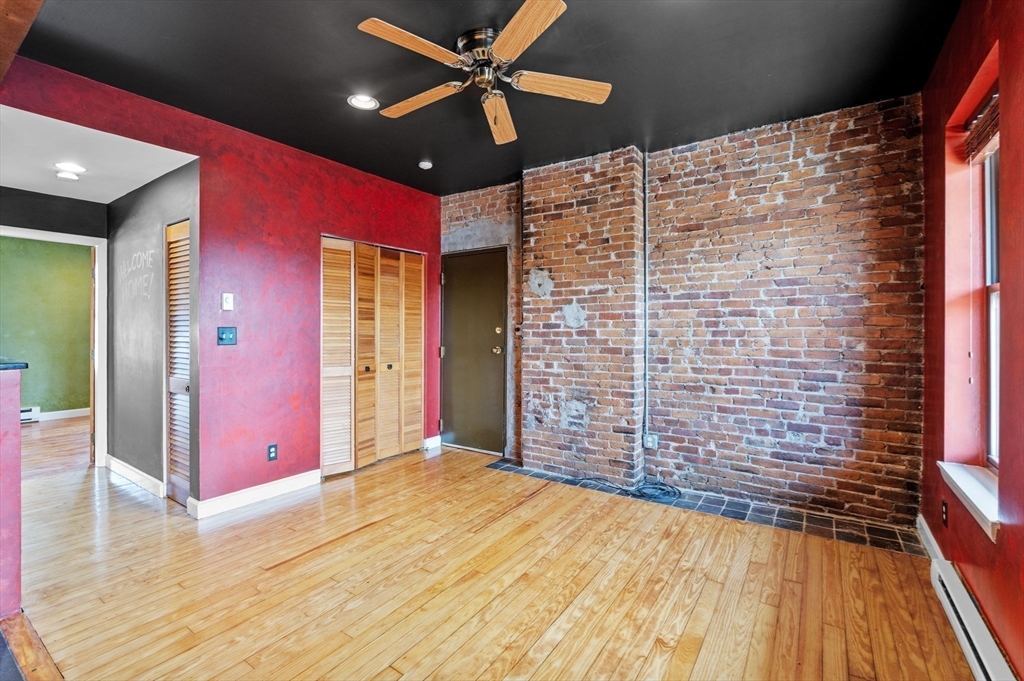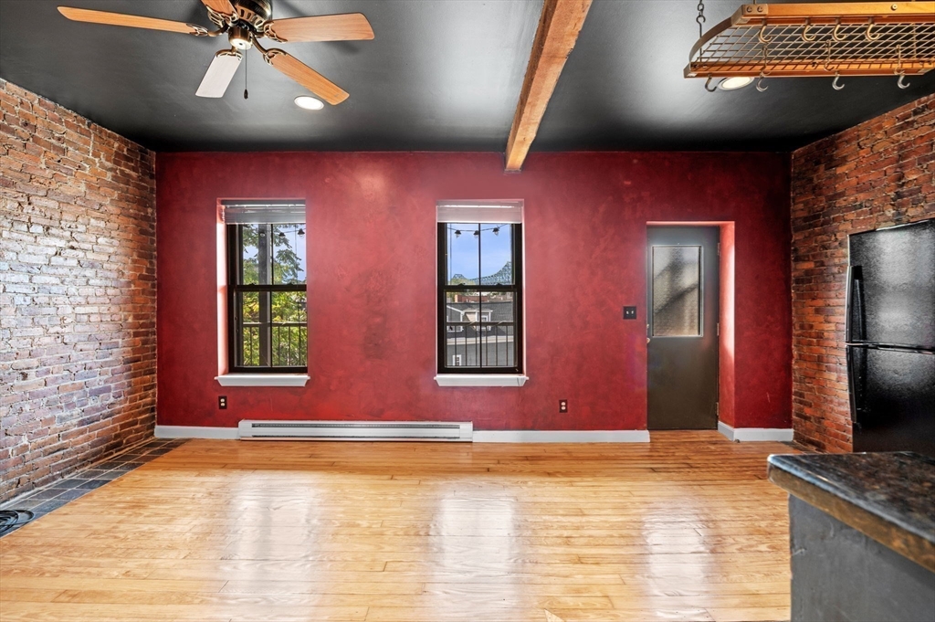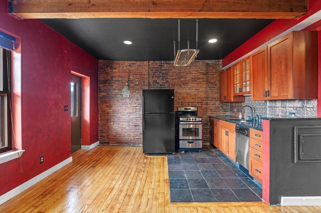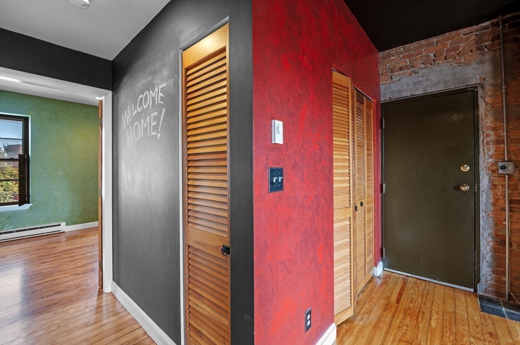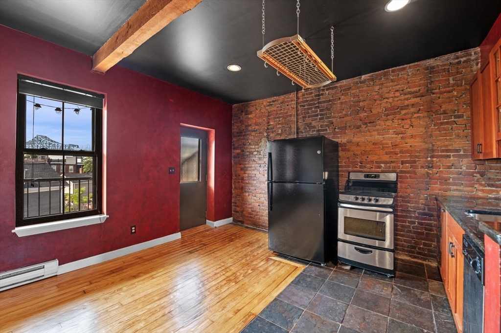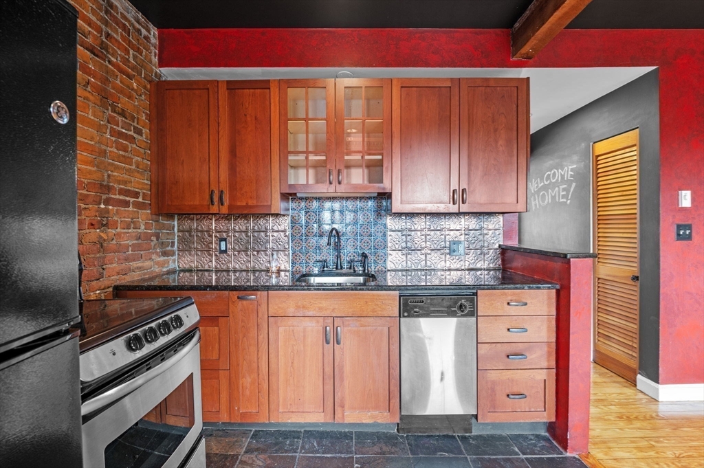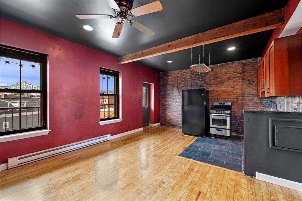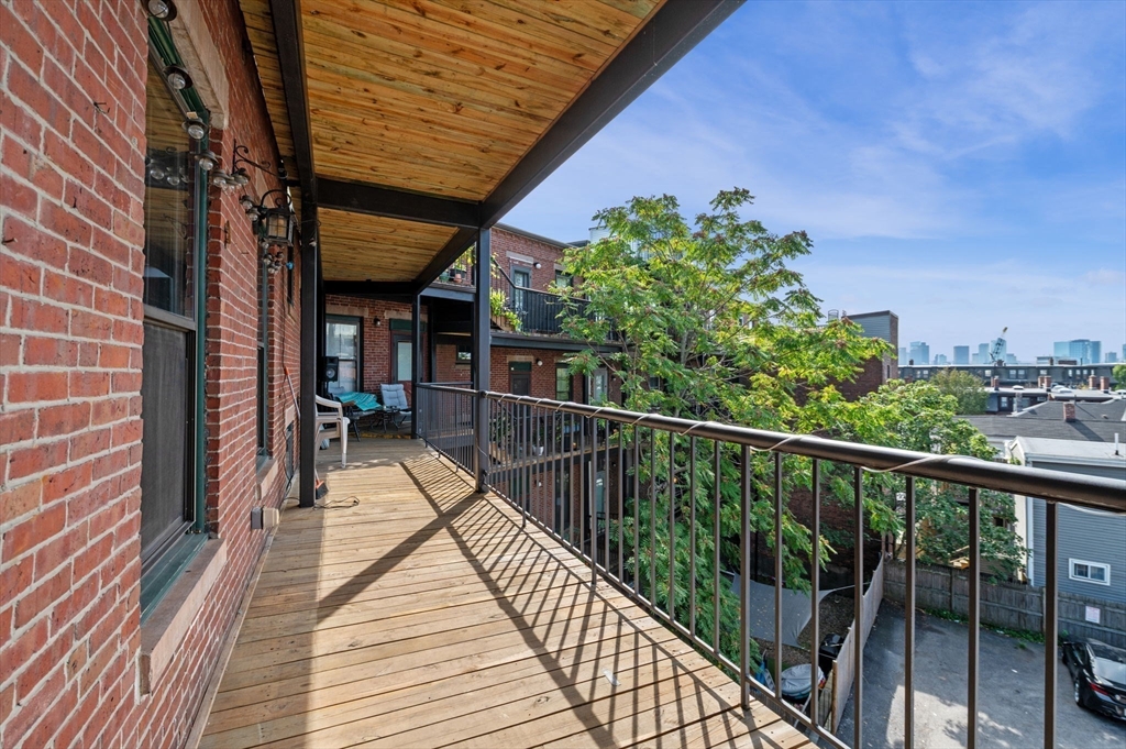 Leave ordinary behind! Chelsea Waterfront delivers downtown sophistication at a fraction of the cost. This 546 sq ft third floor unit has serious character with soaring ceilings, exposed brick walls, chalkboard wall, and hardwood floors that blow away cookie-cutter white-everything condos. Windows flood the space with light, open concept flows from living area to kitchen with counter space, custom cabinetry, and stainless appliances. The breathtaking private porch offers Boston city skyline views - perfect for enjoying a drink while watching sunset after a long day. Massive bedroom with walk-in closet, full tiled bathroom, abundant storage. 95 Walk Score location: 0.8 miles from MBTA Silver Line and Commuter Rail, steps to bus lines, and Mary O'Malley Park. Enjoy date night at award-winning Ciao Pizza, and stock up at Market Basket. This budget-friendly Chelsea gem is the one you've been waiting for!
