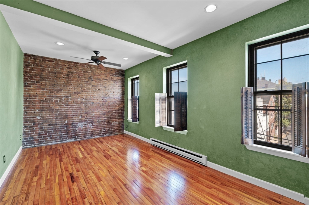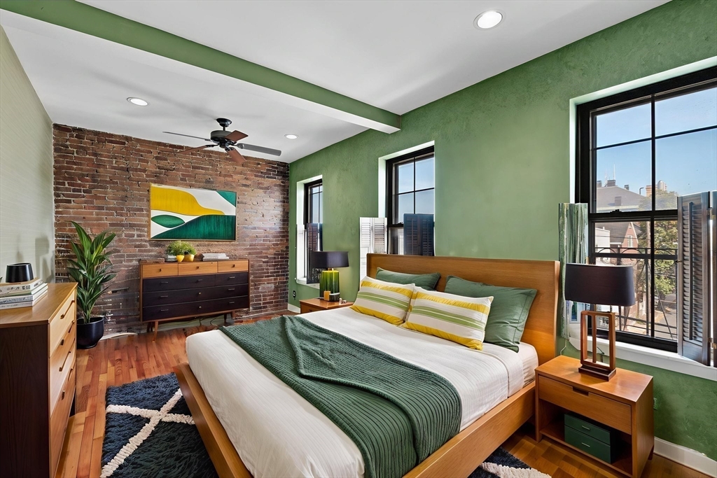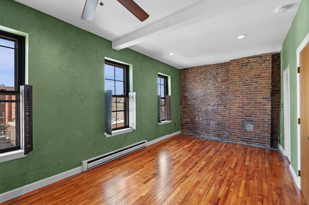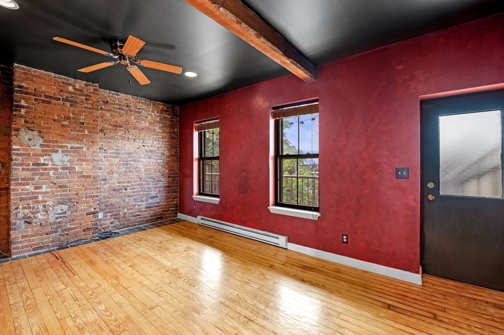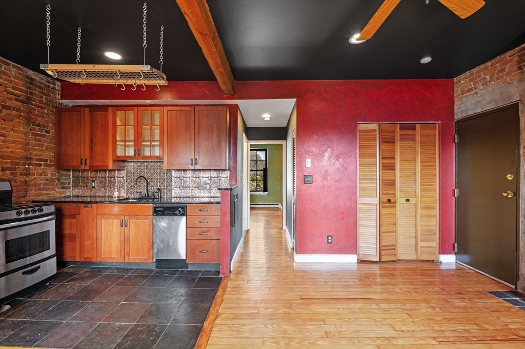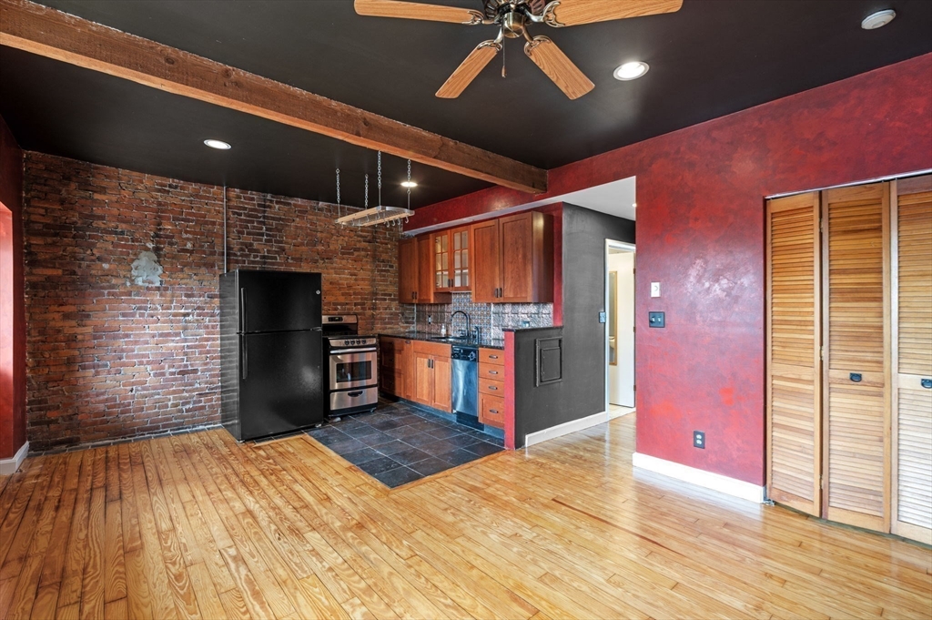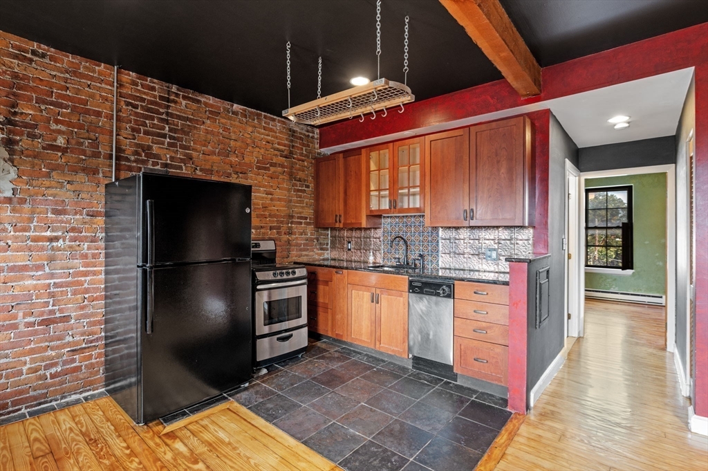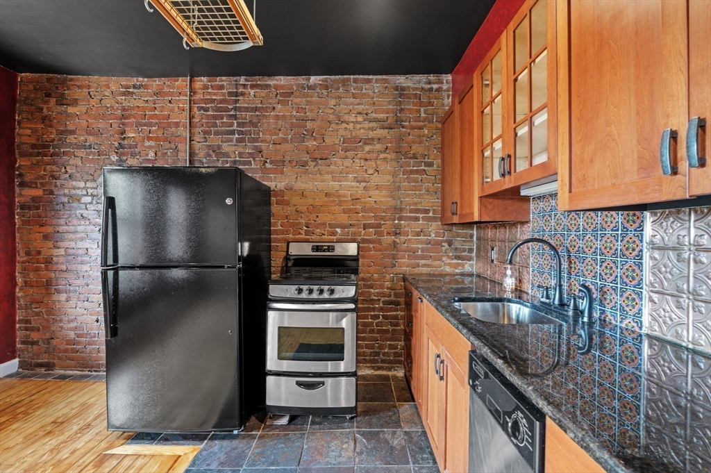 Leave ordinary behind! Chelsea Waterfront delivers downtown sophistication at a fraction of the cost. This 546 sq ft third floor unit has serious character with soaring ceilings, exposed brick walls, chalkboard wall, and hardwood floors that blow away cookie-cutter white-everything condos. Windows flood the space with light, open concept flows from living area to kitchen with counter space, custom cabinetry, and stainless appliances. The breathtaking private porch offers Boston city skyline views - perfect for enjoying a drink while watching sunset after a long day. Massive bedroom with walk-in closet, full tiled bathroom, abundant storage. 95 Walk Score location: 0.8 miles from MBTA Silver Line and Commuter Rail, steps to bus lines, and Mary O'Malley Park. Enjoy date night at award-winning Ciao Pizza, and stock up at Market Basket. This budget-friendly Chelsea gem is the one you've been waiting for!