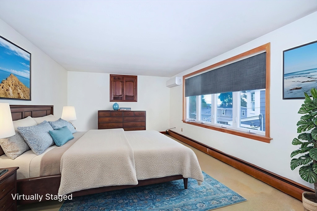 Welcome to your year-around Home in Squantum, complete with a beach at the end of the street, a great place for boating or canoeing. This multi level home offers a primary bedroom suite with water views of the bay, bathroom, much closet space and access to attic storage.The living room has breathtaking views of the Bay and islands. The kitchen and breakfast room, abut a Fireplaced dining room With hardwood flooring and a picture window. The two additional bedrooms have double closets and are adjacent to the laundry area and bath. The grounds are professionally landscaped with a patio overlooking a large yard for a pool or future expansion. The new Squantum elem. school should be completed in 2027. The area is convenient to public transportation, T,Marina Bay, Boston, and the newly revitalized downtown Quincy with many new restaurants.