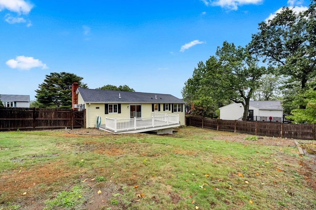 Beautiful Split Ranch in Sought-After Cul-de-Sac Neighborhood! Spacious 4-bedroom, 3-bath home offering comfort, convenience, and charm. The main level features gleaming hardwood floors, a cozy wood-burning fireplace, and a bright open layout perfect for everyday living and entertaining. The eat-in kitchen boasts granite countertops, ample cabinetry, and direct access to a 16x23 composite deck overlooking the fenced backyard—ideal for gatherings! The primary suite includes a full bath, with two additional bedrooms and another full bath completing the main level. The lower level offers exceptional flexibility with a kitchenette, living/dining area, bedroom, full bath, and laundry—ideal for extended family, guests, or in-law potential. Additional highlights include a 1-car garage, off-street parking for two, newer systems, and low-maintenance exterior. Prime location—minutes to 128/95, schools, commuter rail, Lake Quannapowitt, and Crystal Lake. Don’t miss this move-in ready home!