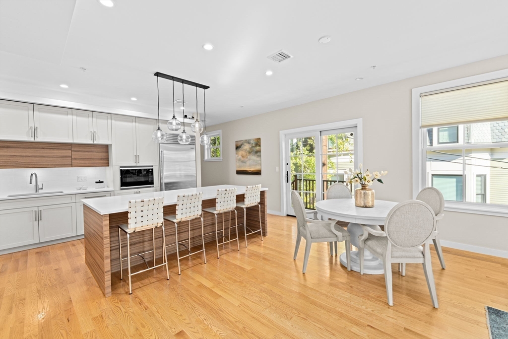 Nestled between the charming enclaves of Brookline Village & Coolidge Corner is this gorgeous newer construction (2019) duplex condo with 3+ bedrooms & 3.5 baths. This residence exudes sophistication with its 2,070 square feet of thoughtfully designed space & high ceilings. The heart of this home is the stunning open kitchen, boasting top-of-the-line stainless steel appliances, an expansive island & seamless flow into the family room, complete with a gas fireplace & oversized windows that invite natural light leading to a deck. Comfort meets style in the serene primary suite featuring a walk-in closet, an indulgent full bath with a soaking tub & a glass-enclosed shower. The 2nd level reveals an ensuite bedroom, an add'l bedroom & a versatile full bath connected to an office or optional bedroom with deck access. Add'l conveniences include in-unit laundry, central air & 2 parking spaces. Just minutes to parks, the Green Line, Longwood Medical, top-rated schools, shops and restaurants!