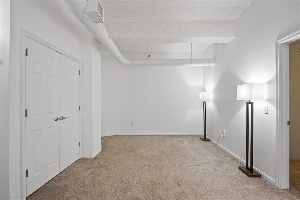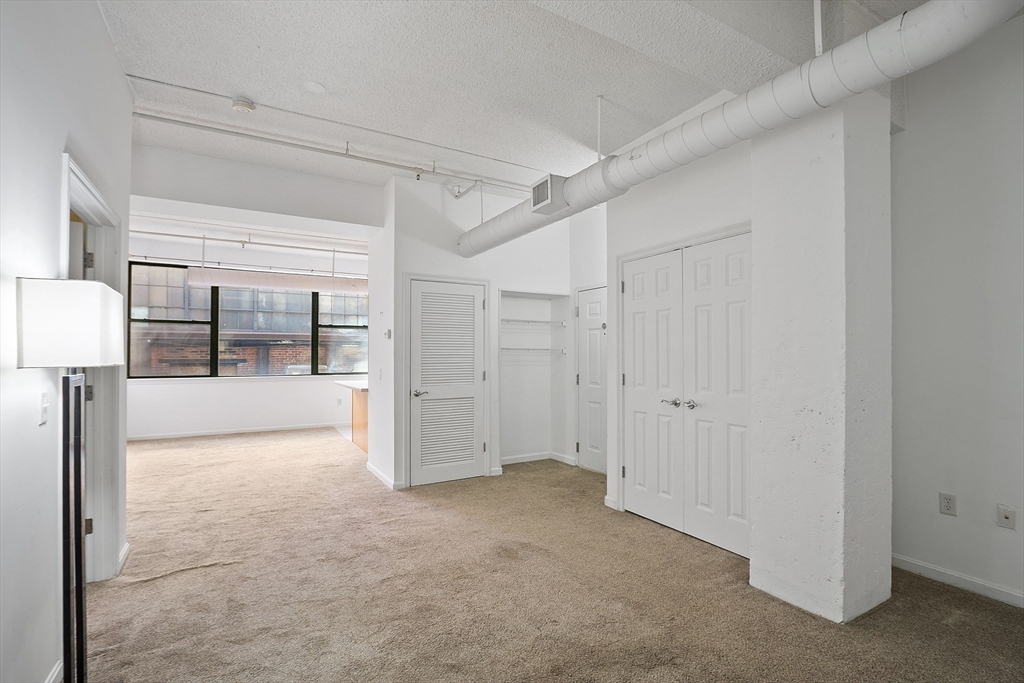 Welcome to Moller's Lofts!! This second-floor one-bedroom unit places you just steps from everything downtown Lowell has to offer. The open floor plan, soaring ceilings, and towering windows truly steal the show! Enjoy a seamless flow between the kitchen and living areas, perfect for entertaining or simply relaxing at home.Additional conveniences include a large private storage area, a well-appointed laundry room in the building’s lower level, and an elevator for easy access. The unit also features central air for year-round comfort and — best of all — one GARAGE PARKING spot conveniently located at the Leo Roy Garage just up the street. Located on a beautiful cobblestone street, Middle Street, runs parallel to Market Street with restaurants, shops, cafes, museums and more just steps away! Don't miss out, come take a look today!
