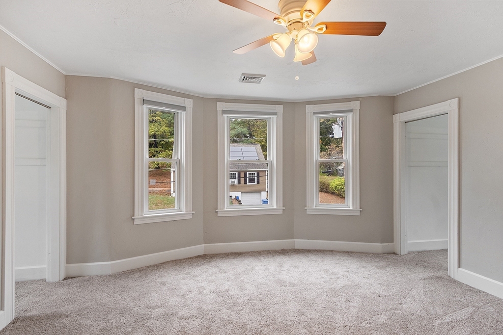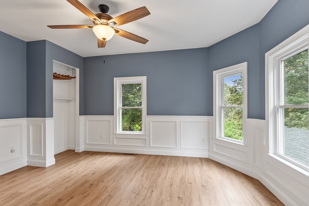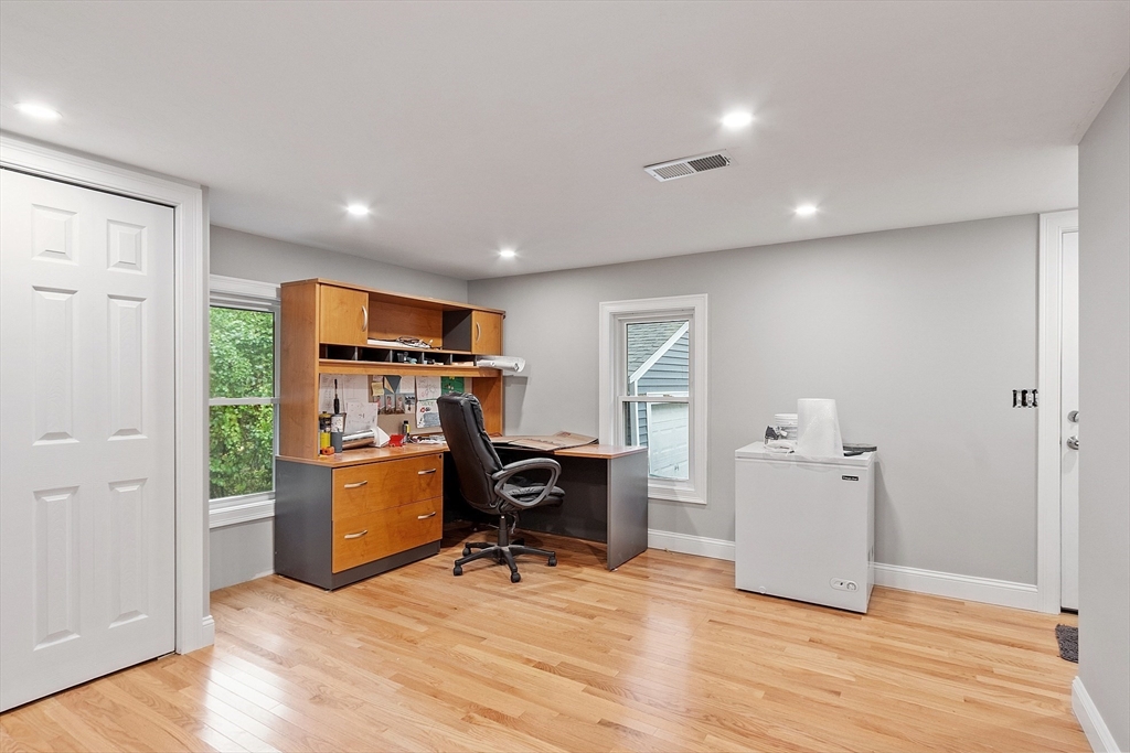 Gorgeous contemporary colonial awaits your family! Young roof, solar, siding, furnace & AC. Nothing to do but enjoy. Beautiful kitchen w/newer appliances, shaker cabinets w/lighting, tiled backsplash, center island & flows into your dining room w/raised panel walls. Substanial family room with 8 & 9 foot ceilings on the 1st floor. Freshly painted throughout the home. The adorable mudroom is perfectly appointed w/hooks & closet space. 1st & 2nd floor full baths. All bedrooms on 2nd floor have generous size walk-in closets. The 13 x 18 plus, primary bedroom has hdwd, 2 ceiling fans, walkin closet & recessed accent lights. Office & playroom are full of recessed lights & hardwood flooring & closets. Could be au pair suite, additional bedrooms or potential accessory apartment. Workout in your own gym with 8'7" ceiling to lift, jump/rope. Then retreat to your relaxing sauna. Newly paved driveway w/2 car detached garage. Need to Travel? Close to Route 2, 12 & 31. Easy to show & is a must see!