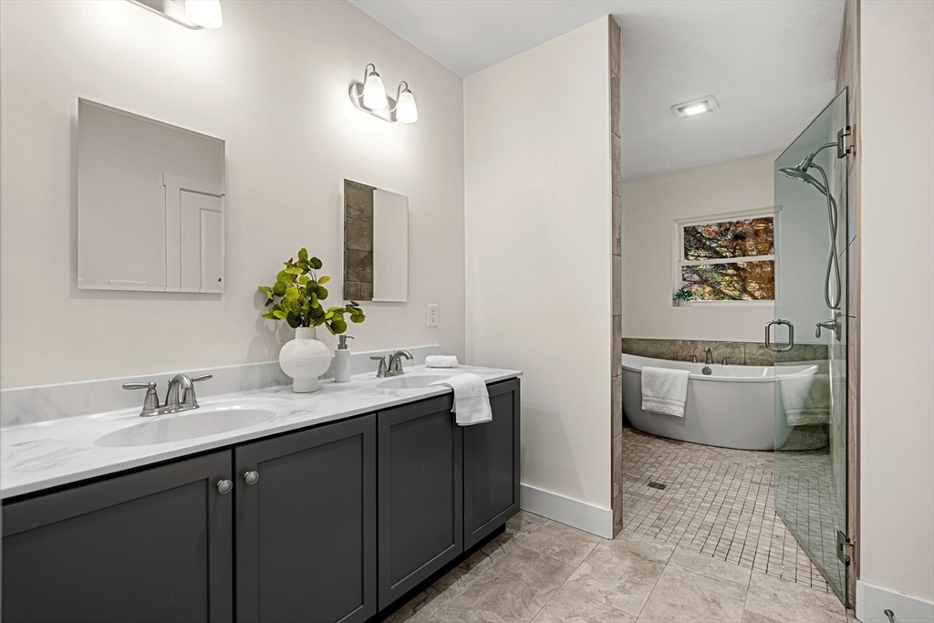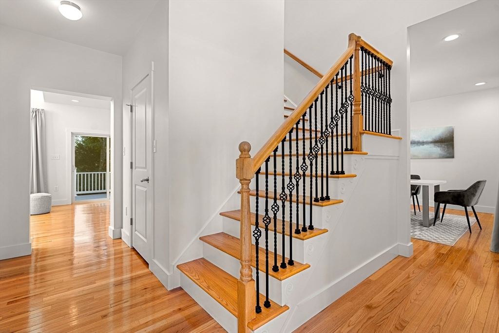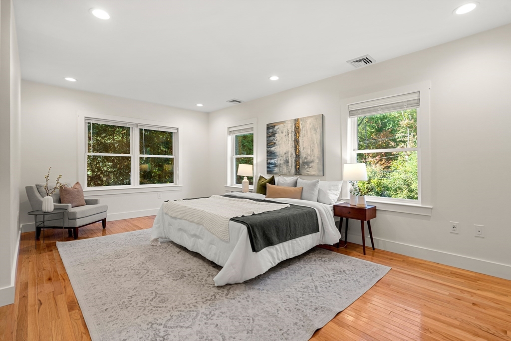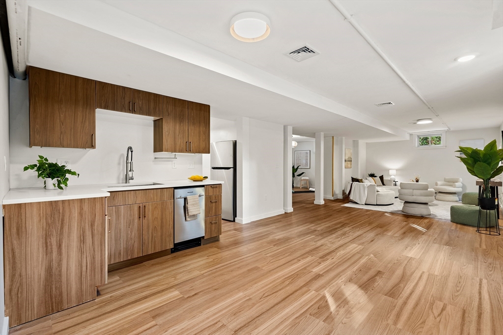 Don't miss this beautiful 4 bed, 3.5 bath 2023 Contemporary Colonial located steps to Lexington Center! The stunning kitchen features stone countertops, gas range, and center island flowing seamlessly into a sun-filled living area complete with lofted ceilings and serene views of the fenced-in backyard. Upstairs the thoughtfully designed primary suite has two walk-in closets and a spa-inspired ensuite with a luxurious wet-room including soaking tub and shower perfect for relaxing. Three additional bedrooms, a 2nd-floor laundry, and hardwood floors throughout finish the main levels. The finished walk-out lower level offers open-concept living with kitchenette potential, ideal for guests or an in-law suite. Step outside to a spacious sunny deck and stone patio, perfect for entertaining by the fire pit. Enjoy central air, a two-car garage and not to mention easy access to Restaurants, parks, shops, bike path, and all that Lexington Center has to offer.