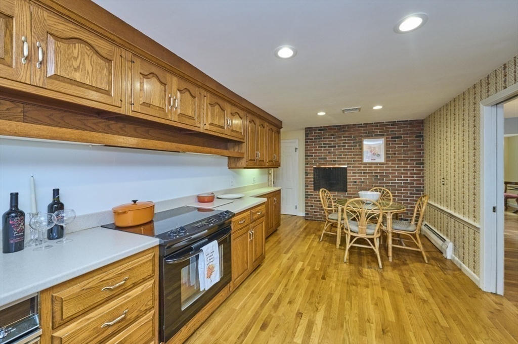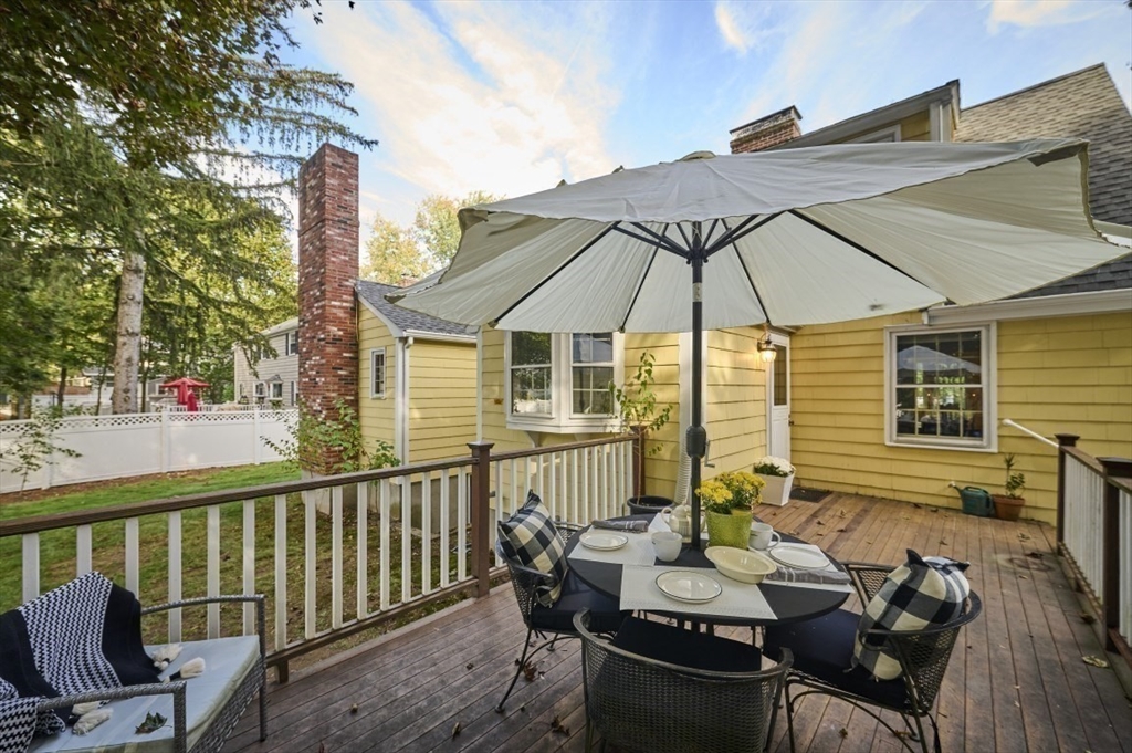 Highly desirable area near Bentley Univ.!! 8 rm Cape with expanded wing! 4 bedrooms, 2 full baths, 3 fireplaces! Bright, opened chef's kitchen has beautiful cabinets,generous space, Corian Counters, fireplace and bow window! Formal living rm with hardwood floors and fireplace, formal dining rm with elegant touches; sparkling chandelier, chair rails and hardwood floors! Relaxing family rm with over sized stone fireplace,cathedral ceilings, skylights, wood beams & wet bar! 1 bedroom is located on Main Floor, next to 1 full bath. Upstairs has 3 good sized bedrooms and 1 full bath! Large landscaped yard with fence,sprinkler system, deck for entertaining, 1 car garage,parking for 4! Basement has lots of potential space to be customized for expansion! Navian heating system, gas, central A/C! Close to Bentley Univ, convenient access to public transportation,Rt.128, Mass Pike, Rt 2, MBTA commuter rail (Fitchburg Line) is about 1.2 miles away, local parks, Moody St, and shopping