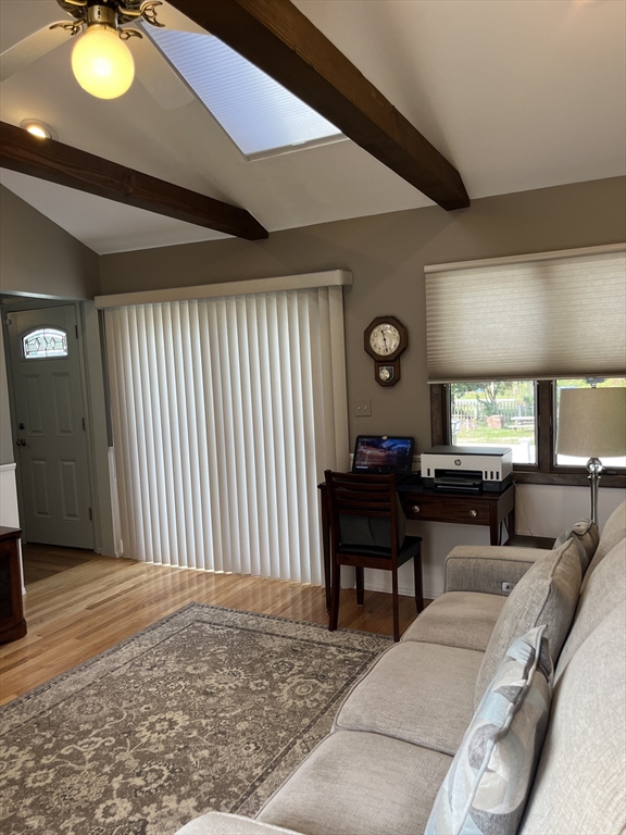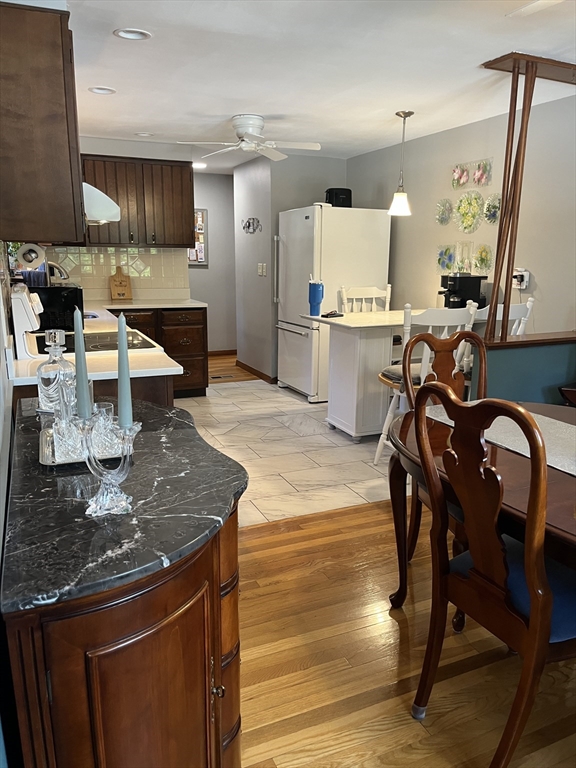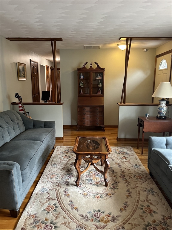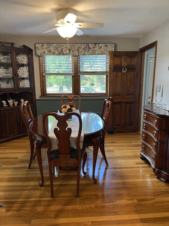 LOCATION... Walk to Dawe Elementary School. Pride of Ownership for 40+ years. Move right in! First time Buyer? or Downsizing? This is a beautifullly maintained and updated three bedroom one bathroom ranch w/ large basement. Features include hardwood floors throughout, a Sunny Living Room with fireplace(propane) and bay window leads to Dining Room with ceiling fan and built in hutch, open to the update Kitchen with new appliances, countertops and flooring. The Bright and Warm Family Room has a beamed ceiling, two sliders to two decks, recessed lights, ceiling fan and mini split unit. The basement has laundry area, storage, utilities room, and plenty of space for a gym, playroom,office,make it your own! A Great Big Yard with plenty of room to play and entertain with two sheds for storage. Located minutes to all major highways, stores, Commuter Rail, schools, restaurants and more. Pull down attic. Seller has identified a property, quick closing available .