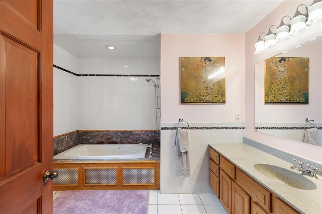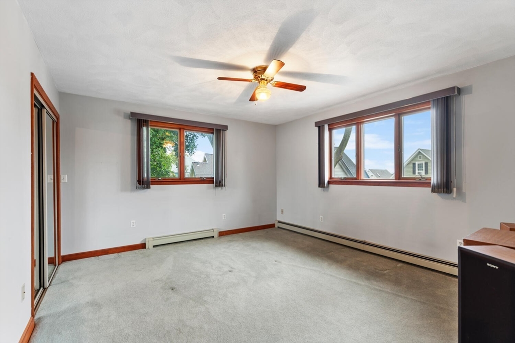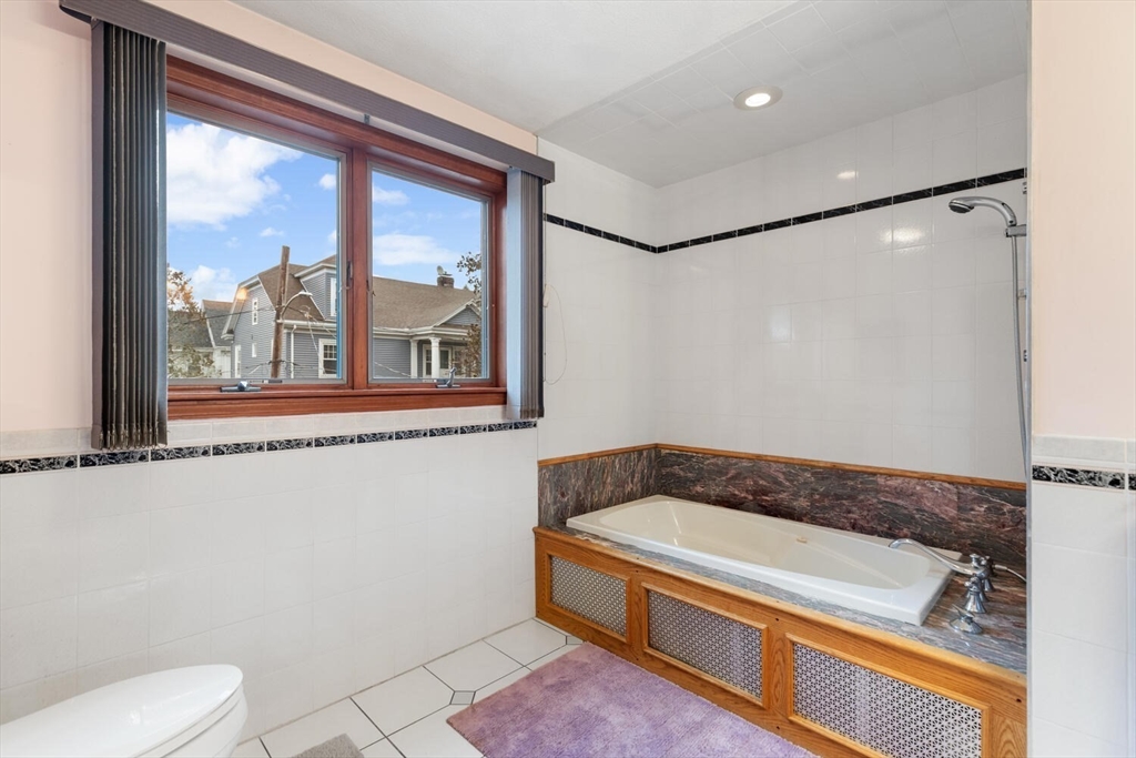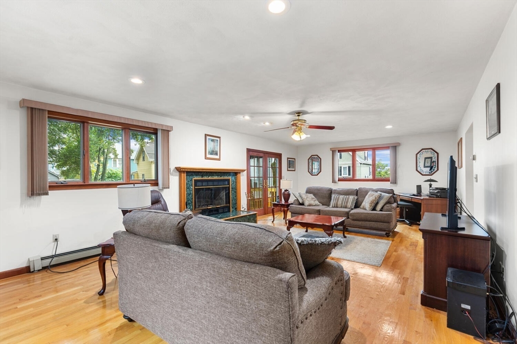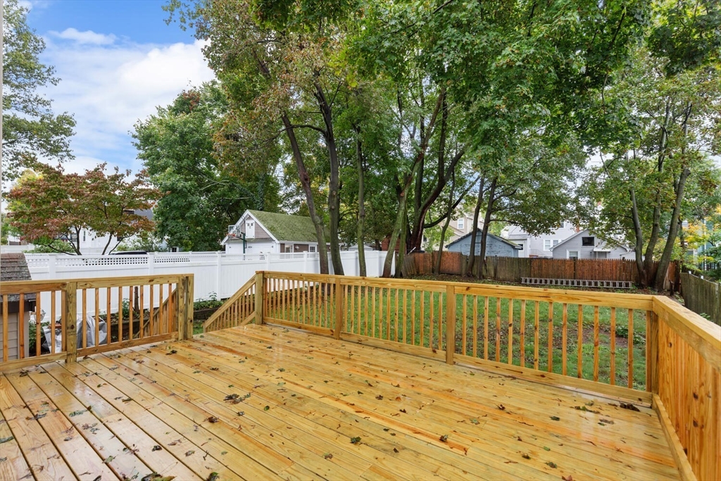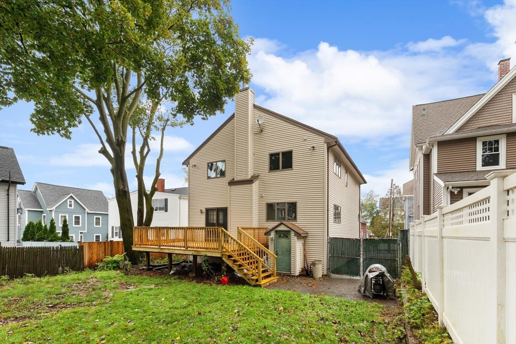 Immaculate & move-in ready! Impeccably kept 3 BR beauty (built 1993) boasts generous space, natural light & a huge bonus: a full walk-out lower level fully framed w/plumbing & electric - ready to finish as an in-law/teen suite, family room, or added living space to suit your needs. The warmth of this home is immediately felt as you step inside to gleaming hardwood floors, wood accents & abundant custom windows that fill the home w/sunshine. 1st floor flows beautifully: elegant dining rm w/bow window opens to a spacious kitchen w/built-in table for 4, ample counters & cabs. Oversized living rm w/cozy fireplace leads to a new deck overlooking the large, level, fenced yard - a welcoming spot to unwind or host friends. Main BR suite impresses with soaring cathedral ceiling, skylight, spa bath w/jetted tub, & walk-in closet. Add to the list: 2 more bedrooms, new water htr, 3C driveway, & unbeatable location near buses, parks & 1.5 miles to Malden Center/Orange Line. A truly special home!