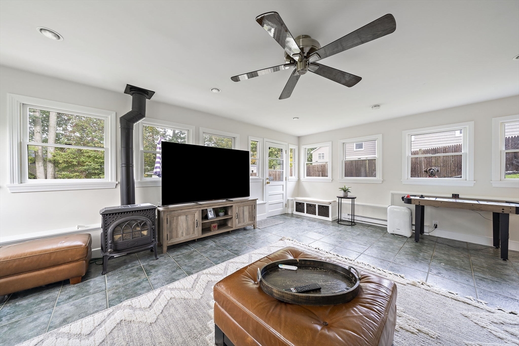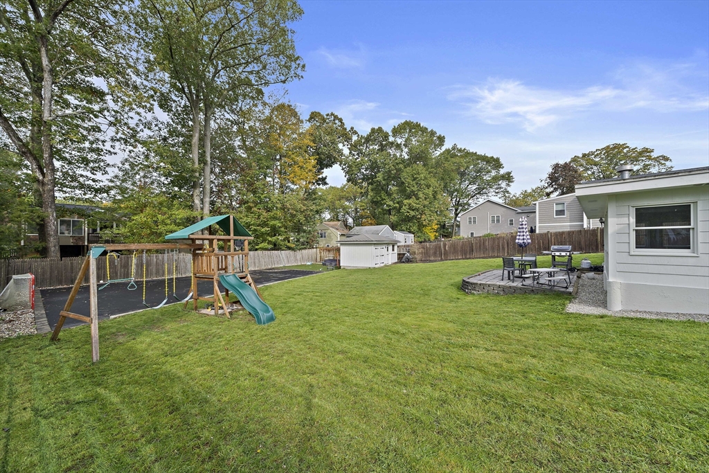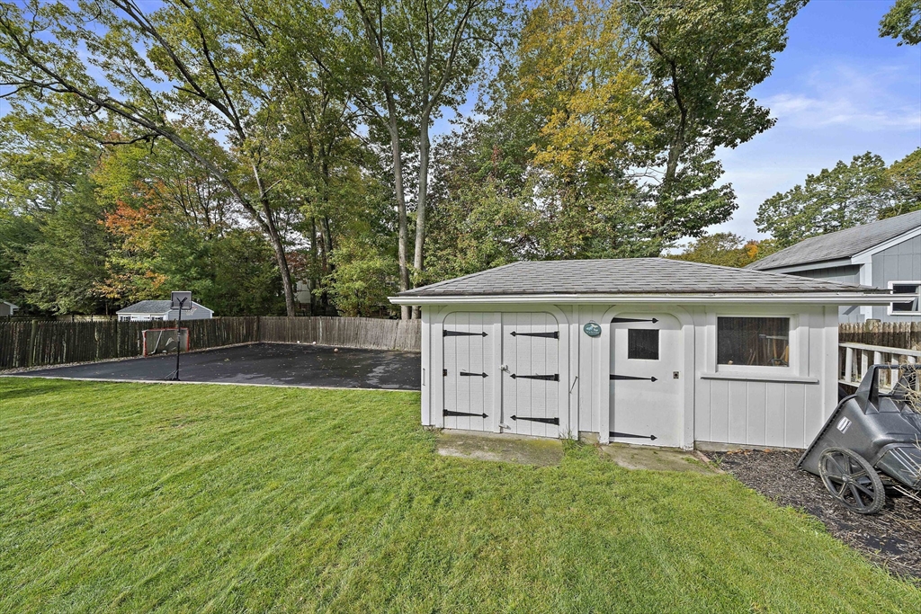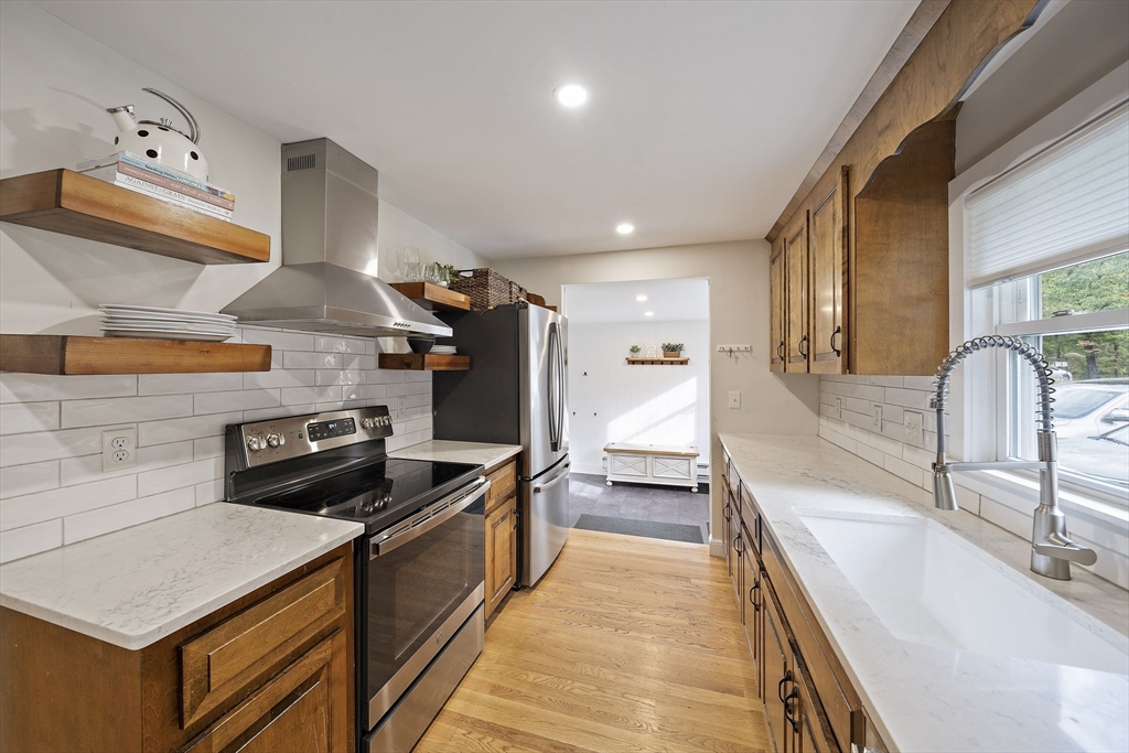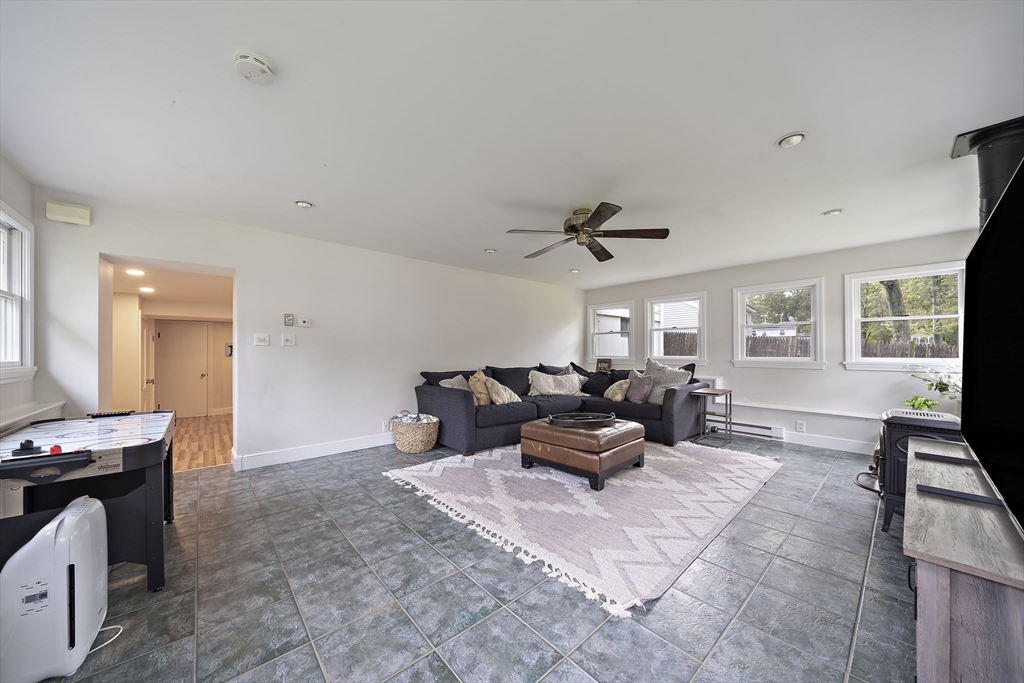Location is everything! This beautifully maintained ranch sits on a level lot in a desirable neighborhood offering both convenience and charm. The fenced backyard includes an oversized shed and garden area. Inside, a heated garage with loft storage and a large heated mudroom lead to a country kitchen with custom cabinetry and dining area. The formal living room with a wood-burning fireplace is perfect for relaxing. Three bedrooms feature hardwood floors. The finished lower level offers flexible space for a family room or playroom. A bright 15' x 21' bonus room with separate entry, gas stove, and electric heat makes a great studio, gym, or guest area. Easy access to South Weymouth Commuter Rail, Braintree T, Route 3, South Shore Hospital, shopping, and restaurants. Welcome home!