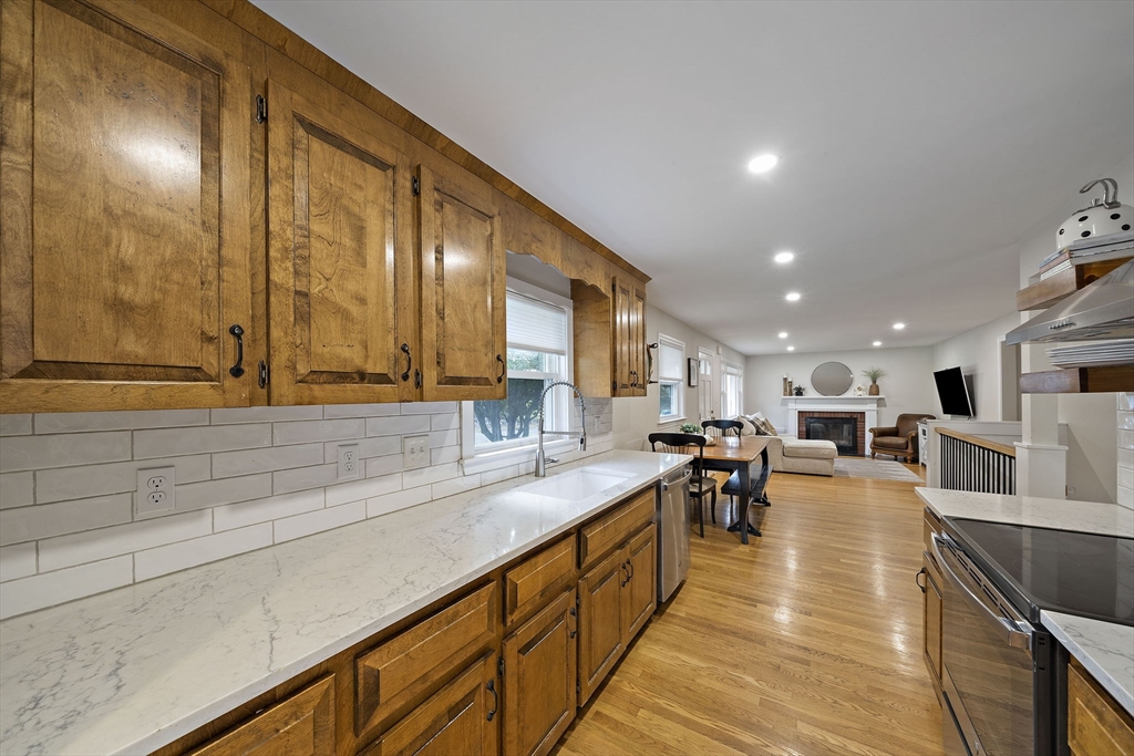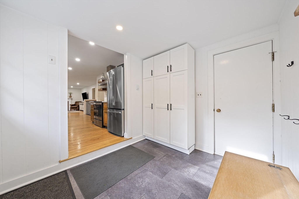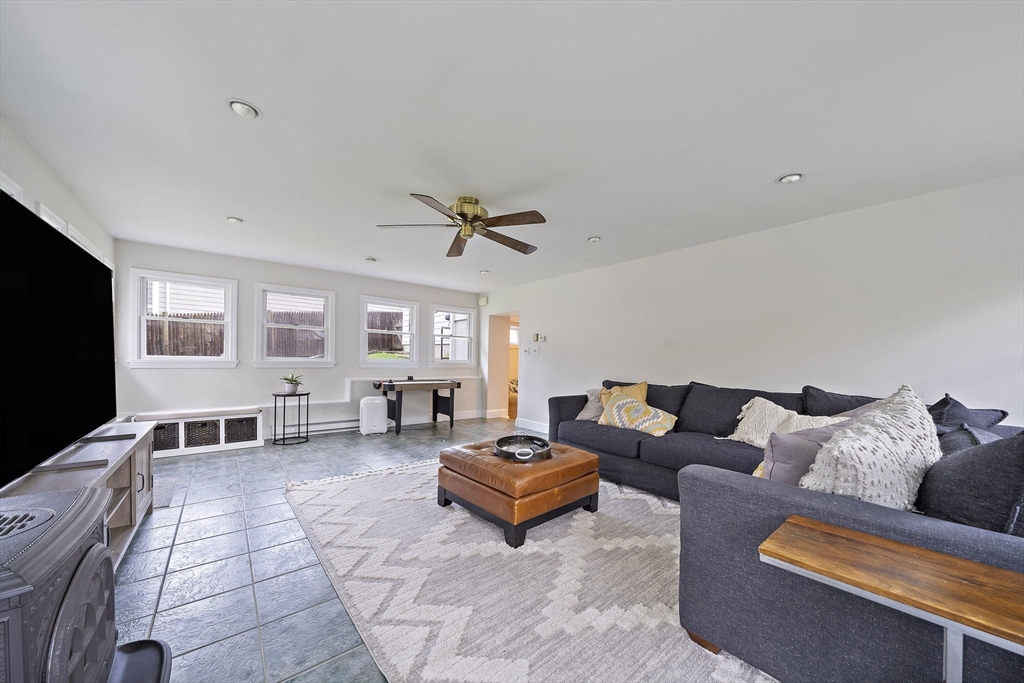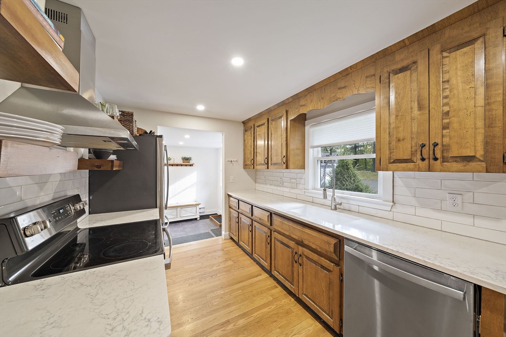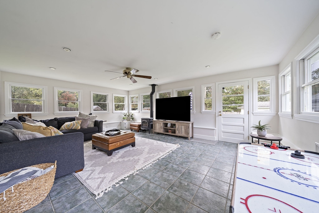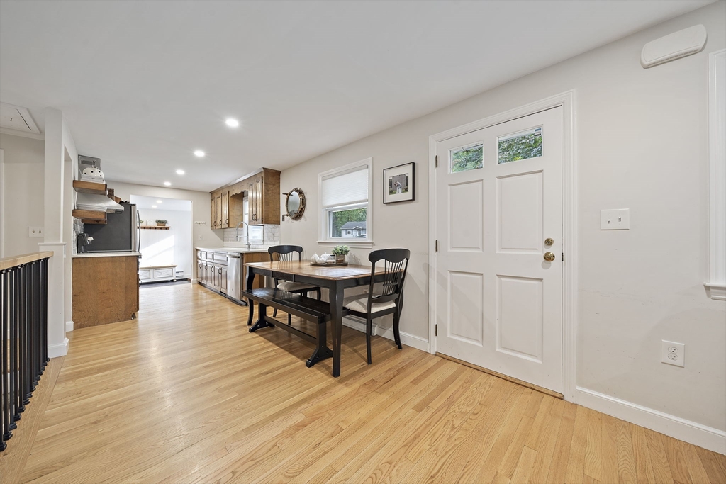 Location is everything! This beautifully maintained ranch sits on a level lot in a desirable neighborhood offering both convenience and charm. The fenced backyard includes an oversized shed and garden area. Inside, a heated garage with loft storage and a large heated mudroom lead to a country kitchen with custom cabinetry and dining area. The formal living room with a wood-burning fireplace is perfect for relaxing. Three bedrooms feature hardwood floors. The finished lower level offers flexible space for a family room or playroom. A bright 15' x 21' bonus room with separate entry, gas stove, and electric heat makes a great studio, gym, or guest area. Easy access to South Weymouth Commuter Rail, Braintree T, Route 3, South Shore Hospital, shopping, and restaurants. Welcome home!