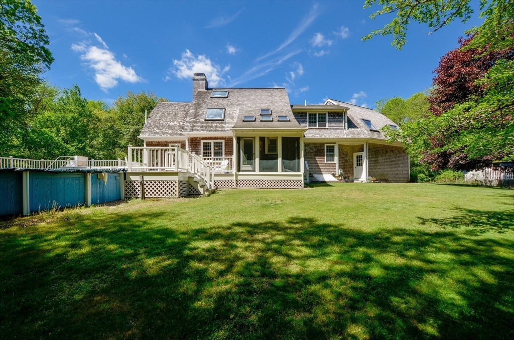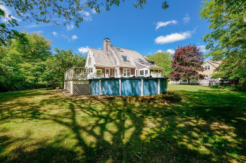 Location is the one thing that can’t be changed—and this Marion gem has one you’ll love. Privately nestled on nearly an acre in a sought-after seaside neighborhood, this bow-roof Cape blends timeless charm with modern comfort. Filled with natural light and surrounded by manicured landscaping, the home offers a thoughtful floor plan perfect for everyday living and entertaining. Gather by the fireplace in the open living and dining area, unwind in the cozy den, or enjoy the spacious screened porch overlooking the brand-new 2025 pool and expansive deck. The generous primary suite sits above the two-car garage, joined by three additional bedrooms upstairs. Recent updates include a new oil tank, 5-zone FHW by oil, and windows replaced within the past four years. With its inviting spaces and proximity to Silvershell Beach and village amenities, this home captures the best of coastal living.