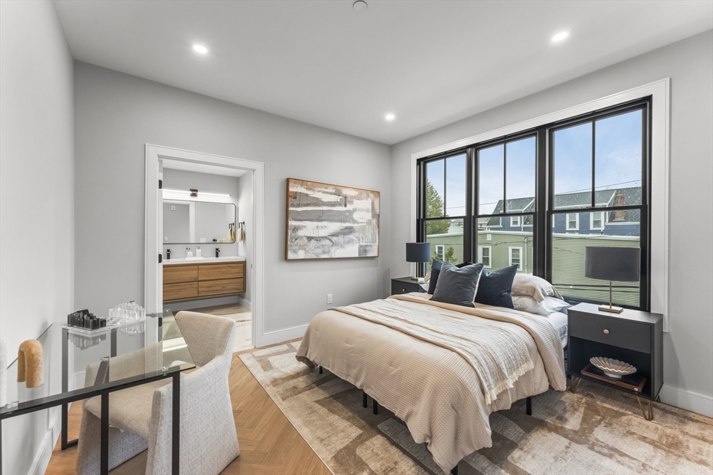 Open House 11/2 11am-12pm. 106 Moore St. is a boutique luxury new construction building with 8 units. Ideally located 1/4 of a mile from the Wood Island MBTA Station! Penthouse 8 has 2 Beds/2 Baths, 960 sq ft, private roof deck, a private deck off the kitchen and DEEDED PARKING! Open concept living! 9+ ceiling height with a kitchen that has floor to ceiling shaker cabinets, Quartz countertops with large center island and stainless appliances. Primary Bedroom with walk in closet, en suite bath with double vanity + frameless glass shower. Large Guest Bed, guest bath. Herringbone Engineered hardwood floors throughout. Recessed lighting, Central Air, Tankless Hot Water and In Unit Washer/Dryer! 106 Moore St. is located, one block from beach and greenway, while also being next to multiple East Boston parks, restaurants and is less than + 2 minutes from major highways + Logan Airport.