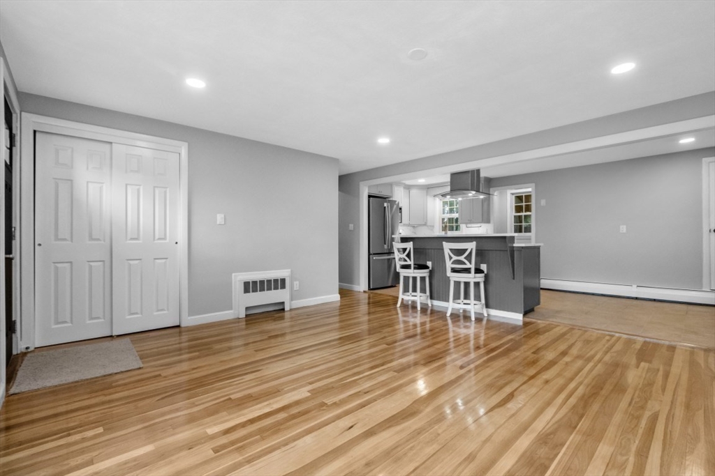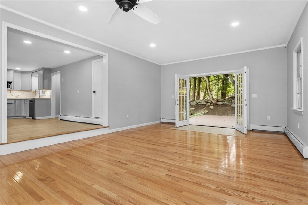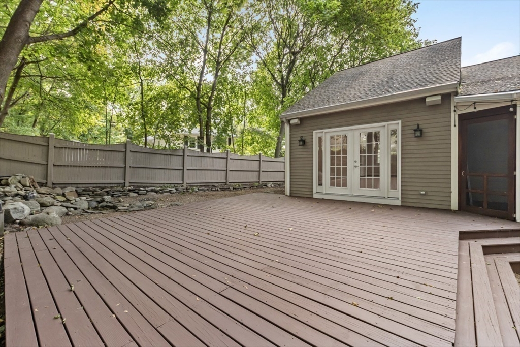 Welcome to this charming ranch-style home offering a flexible floor plan and, thoughtful updates. The beautiful hardwood flooring, and, handsome fireplace anchors the living room, which flows seamlessly into an updated kitchen, featuring quartz counter tops, stylish breakfast bar, and new high-end appliances. Just off the kitchen a spacious addition serves as a great room, dining room or home office with, Atrium French doors leading out to a 500 square foot deck, ideal for relaxed outdoor living, or entertaining. Three bedrooms and a full bath complete the main floor, providing comfortable single-level living. The finished lower level offers even more living space featuring new carpeting, a second bath and dedicated laundry area. Conveniently, located to 495, shopping restaurants, schools, and everyday amenities. This home also has awesome private back yard!