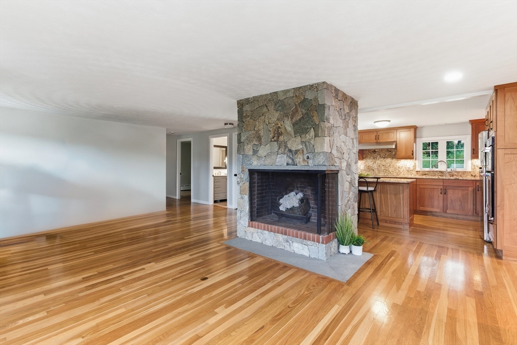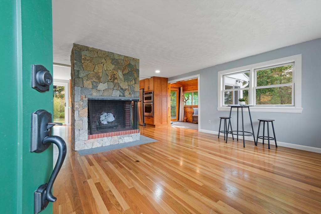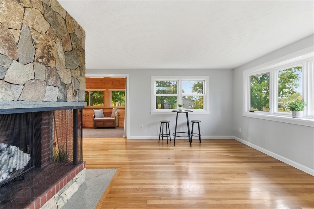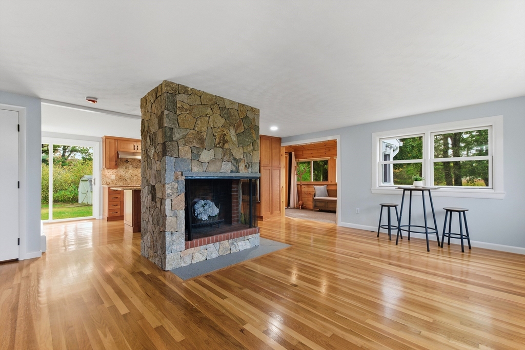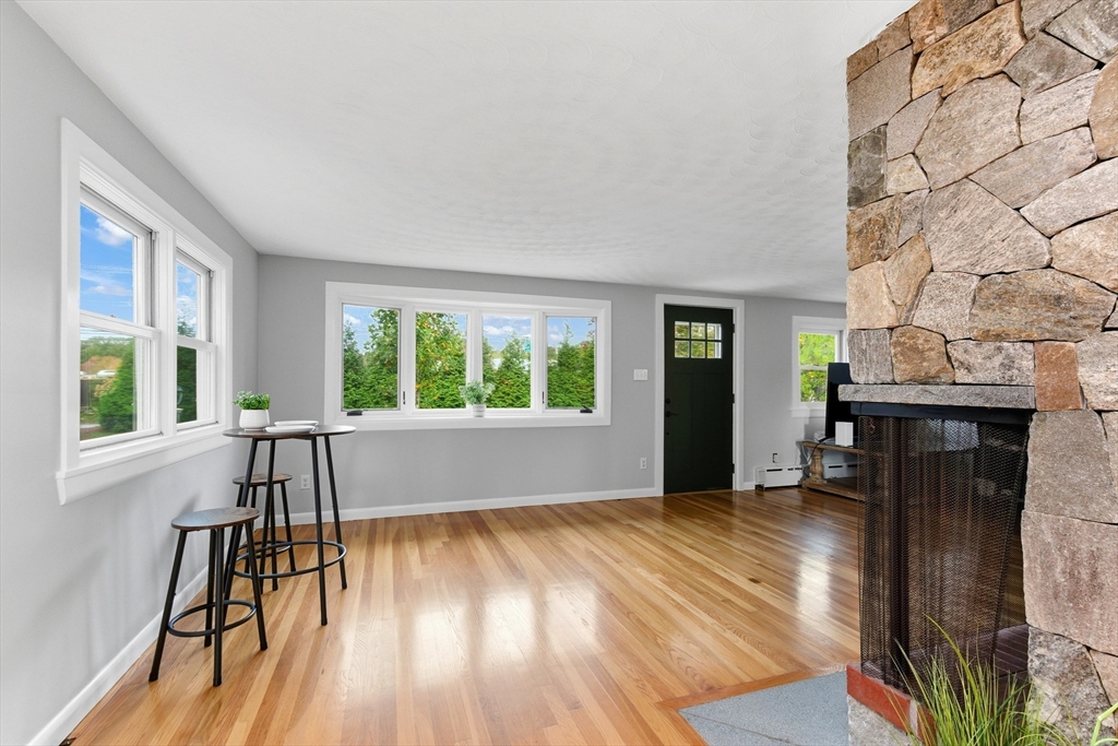 Welcome to this charming and move-in ready home in the heart of Westborough! This 3-bedroom, 2-full-bath property offers comfort, flexibility, and modern upgrades. Freshly painted throughout, updated kitchen and baths, the home features a warm and inviting living/dining area highlighted by a stunning corner stone fireplace. The back entry opens to a lovely sitting room — the perfect spot to relax with morning coffee or enjoy year-round views of the beautiful, flat backyard complete with a cozy fire pit. The flexible floor plan includes a third bedroom that currently houses laundry (easily relocated to the basement) and serves as a convenient walk-through to the spacious primary suite with a full bath. Brand-new mini splits/heat pumps are scheduled for installation November 5–7, 2025, offering efficient heating and cooling for every season. Conveniently located near town amenities, schools, and commuter routes, this home combines charm, comfort and practicality in one package.
