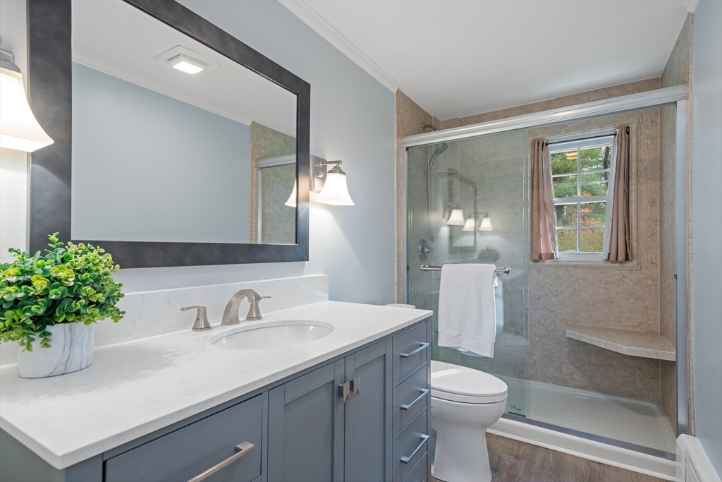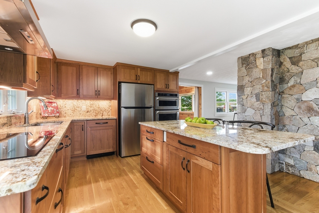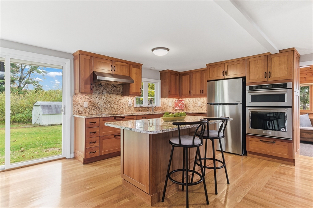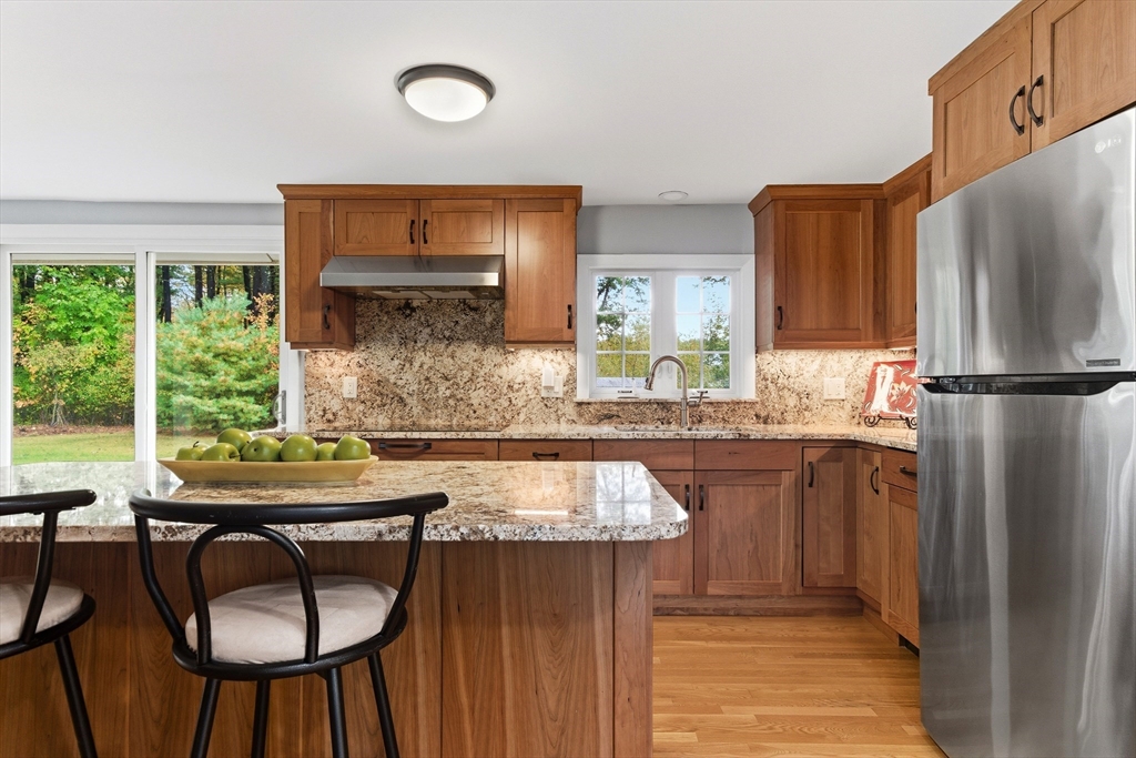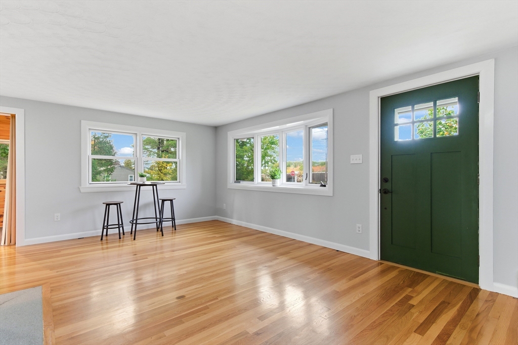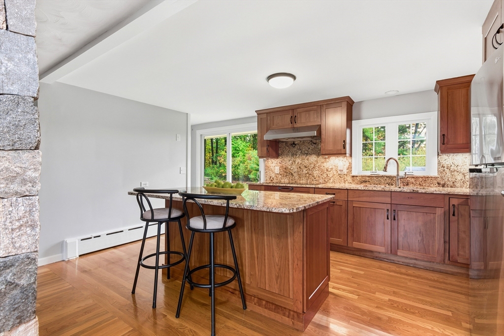 Welcome to this charming and move-in ready home in the heart of Westborough! This 3-bedroom, 2-full-bath property offers comfort, flexibility, and modern upgrades. Freshly painted throughout, updated kitchen and baths, the home features a warm and inviting living/dining area highlighted by a stunning corner stone fireplace. The back entry opens to a lovely sitting room — the perfect spot to relax with morning coffee or enjoy year-round views of the beautiful, flat backyard complete with a cozy fire pit. The flexible floor plan includes a third bedroom that currently houses laundry (easily relocated to the basement) and serves as a convenient walk-through to the spacious primary suite with a full bath. Brand-new mini splits/heat pumps are scheduled for installation November 5–7, 2025, offering efficient heating and cooling for every season. Conveniently located near town amenities, schools, and commuter routes, this home combines charm, comfort and practicality in one package.