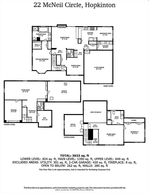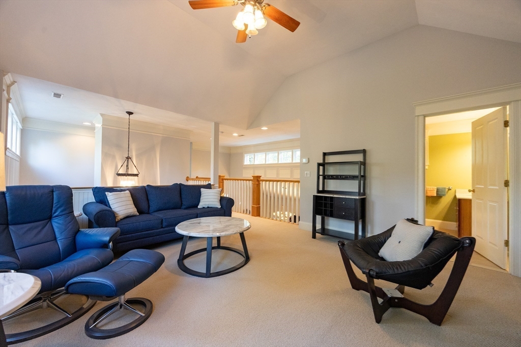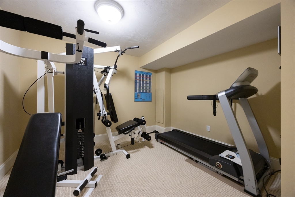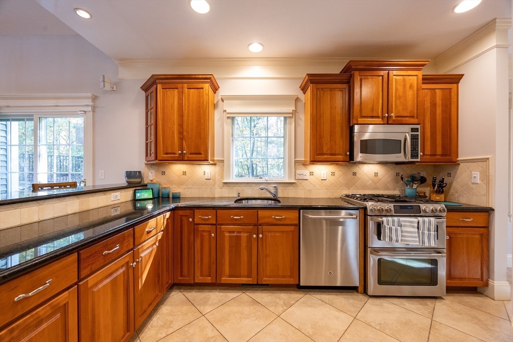 Rare offering in Hopkinton’s Desirable Deerfield Estates Over 55 Community (One person on the deed must over 55 yrs or disabled) Stand-alone 2 bedroom, 4 bathroom, 2 car garage model home with all the extras. Open floor plan - living room with vaulted ceiling & gas fireplace, kitchen with bright eat-in dining area, large formal dining room with wet bar, primary main floor bedroom w/en suite bath & dbl. closets, laundry room with cabinets and sink. Custom blinds, wainscoting, beadboard, high end finishes and hardwoods throughout. 2nd floor guest bedroom/bathroom, home office & family room, BONUS Finished lower level w/ bathroom and flex rooms (home gym, game room with wet bar, theater/media room, workshop/utility room). Blue stone patio surrounded by trees, gardens and rock walls offers great backyard privacy - next to putting green/park area! Beautiful home to entertain family and friends in well maintained community.Convenient to downtown, shops, restaurants & Rts. 495 & 90.
