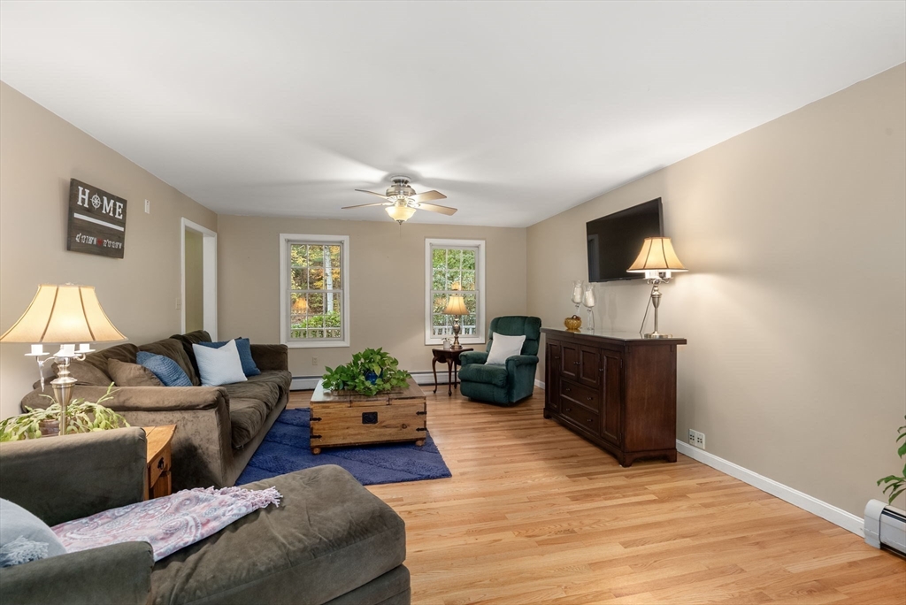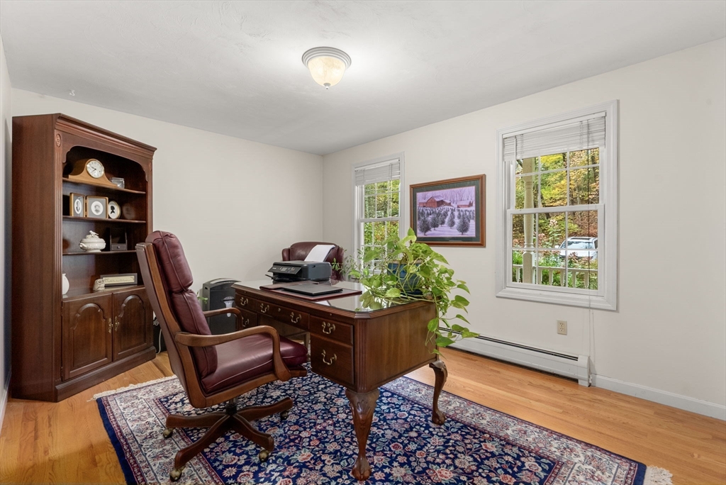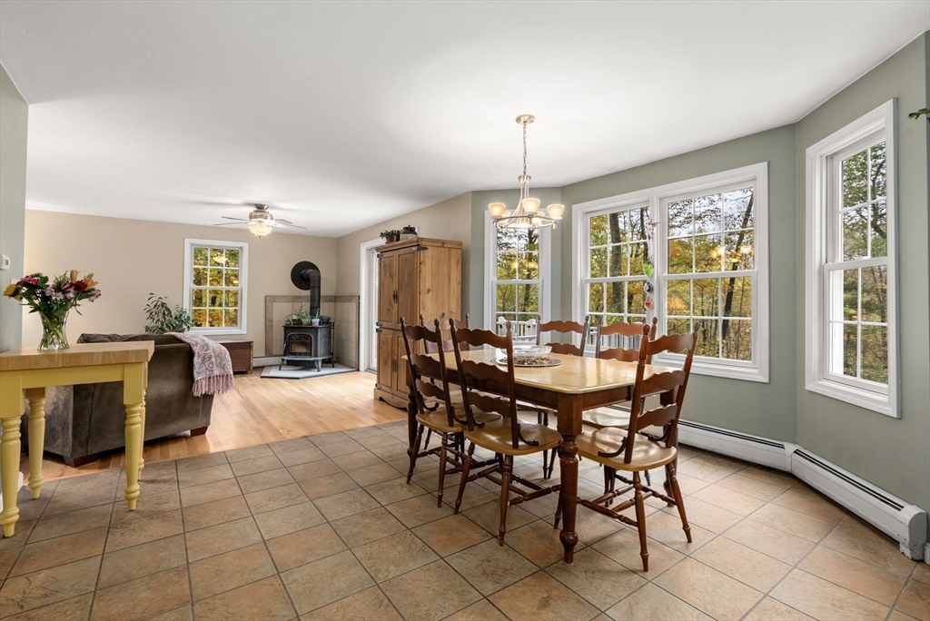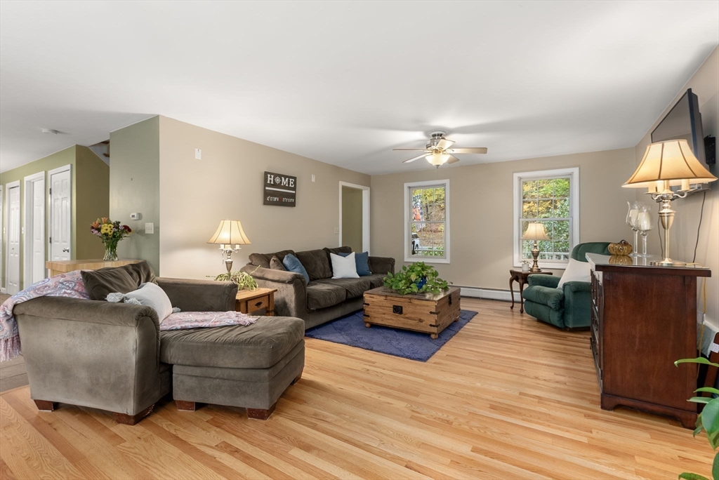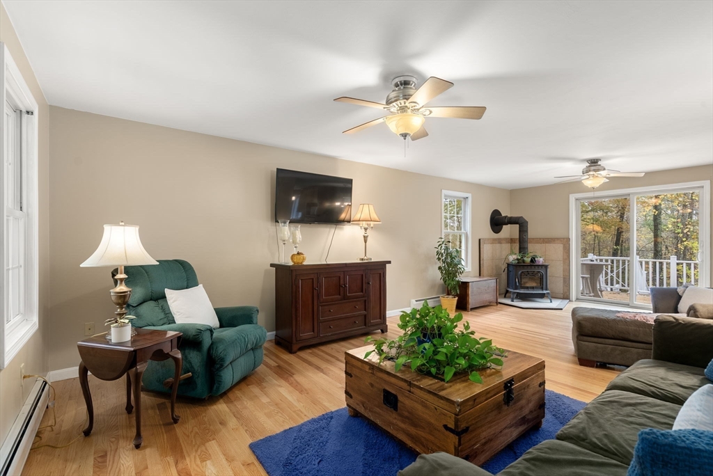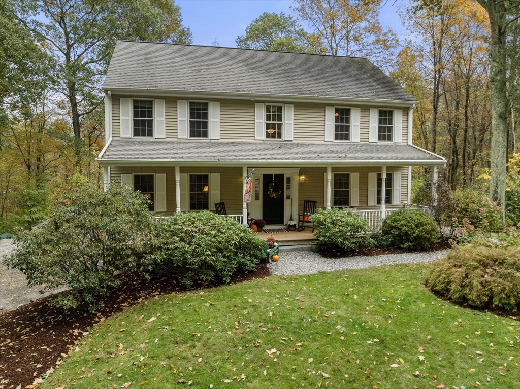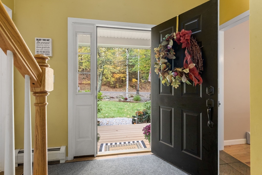 Welcome to 26 Town Farm Road, a move in ready colonial with great curb appeal and set on a private lot. The front porch welcomes you as you enter to find newly refinished hardwood floors throughout and a two story foyer. The cabinet packed kitchen is bright and offers a gas stove top plus tons of pantry storage and laundry access. The dining area and kitchen are open concept off of the kitchen with a charming wood stove and slider access to the two level deck. A half bath and dining room/office complete the first floor. Upstairs, you'll find a primary suite with a large closet and two other spacious bedrooms plus a full bath. The walkout basement offers fantastic storage space or more potential living space. Outside, you'll find a gorgeous and private lot with mature landscaping and a pool. Minutes to the Mass Pike, 84, and tons of restaurants and shopping. Brookfield is in the highly rated Tantasqua school district. Don't miss this picture perfect colonial!