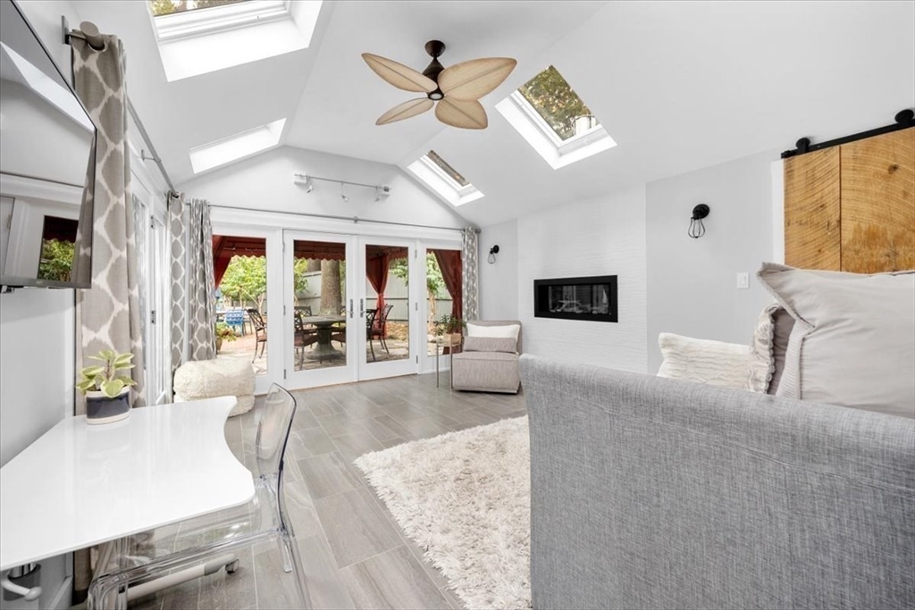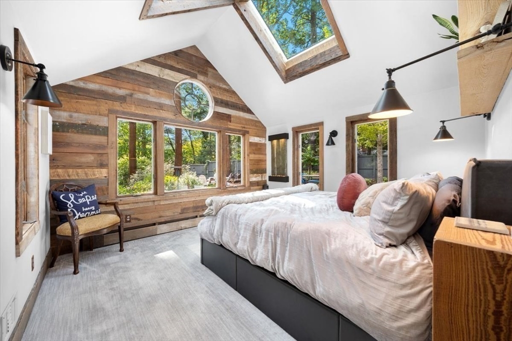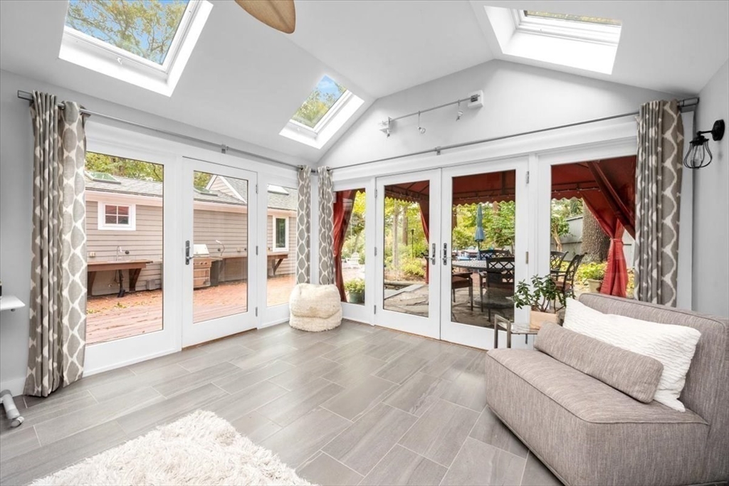 Perfectly sited to capture the beauty and tranquility of Cushing Pond, this exceptional SMART home offers stunning water views, refined updates, and a seamless indoor-outdoor lifestyle with direct pond access and a private dock. The main level features a peaceful primary suite with waterfall feature redesigned to showcase sweeping pond views, a spa-like bath, walk-in closet, and office space. The sun-filled living room with vaulted ceilings, wood-burning fireplace, wet bar, and panoramic water views to savor every season, is perfect for entertaining, while the gas-fireplaced family room provides a cozy retreat year-round. The spacious chef’s kitchen with built-in seating connects to a fire-placed dining room for easy gatherings. Outdoors, enjoy multi-level decking, an outdoor kitchen, and beautifully landscaped perennial gardens. The finished lower level offers flexible living and storage. Experience the best of waterfront living - kayak, fish, or skate right from your own dock.