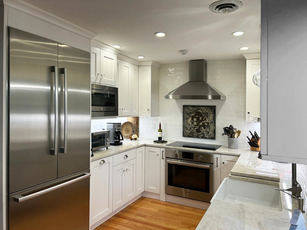 Welcome to your dream home at Fairview Woods on Pine Ridge Golf Course! This inviting end unit is brimming with quality upgrades throughout. Step inside to a bright and airy layout featuring a custom kitchen equipped with exquisite quartzite counters and top-of-the-line Bosch stainless steel appliances. Unwind in the expansive main family room with pellet stove that efficiently warms the entire unit. The highlight of this home is the 3-season sunroom with radiant heated floor, wet bar, and a stunning natural stone accent wall, overlooking the lush grounds on the 4th hole. Hardwood floors flow seamlessly throughout the entire home. The 2nd floor has two generous size bedrooms, along with a full bath and laundry. The 3rd floor loft area doubles as an office with custom-built bookcases, cabinetry, desk, and window seat, offering a quiet retreat. Less than 10 minutes to shopping, restaurants, MA Pike, Rt 290, & 395. Experience refined living with the perfect blend of style and convenience!