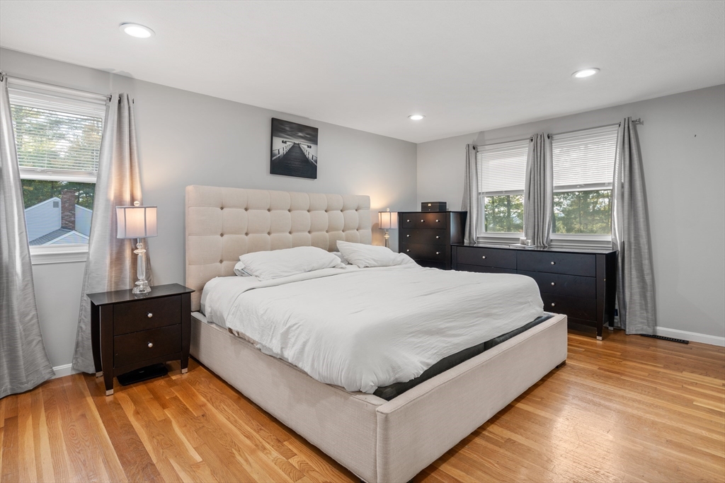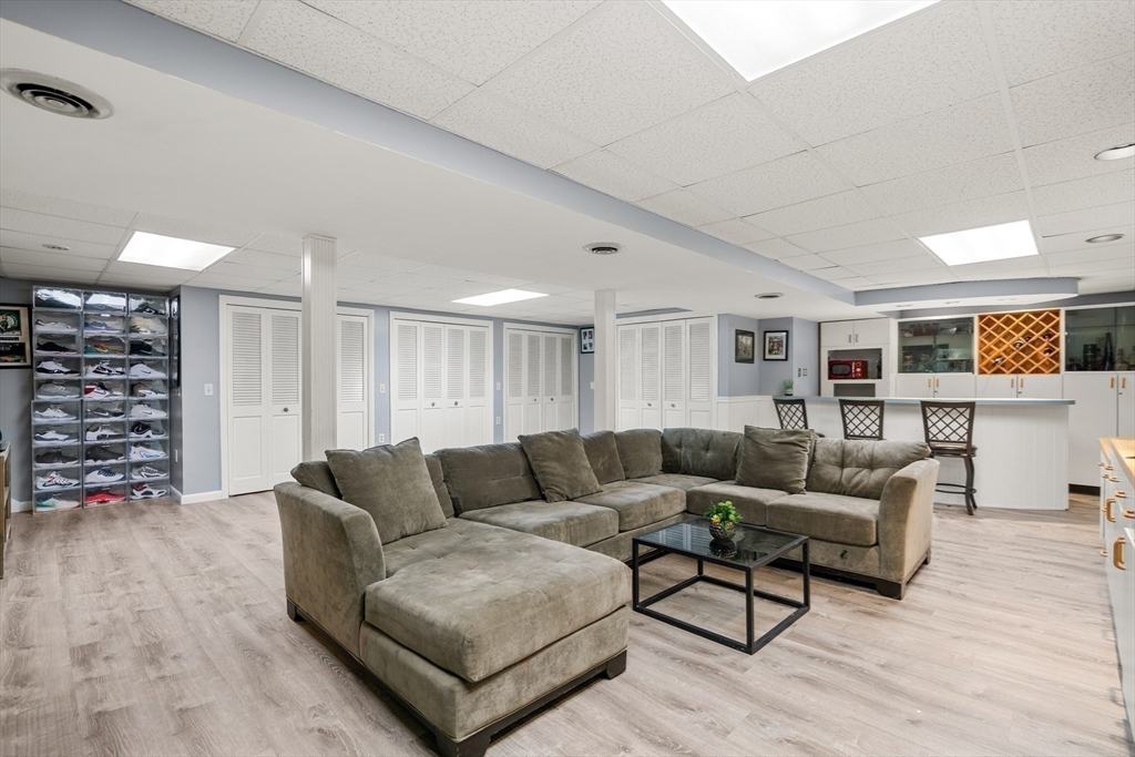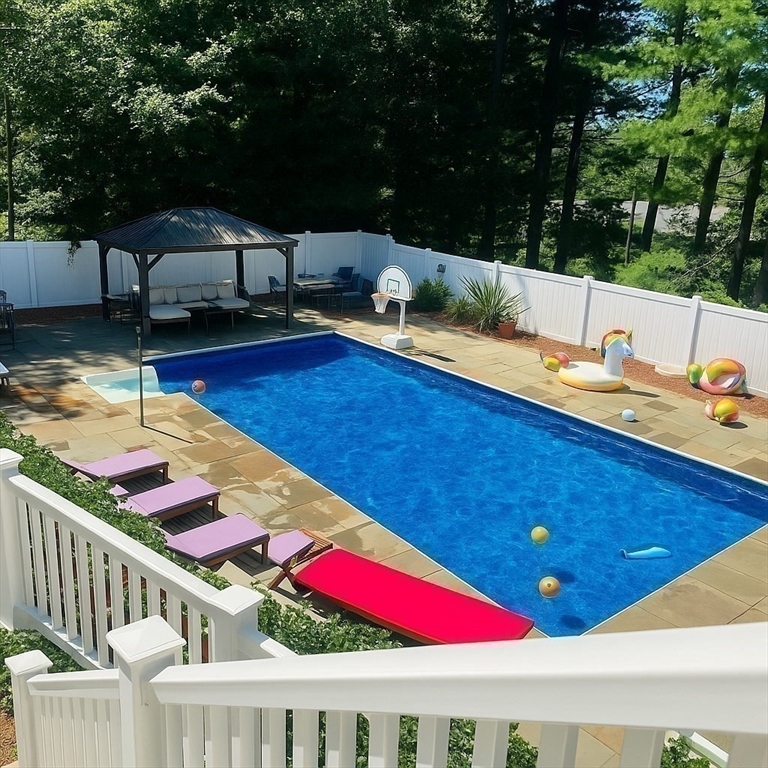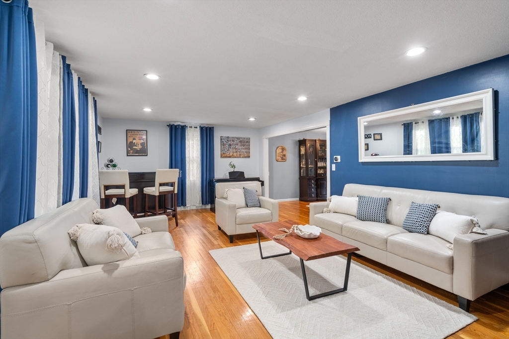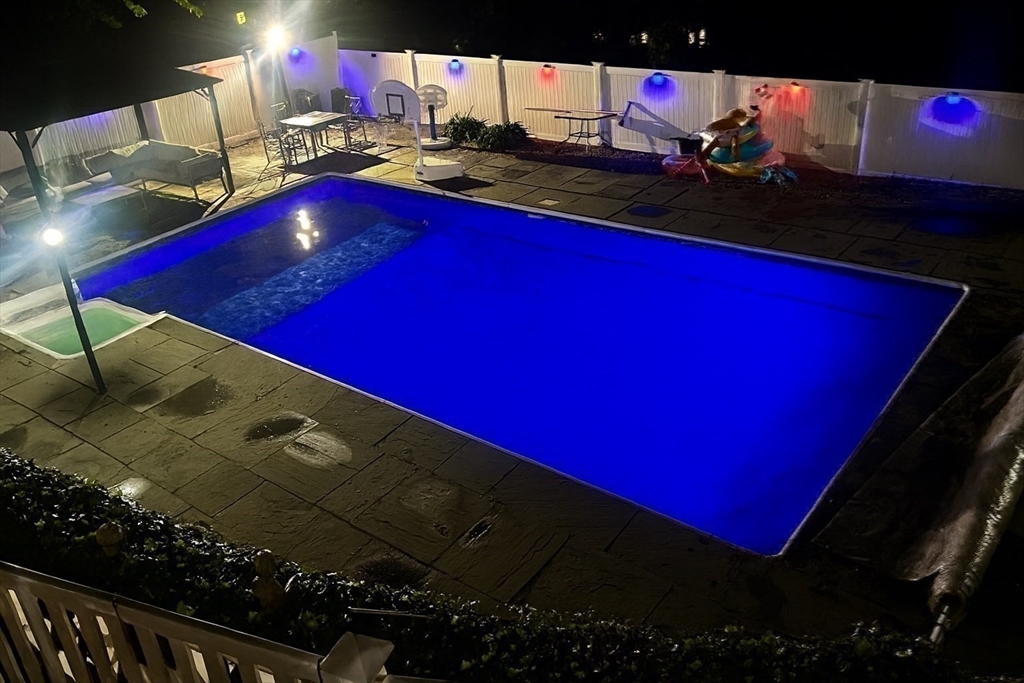 Welcome to this stunning 4-bedroom, 3.5-bathroom home in a very desired neighborhood. Step inside to a bright, open living space featuring gleaming hardwood floors, recessed lighting, and elegant designer touches throughout. The spacious living room is highlighted by a deep blue accent wall, sleek leather seating, and an abundance of natural light—an ideal spot for relaxing or entertaining guests. The adjoining dining room is warm and inviting, complete with a classic chandelier and room for large gatherings. The modern kitchen flows easily into the main living areas, creating a perfect setup for today’s lifestyle. Upstairs, you’ll find generously sized bedrooms with ample closet space, and the primary suite includes a private bath for a peaceful retreat. The finished lower level offers flexible space for a family room, along with a convenient full bath. Step outside to your private backyard oasis: a massive composite deck overlooking a spectacular inground pool