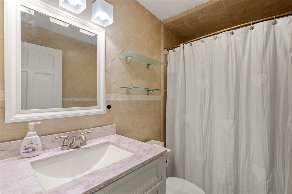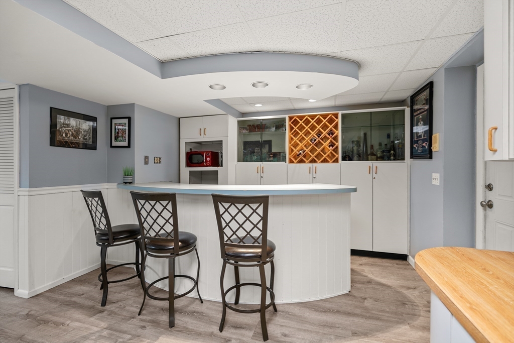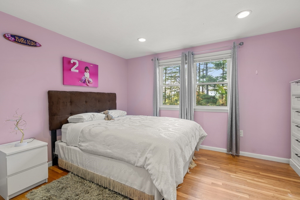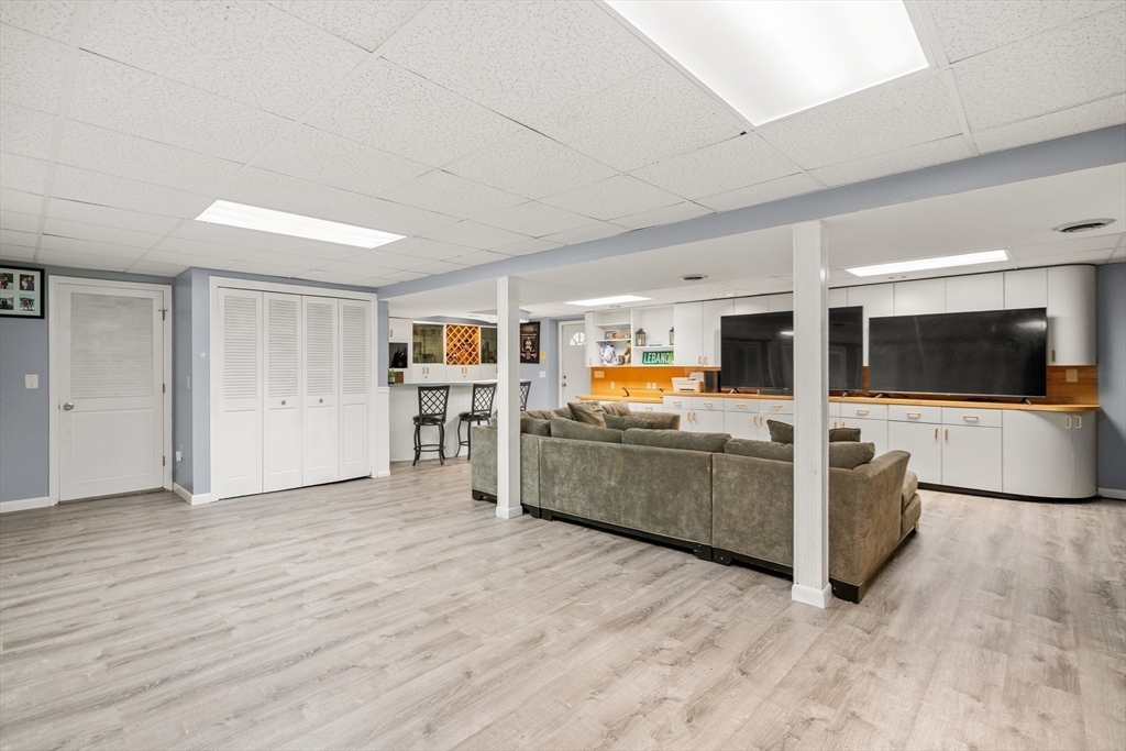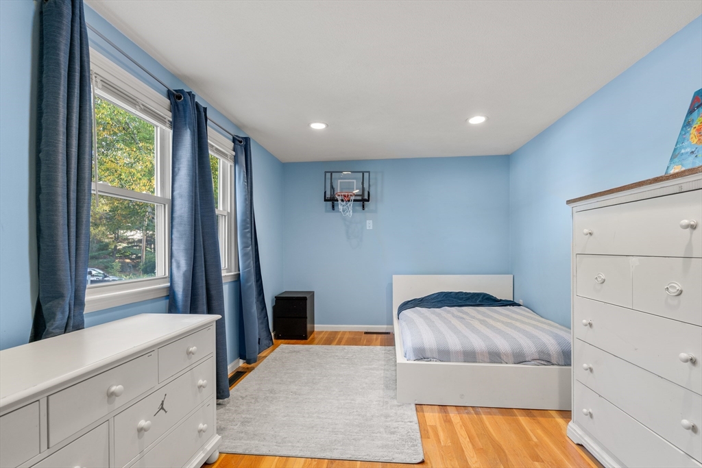 Welcome to this stunning 4-bedroom, 3.5-bathroom home in a very desired neighborhood. Step inside to a bright, open living space featuring gleaming hardwood floors, recessed lighting, and elegant designer touches throughout. The spacious living room is highlighted by a deep blue accent wall, sleek leather seating, and an abundance of natural light—an ideal spot for relaxing or entertaining guests. The adjoining dining room is warm and inviting, complete with a classic chandelier and room for large gatherings. The modern kitchen flows easily into the main living areas, creating a perfect setup for today’s lifestyle. Upstairs, you’ll find generously sized bedrooms with ample closet space, and the primary suite includes a private bath for a peaceful retreat. The finished lower level offers flexible space for a family room, along with a convenient full bath. Step outside to your private backyard oasis: a massive composite deck overlooking a spectacular inground pool