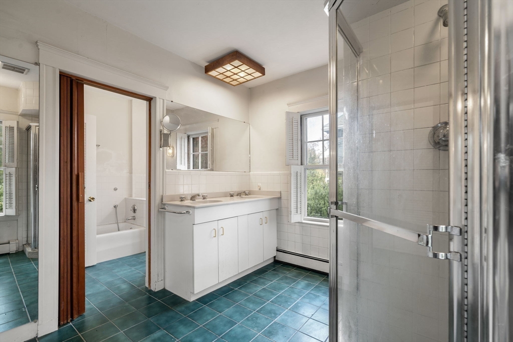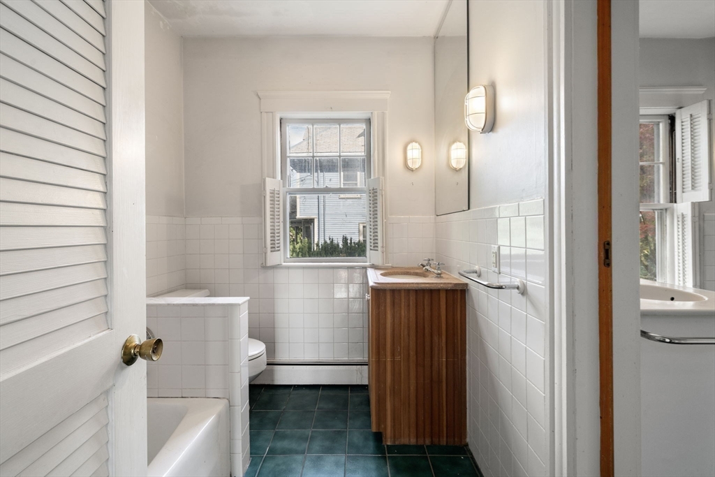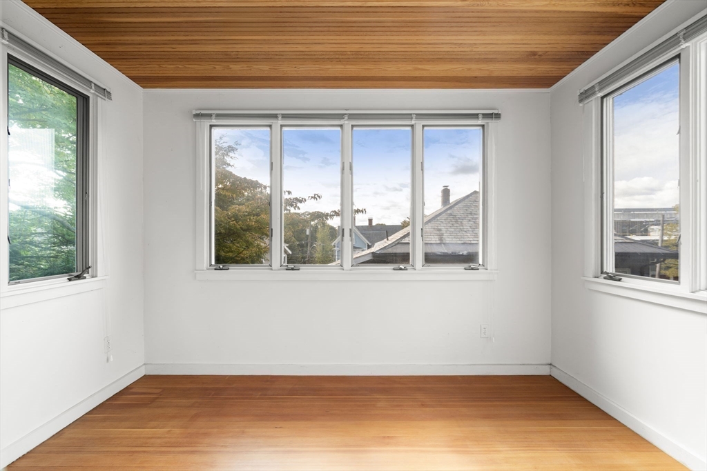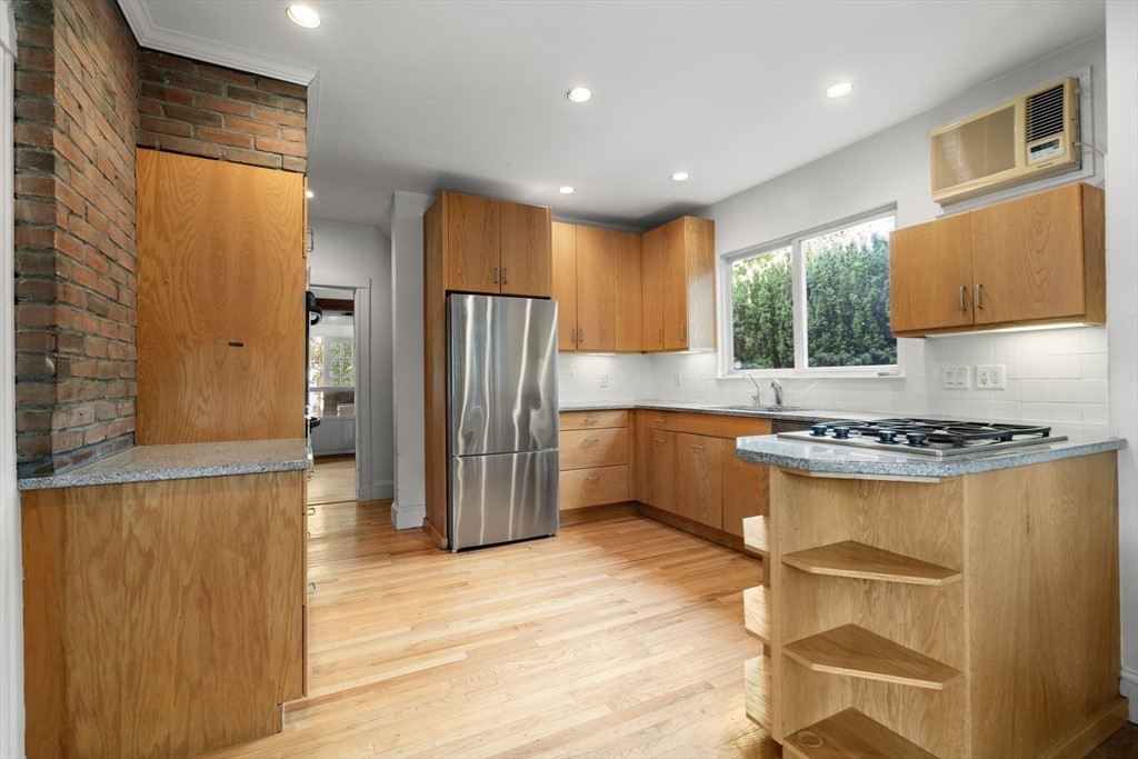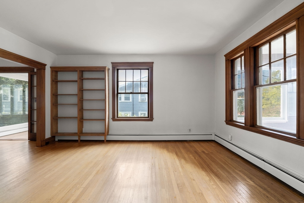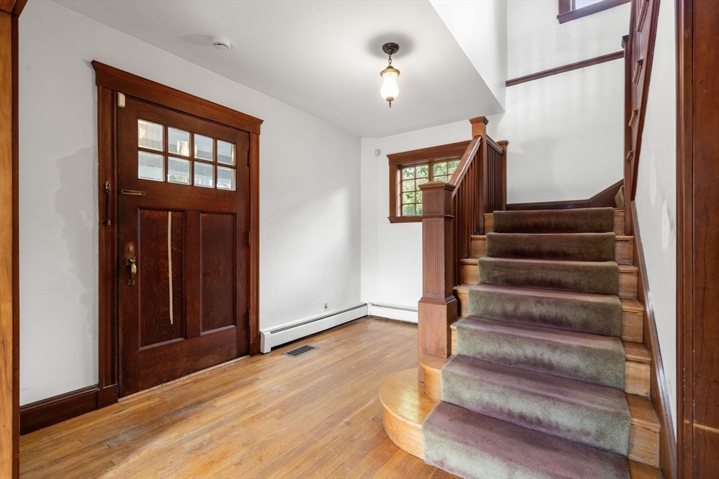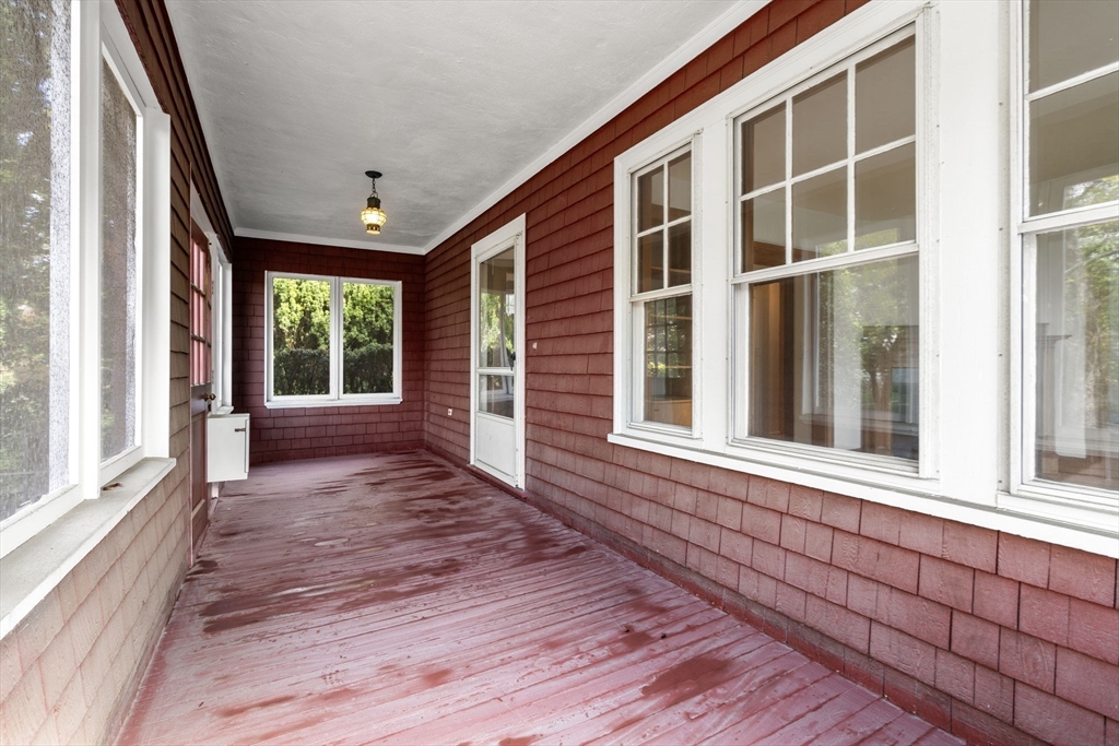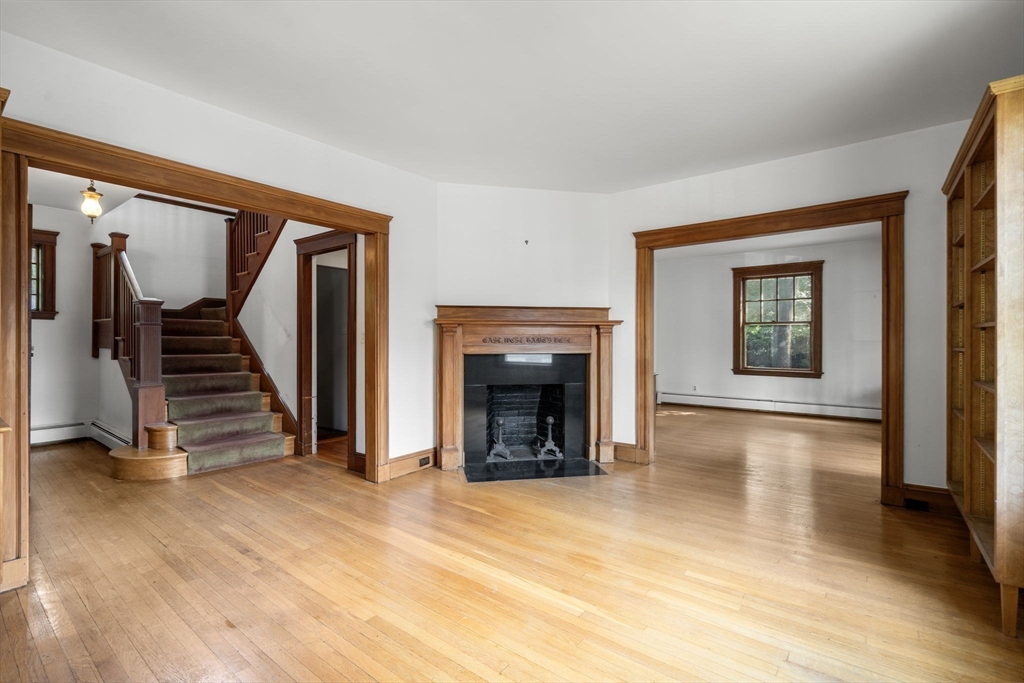 Classic 1913 Dutch Colonial with high ceilings and period charm, updated over time. Enclosed front porch opens to a spacious foyer thru a Tiger Oak front door, granite/stainless kitchen with deck access, large dining room with attached sunroom/office, and living room with brick fireplace & build-in bookcases. Upstairs offers 3 bedrooms, full bath, and a primary suite with en-suite bath and sunroom overlooking gardens. Both sunrooms added in 1991. Features include hardwood floors, built-ins, and 2,110 sq ft of finished space on a 9,583 sq ft lot. Walk-out basement (654 sq ft) and 200 sqft detached garage converted to office/studio with high ceilings. Mature gardens, stone walls, wood deck, and brick patio create a private retreat. Parking for 4. Near the New Watertown High, with easy access to Boston, Harvard Sq, Watertown Sq and Arsenal Yard. Offered as-is or renovated to spec. A real Gem ...