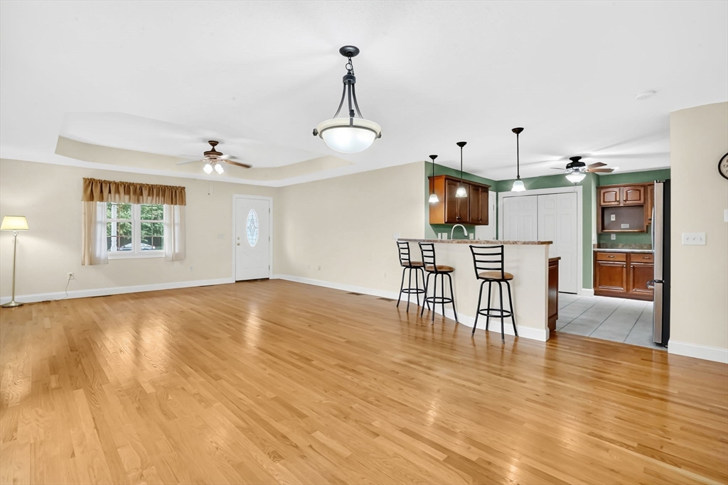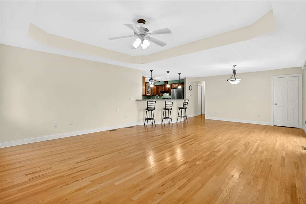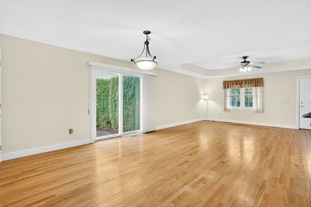 Hurry to see this lovely garden style condo in the Fairview Village Complex! Situated on a conveniently located low traffic street, there is a lot to love! Enter into the spacious and open living room/dining with hardwood floors and a slider to the patio. The kitchen is separated by a breakfast bar and features a stove, refrigerator and dishwasher. and a generously sized pantry closet. There is easy access to the garage from the kitchen to keep you dry from the rain and snow! Down the hall is a half bath for guests, with a washer and dryer. The two bedrooms both have their own bath with walk-in showers, and very large closets. Each bedroom has a ceiling fan and the custom blinds will remain. The basement is open and ready for whatever finishing touches you choose to add. The attached garage has an opener and there is a front porch perfect for relaxing! Choose the carefree lifestyle of condo living!