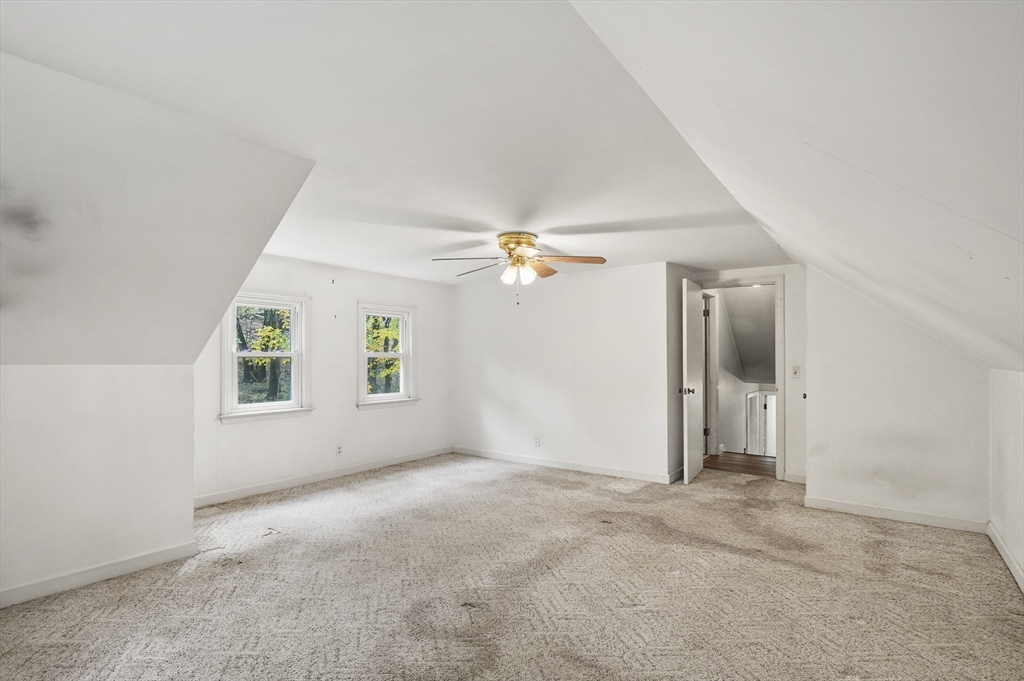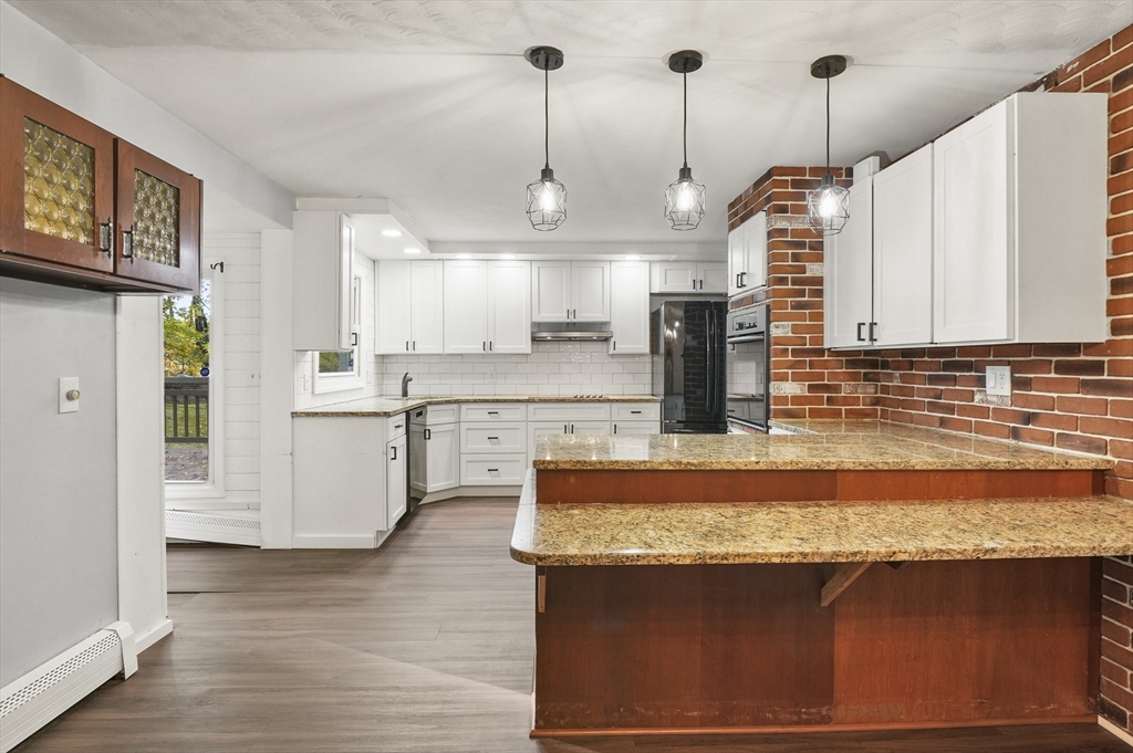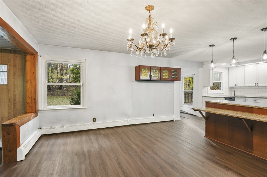 Welcome to this unique Cape-style home, privately tucked away at the end of a dead-end street in Worcester! Inside you will find a large fireplaced living room with a picture window that fills the space with natural light, and an open kitchen offering granite counters, plenty of storage, a breakfast nook, and a dining area. A charming sunken dining room with a bay window provides the perfect spot for gatherings. Upstairs you’ll find three good-sized bedrooms, a full bath, and a bonus office space. The finished lower level adds even more flexibility with a bonus room, half bath, and laundry area. Enjoy the convenience of an attached garage, ample off-street parking, and a large yard surrounded by trees—your own private retreat just minutes from Vernon Hill School and Glodis Field. Make this inviting home yours and celebrate the season in comfort and style!
