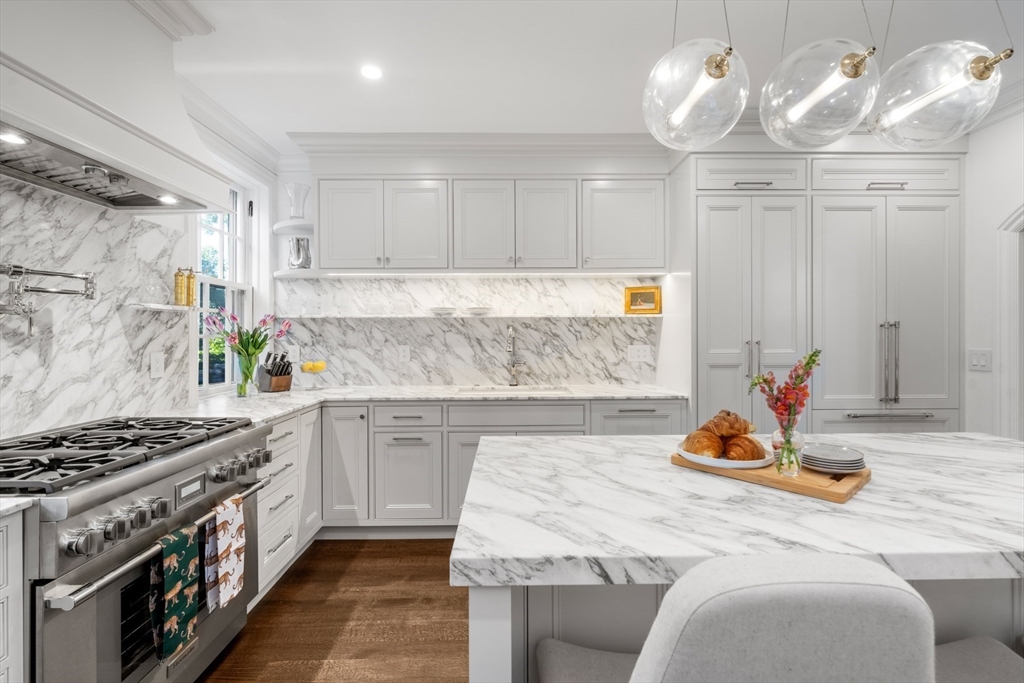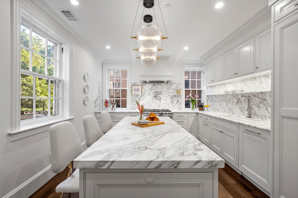 Truly exquisite, the transformation of this historic townhouse is nothing short of breathtaking. This home brings the flow & luxury of modern living into a timeless setting rare to this neighborhood. Every inch, thoughtfully restored, features the highest end of finishes and craftsmanship, meticulous attention to detail, and honor to heritage. A dramatic entry offers sweeping views of an open floorplan. The custom gas fireplace & built-in banquette serve as an entertainer’s dream. The kitchen showcases an utterly exquisite Arabescato Vagli detailing throughout, adorned even more by spectacular millwork & sunlight. The second level primary is an oasis in itself, boasting a luxurious closet suite, intricately custom bathroom & dedicated office, all topped by soaring ceilings & featuring the latest amenities. The top floor offers a large bedroom & incredible lounge leading to an expansive private roof deck equipped with a built-in grill & retractable outdoor entertainment center.