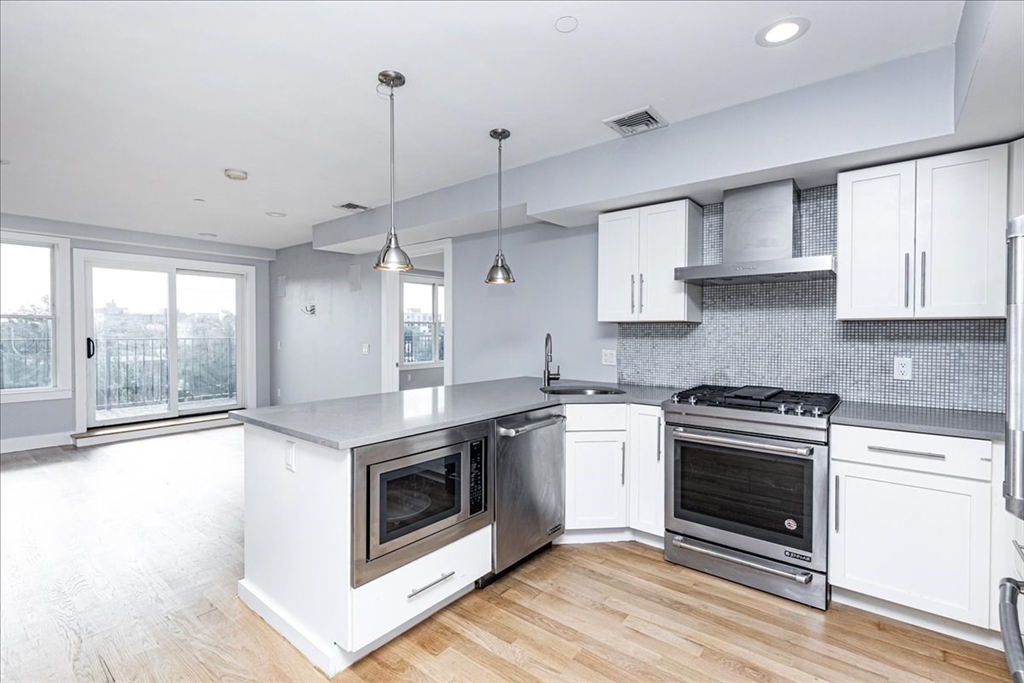 Unrivaled luxury living in South Boston! Discover the perfect blend of sophistication and convenience in this immaculate 2-bdrm, 2-bath luxury condominimum built in 2018 by a premier developer. Designed to attract the discerning Boston professional, this unit combines premium finishes with an unbeatable location. The open-concept floor plan is bathed in natural sunlight streaming through sun-drenched floor to ceiling windows highlighting elegant white oak plank flooring throughout. The gourmet kitchen and spa-like bathrooms feature stunning quartz countertops and SS appliances. The generous outdoor balcony runs the entire length of the unit, offering exceptional space for morning coffee or evening entertainment. Building amenities include deeded garage parking with storage, and fantastic common outdoor space featuring a fire pit, barbecue and designer seating areas. This South Boston location is 2nd to none--just steps to the T, boutique shops, acclaimed restaurants and the waterfront.
