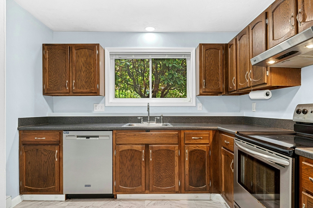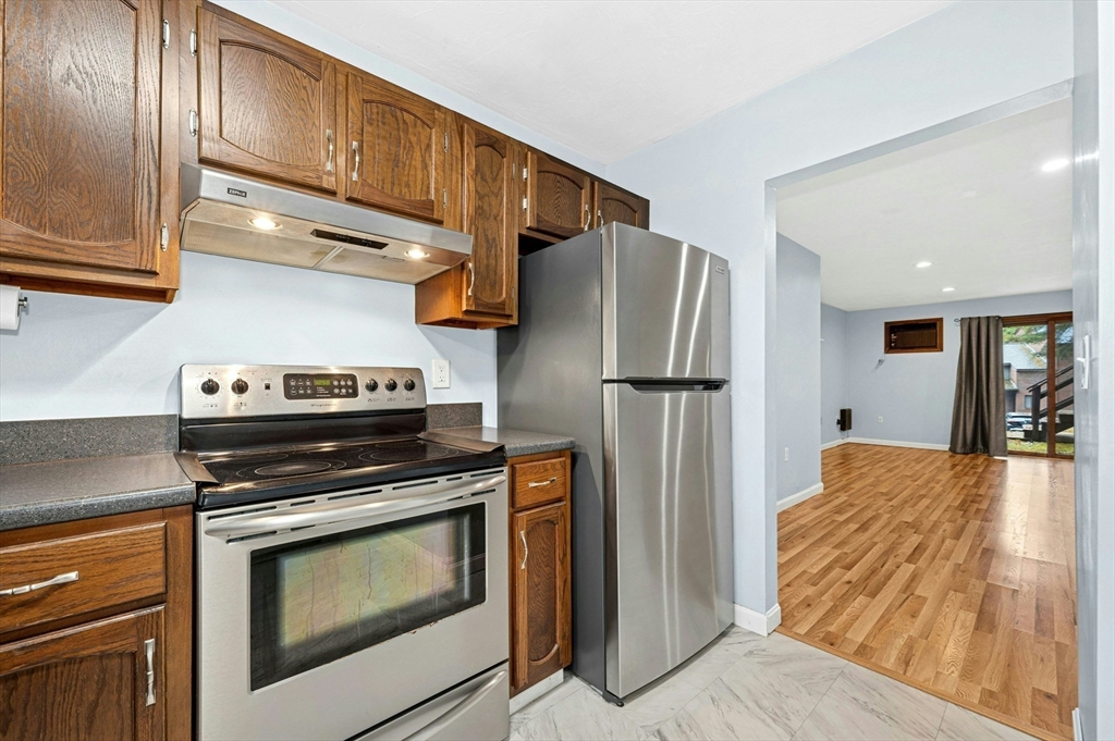 *****LOTS OF LIVING SPACE IN THIS MOVE-IN READY CONDOMINIUM IN CONVENIENT HIGHWOOD AT FRANKLIN***** Two large bedrooms with double closets and ceiling fans separated by the full bathroom and in-unit laundry (washer and dryer circa 2019 are included). Featuring a large open concept dining room/living room with plenty of light, complete with slider to patio and exterior storage. Programmable thermostats and in-wall air conditioner for year-round comfort, and budget-friendly electric baseboard heat and hot water. Big ticket upgrades to water heater (2022), electrical panel (2023), windows (2023), refrigerator (2024), bathroom appliances (2024), and dishwasher (2025). *****SEND YOUR BUYERS*****